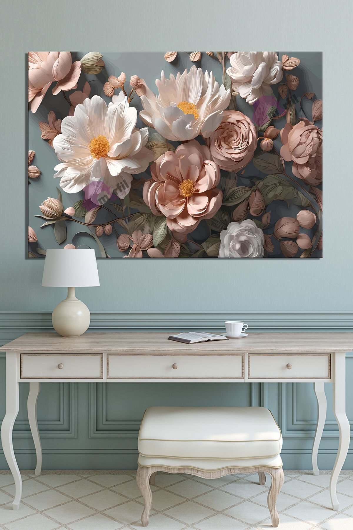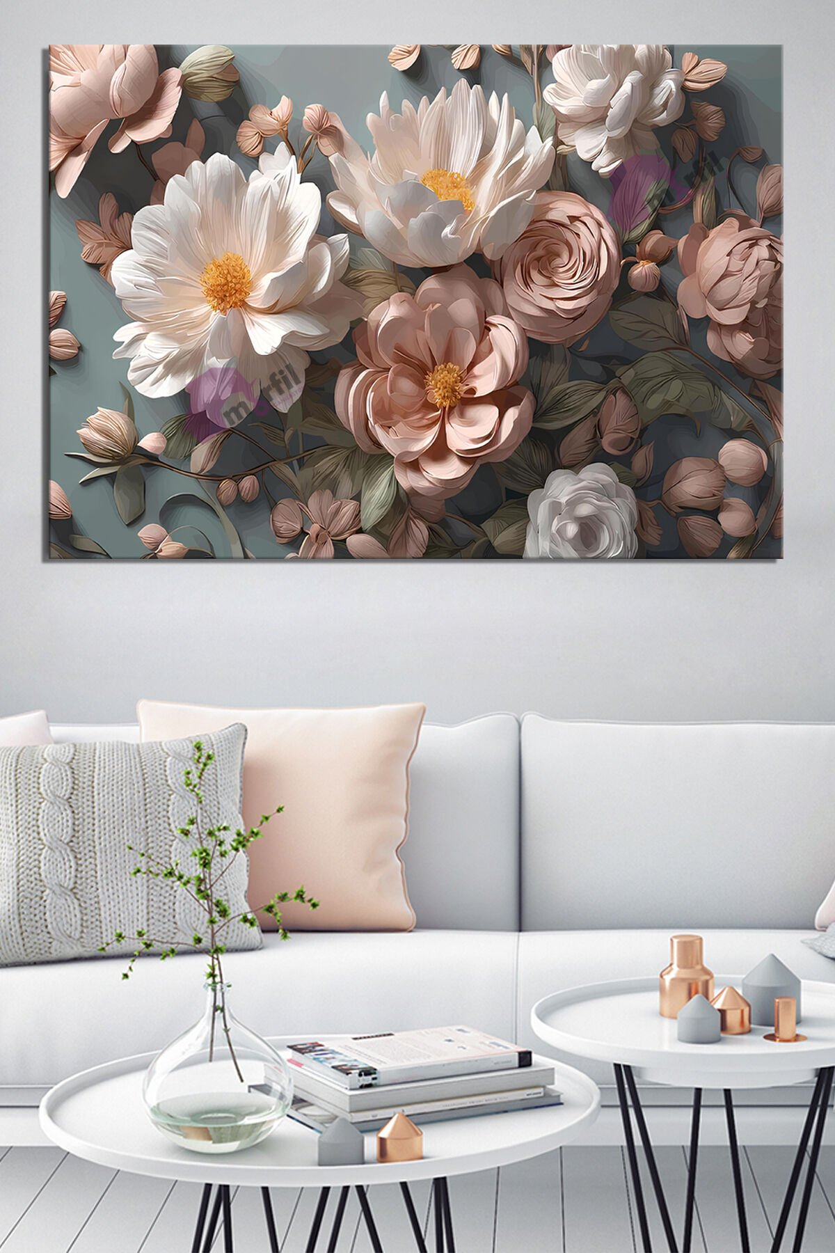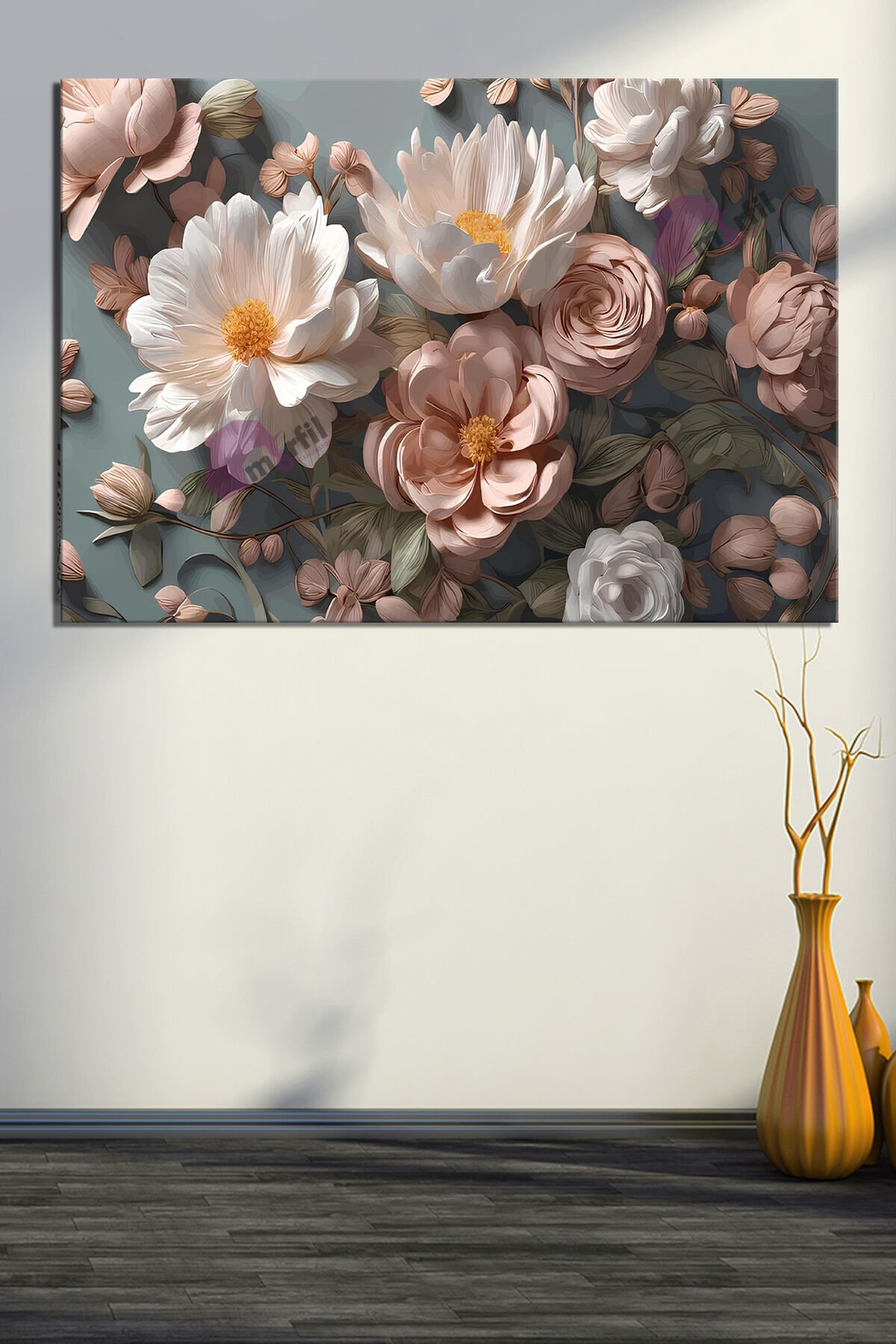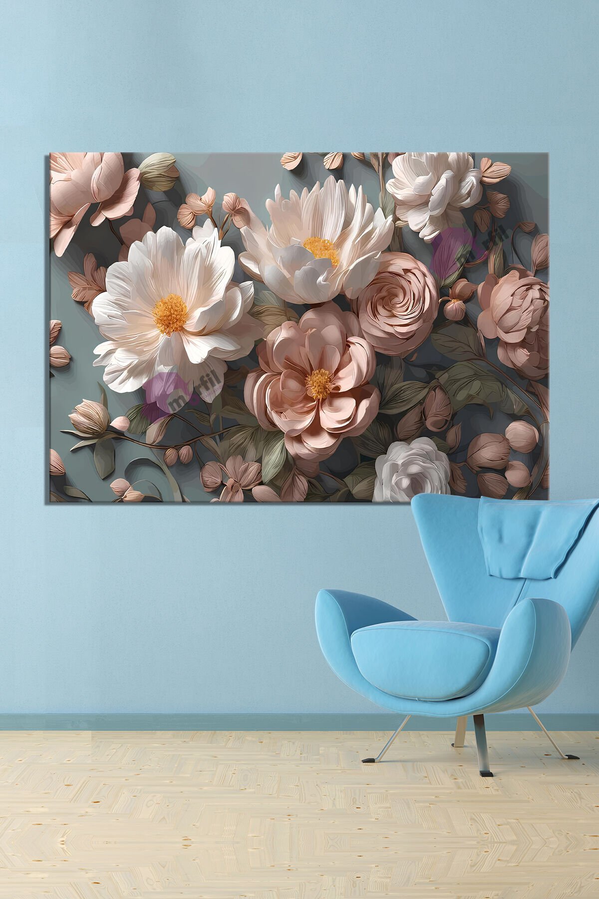 3d Çiçekler Modern Sanatsal Kanvas Tablo (8 Farklı Ölçü)