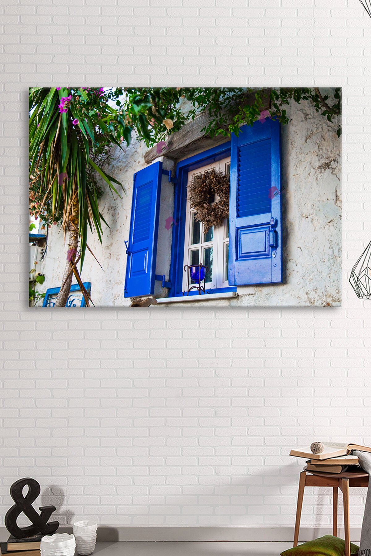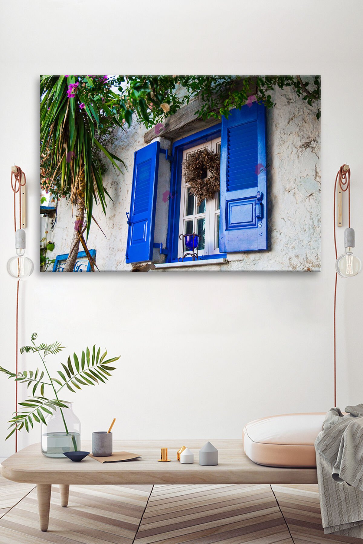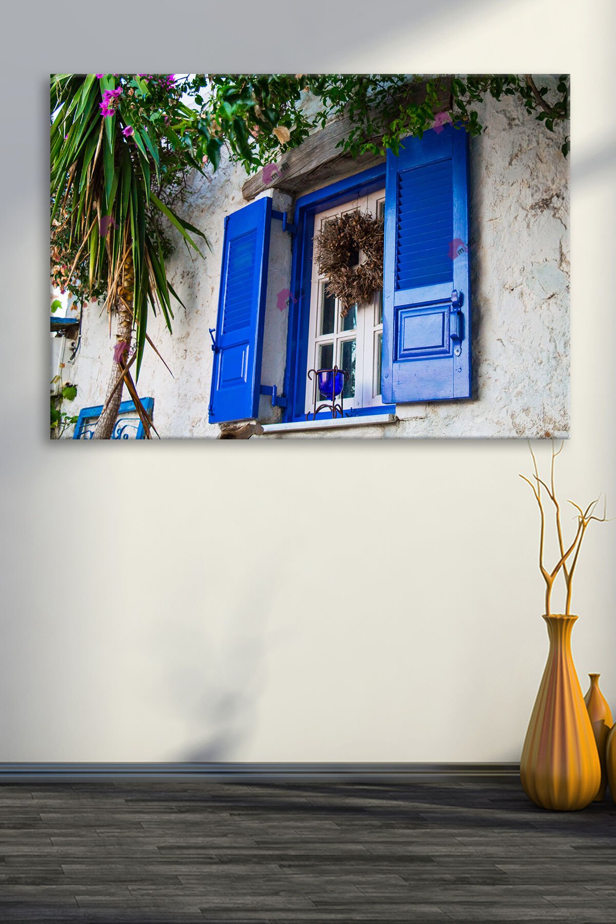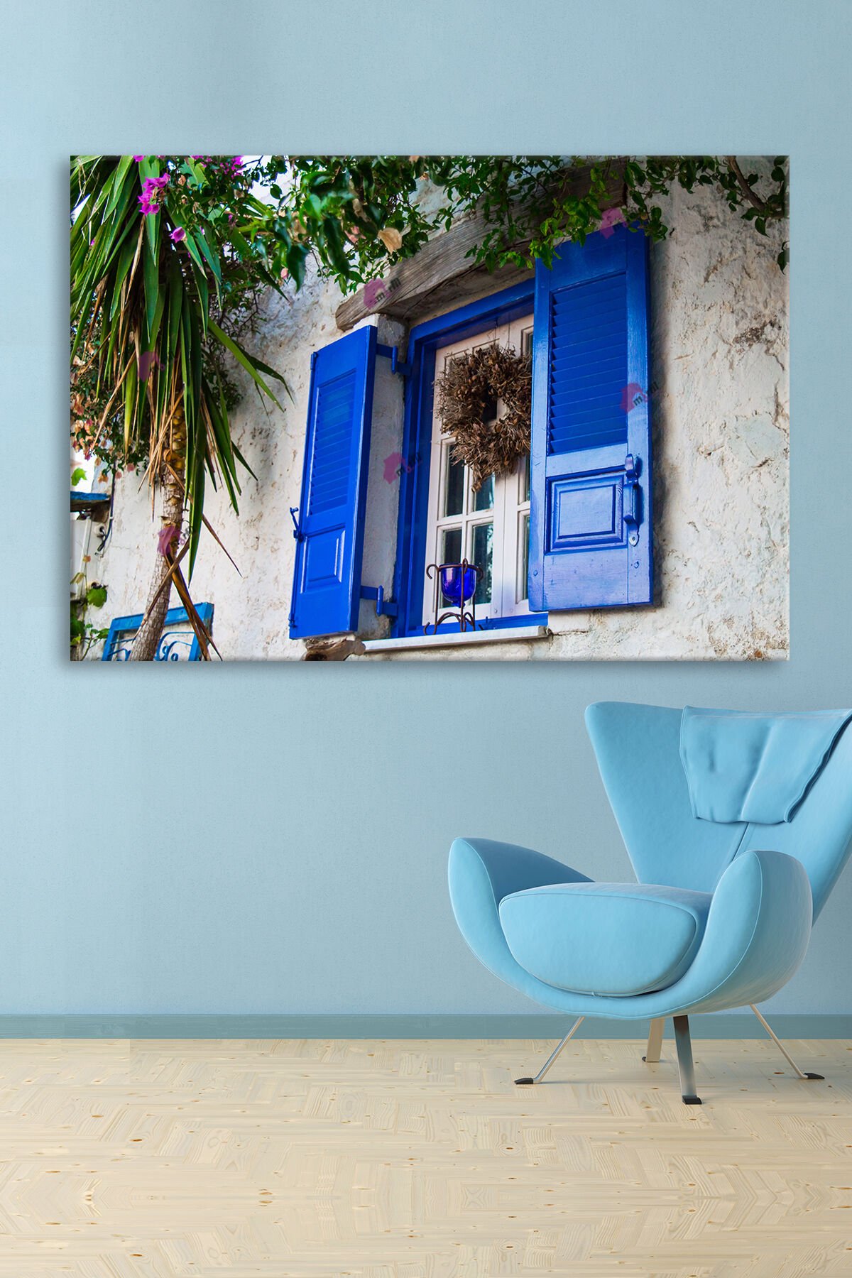 Akdeniz Sahil Taşev Mavi Beyaz Manzara Kanvas Tablo (7 farklı ölçü)