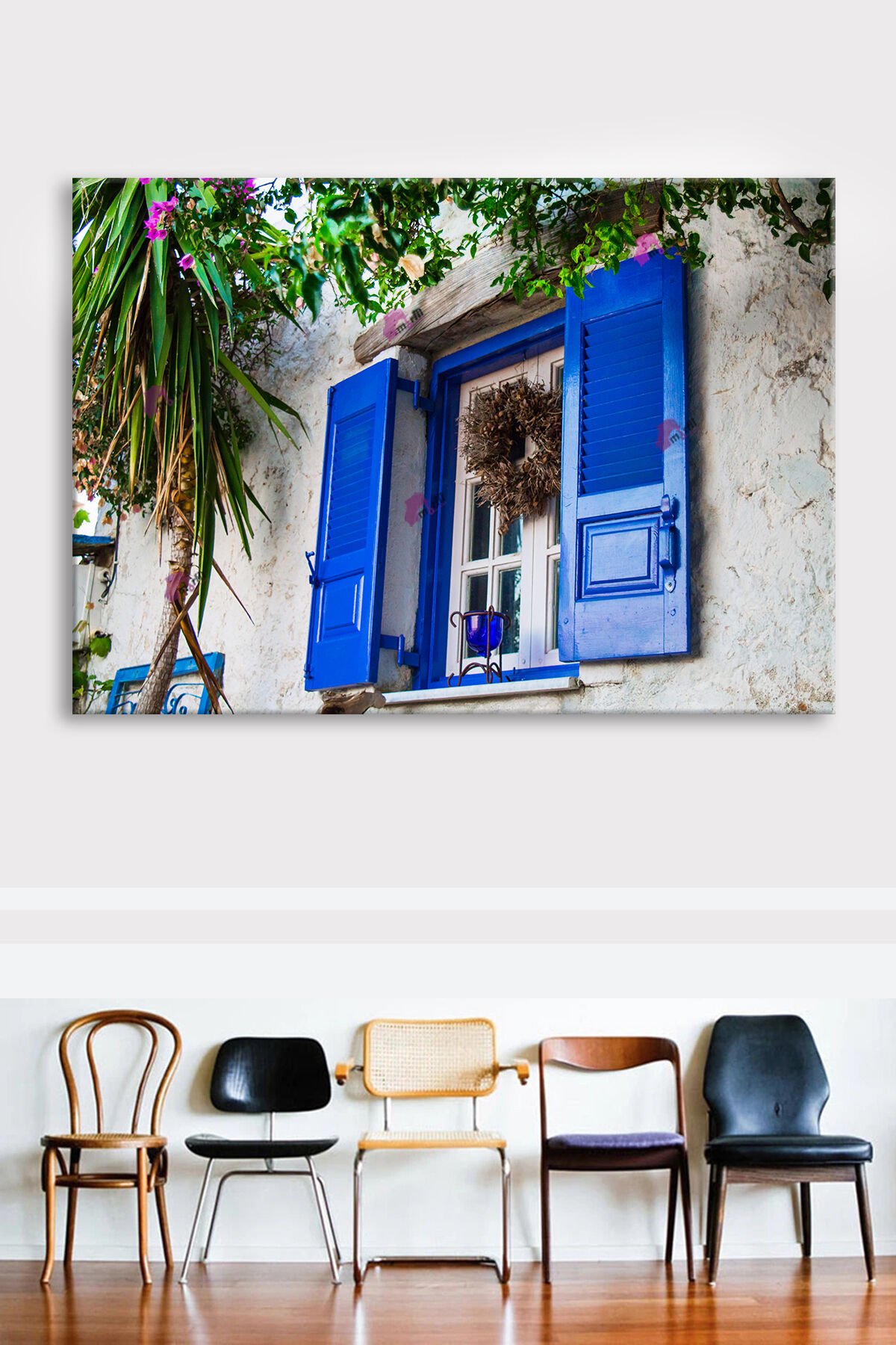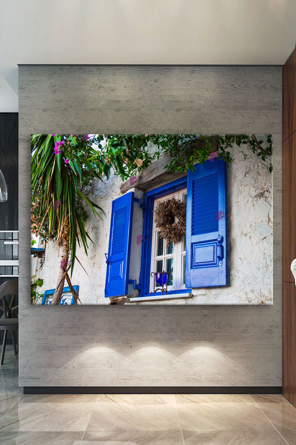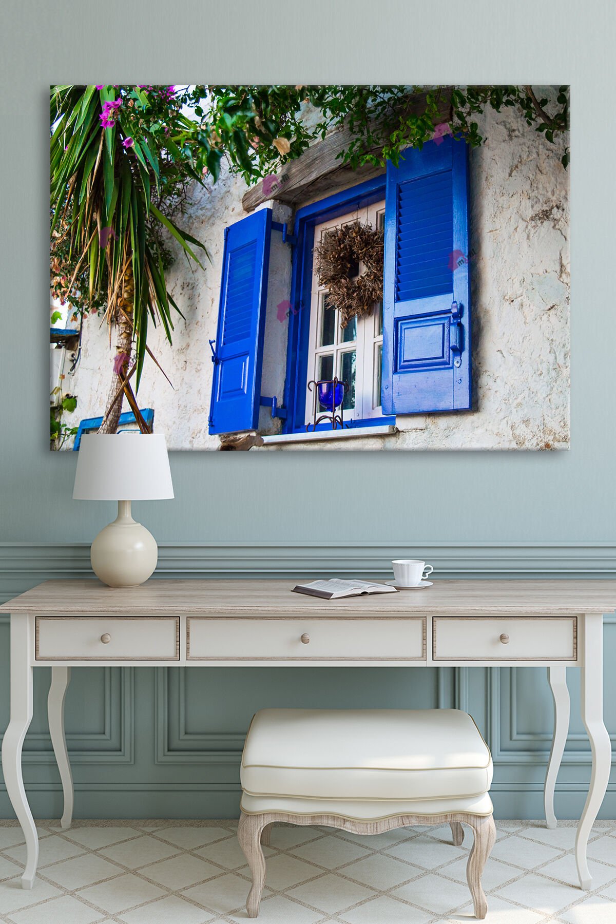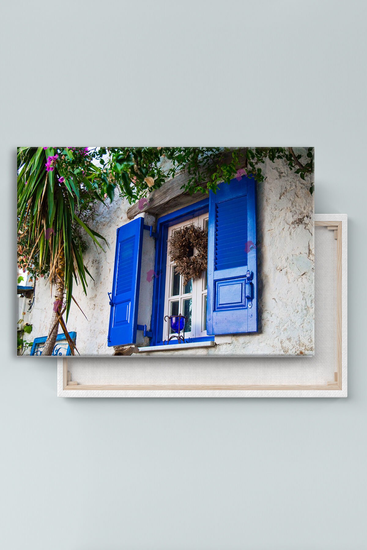 Akdeniz Sahil Taşev Mavi Beyaz Manzara Kanvas Tablo (7 farklı ölçü)