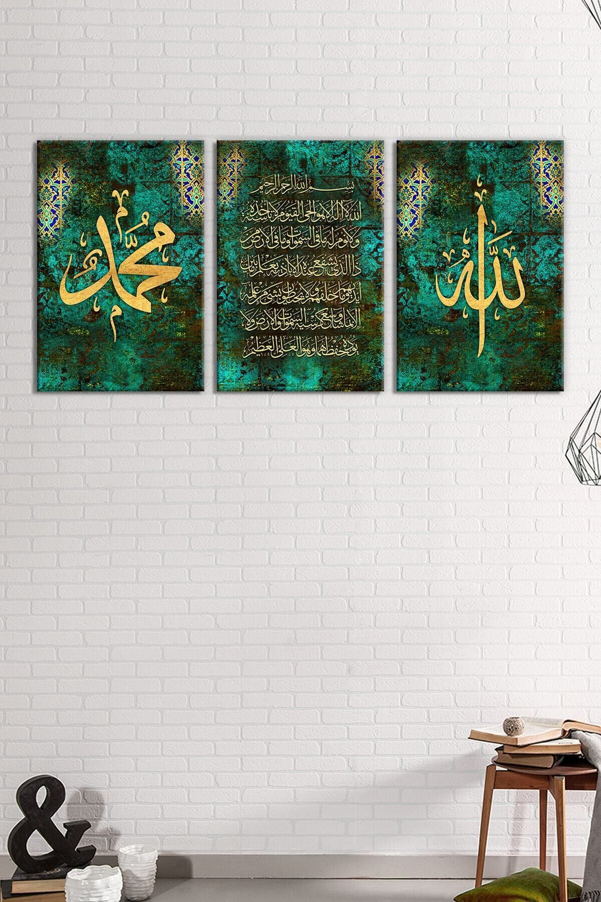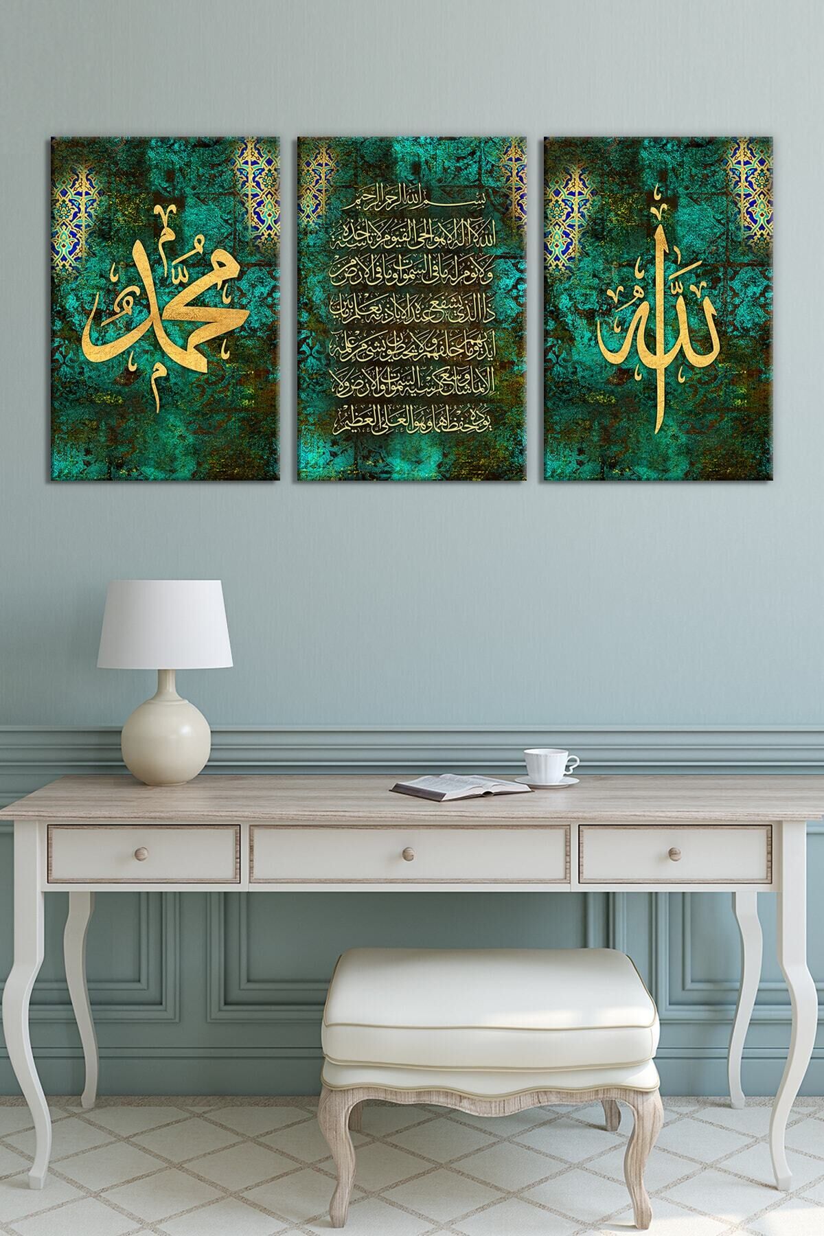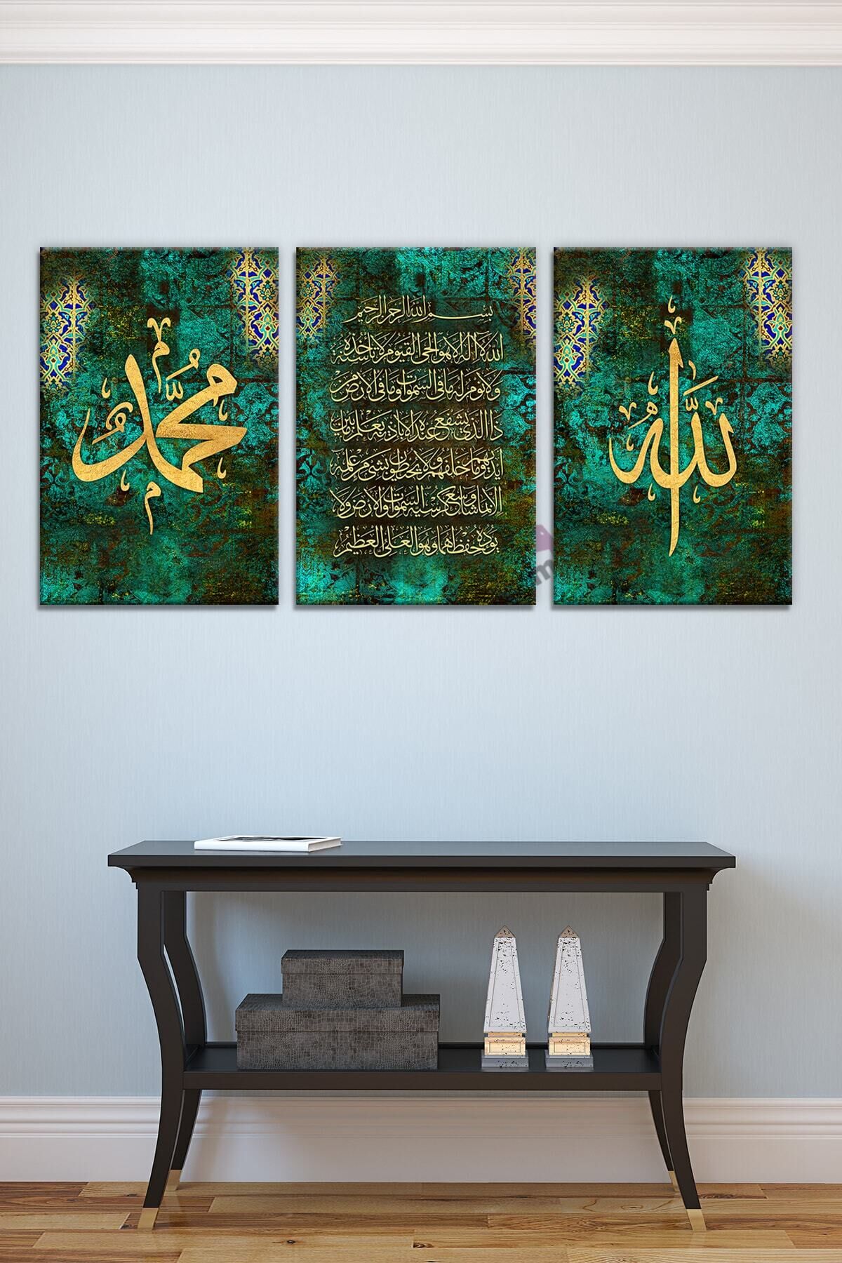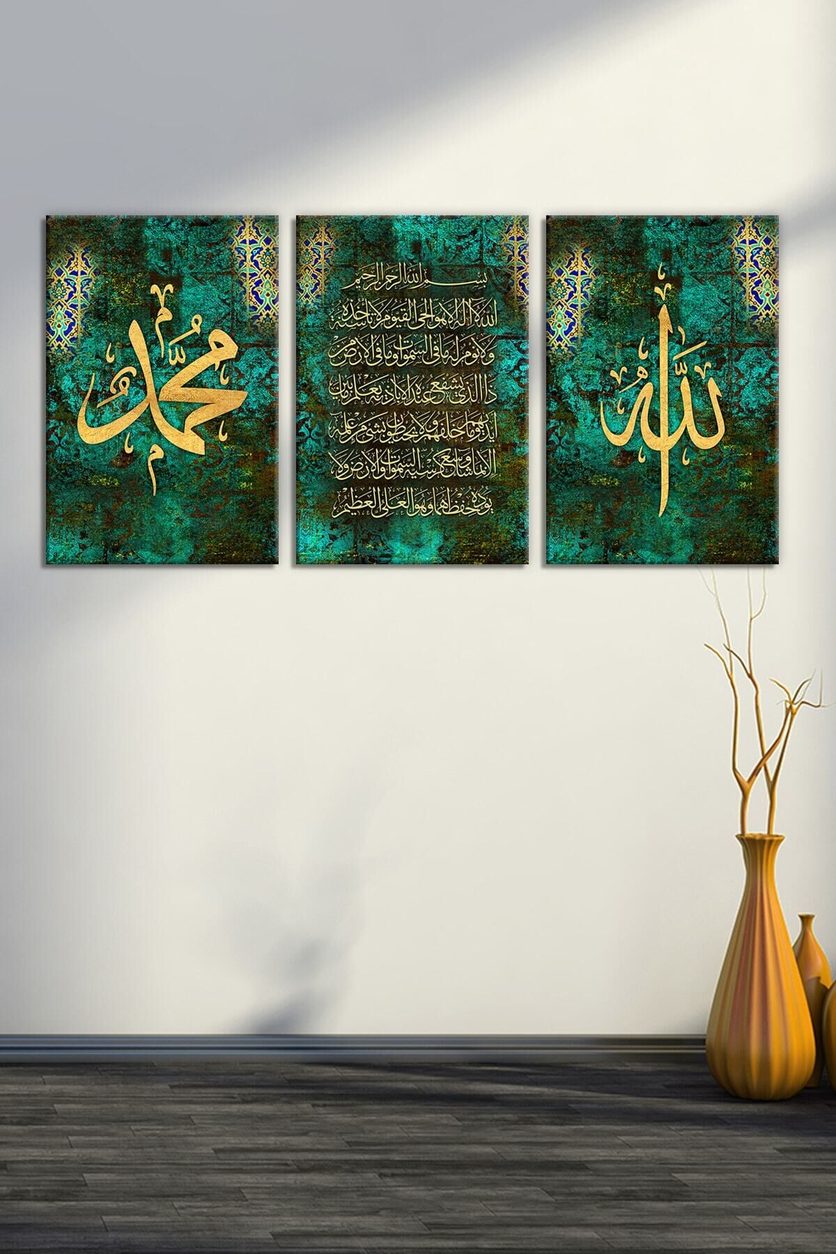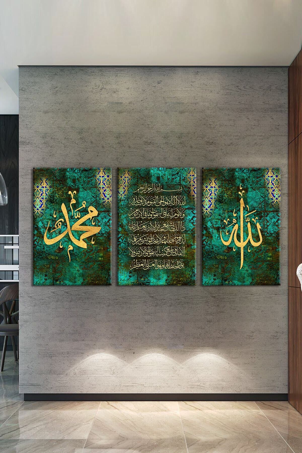 Allah (cc) Muhammed (sav) Ayetel Kürsi İslami Dini Hat Kanvas Tablo Seti (5 farklı ölçü)