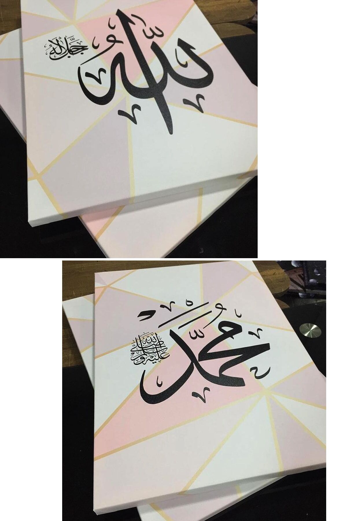 Allah (cc) Muhammet (sav) Islami Dini Hat Kanvas Tablo (çift Tablo)