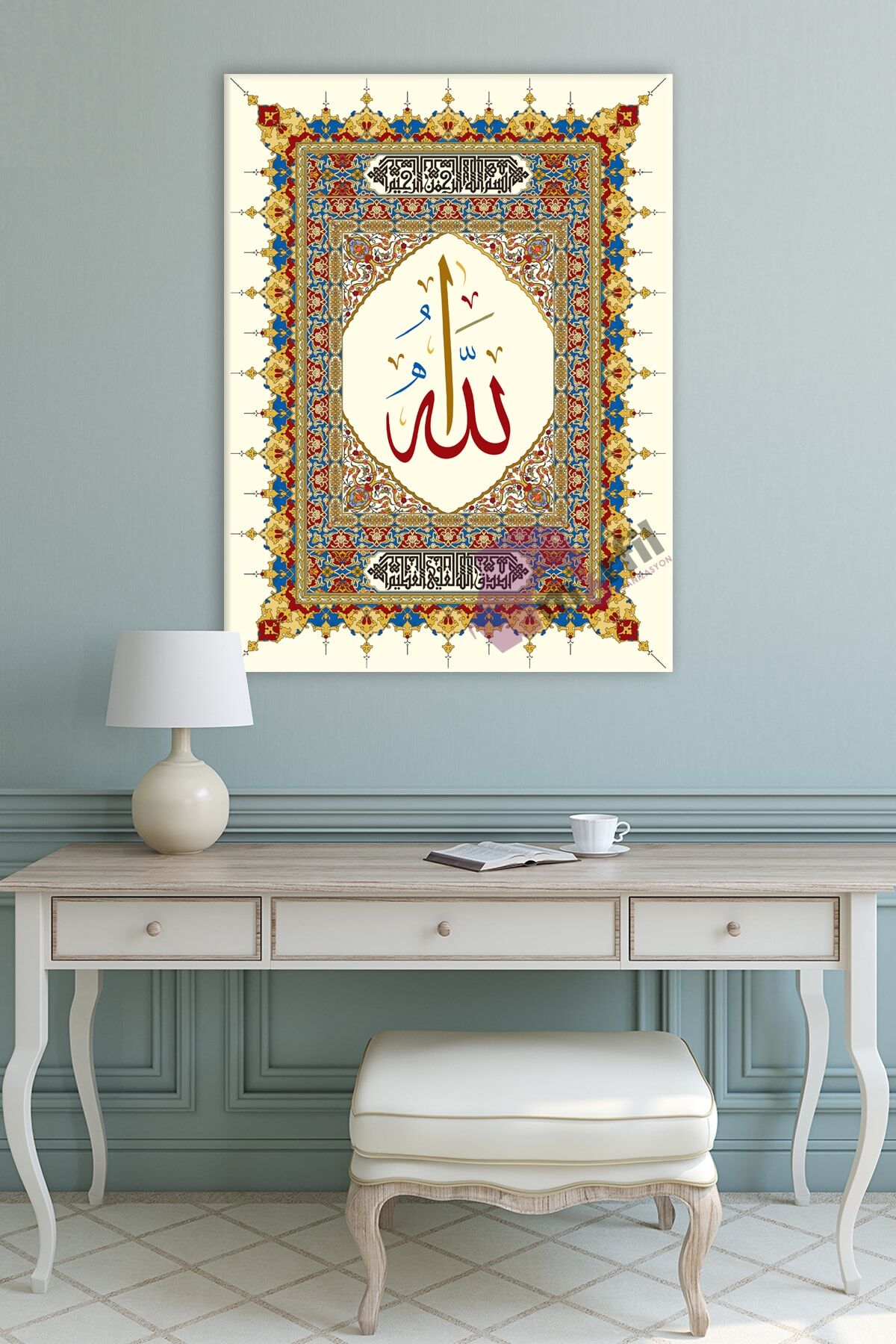 Allah Yazılı Islami Dini Hat Kanvas Tablo Kanvas Tablo ( 7 Farklı Ölçü )