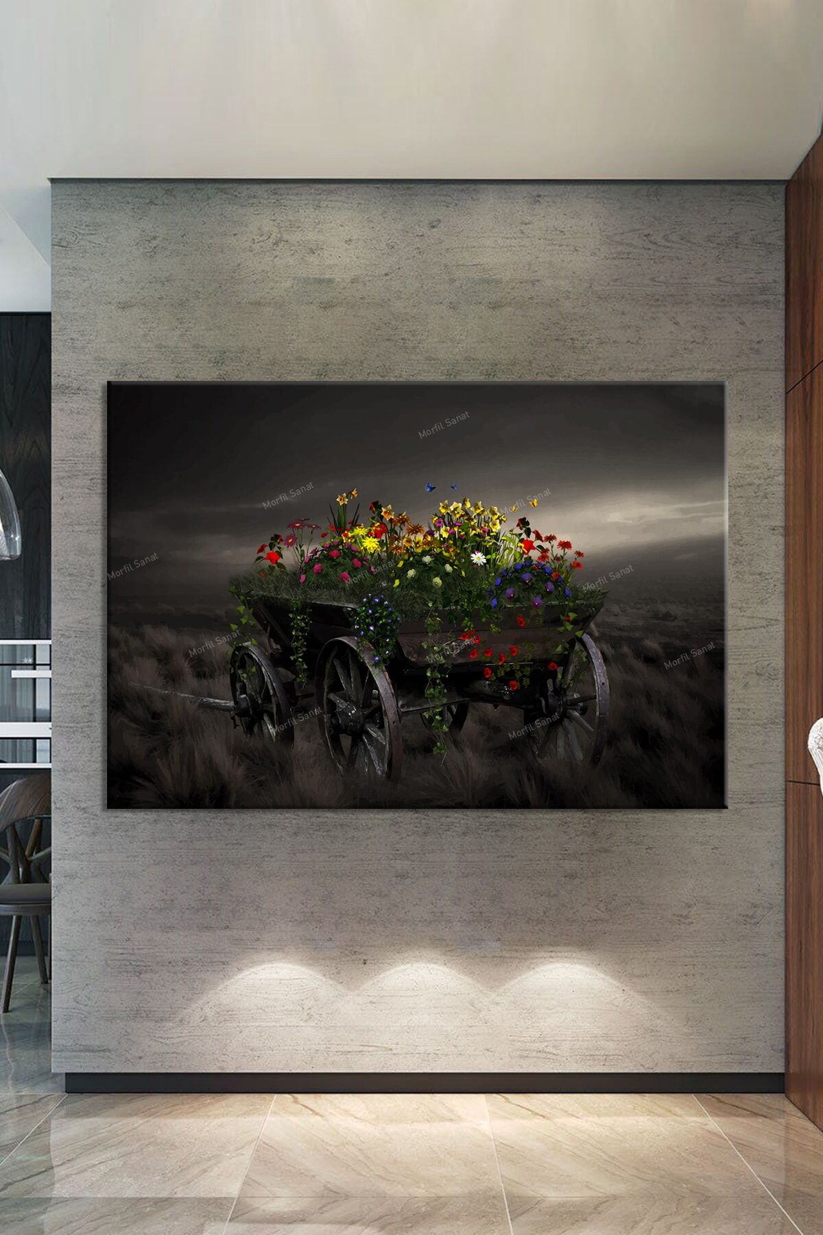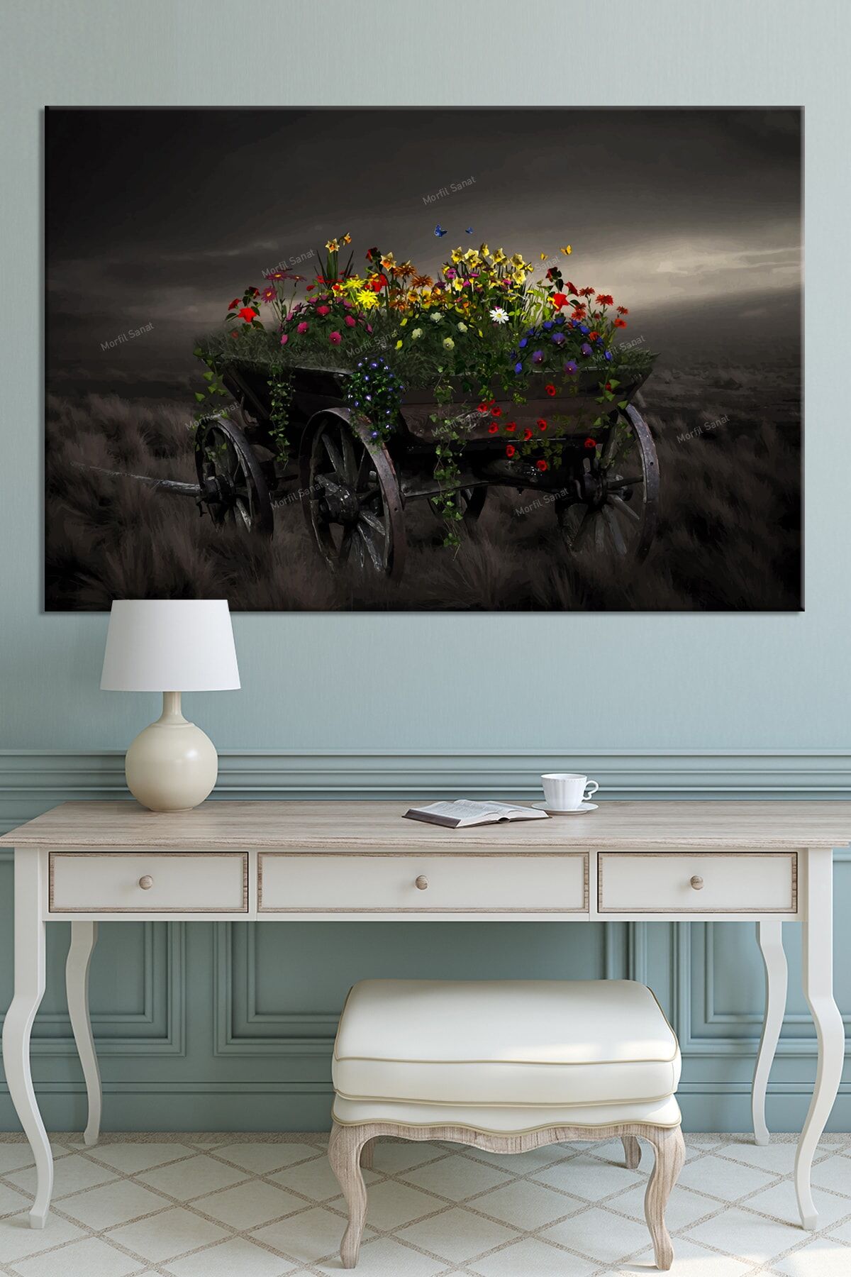 At Arabası Çiçekler Sanatsal Dekoratif Kanvas Tablo
