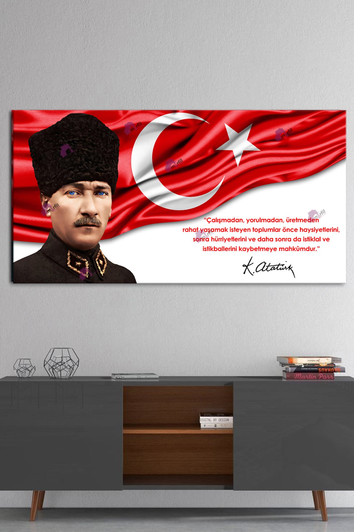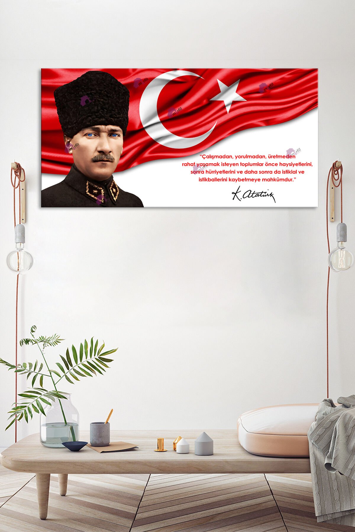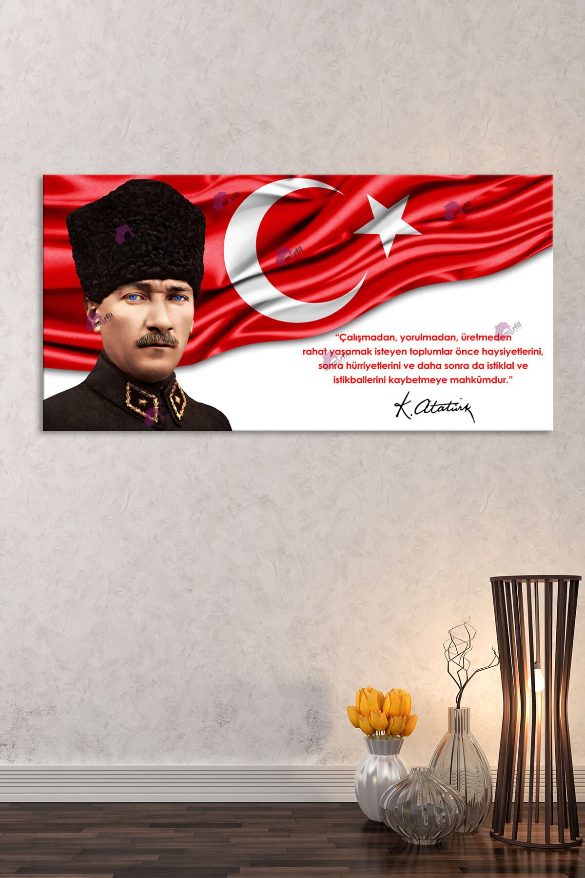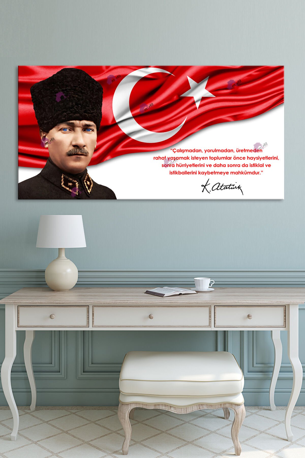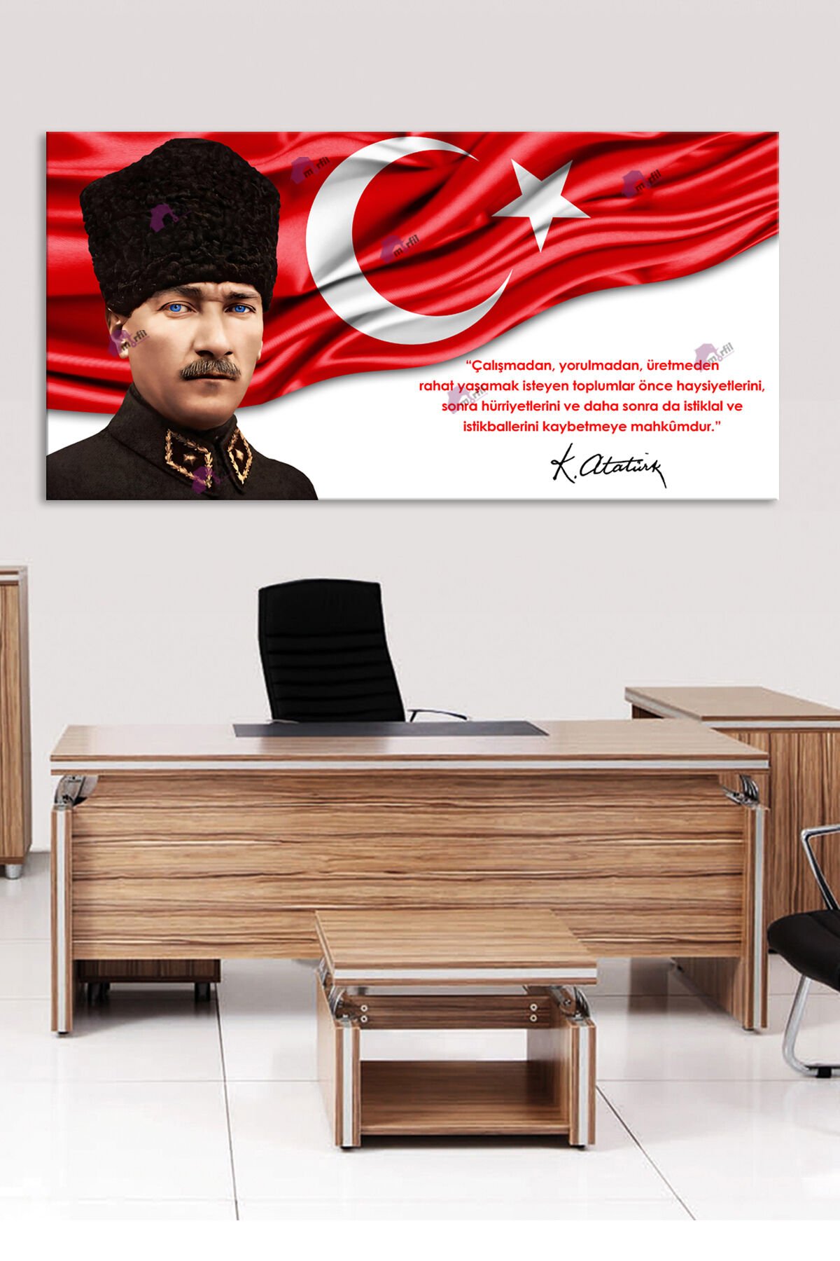 Atatürk Kalpaklı Makam Kanvas Tablo Resmi Kurumlar Okullara Uygun (7farklı ölçü)