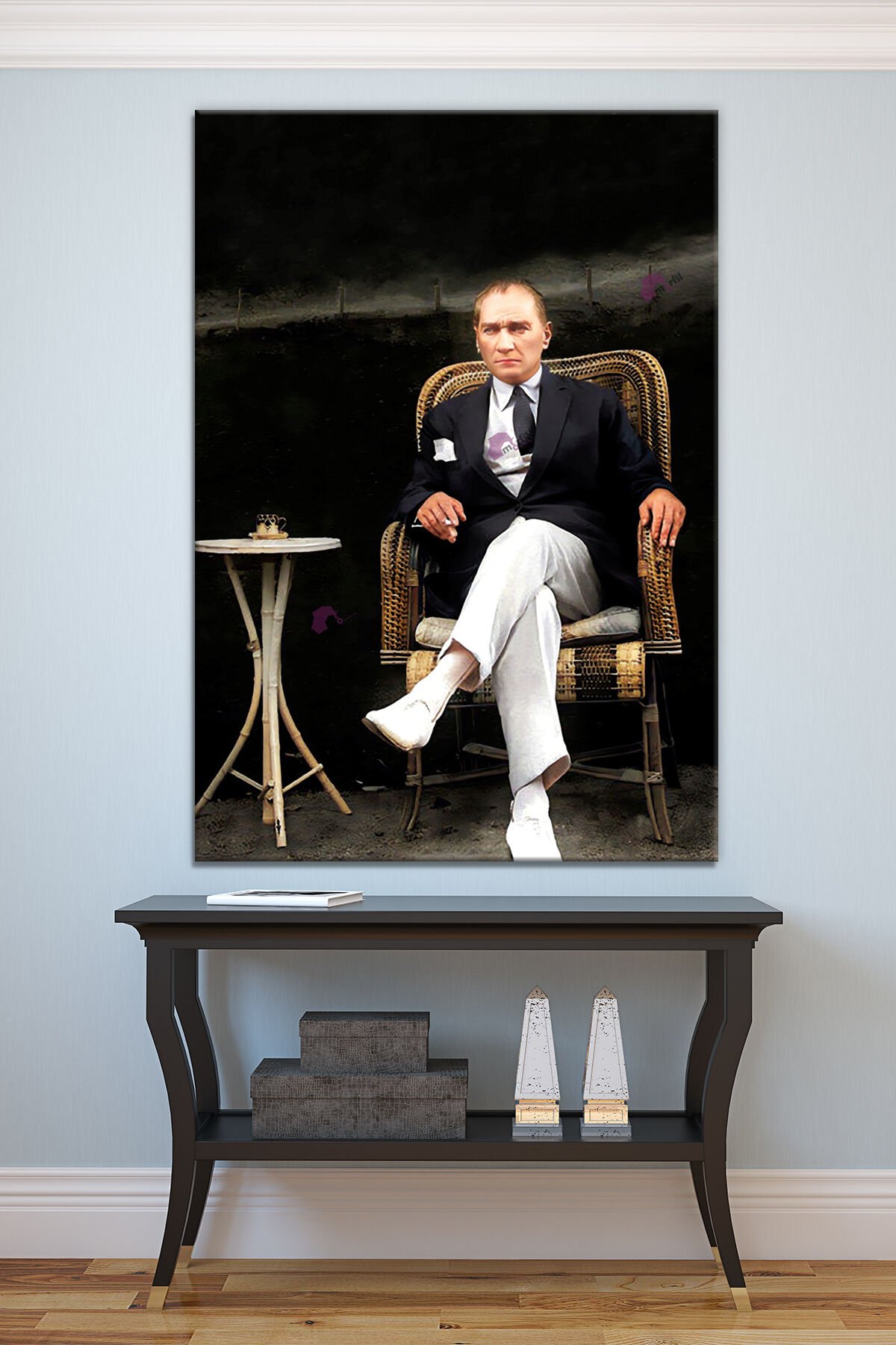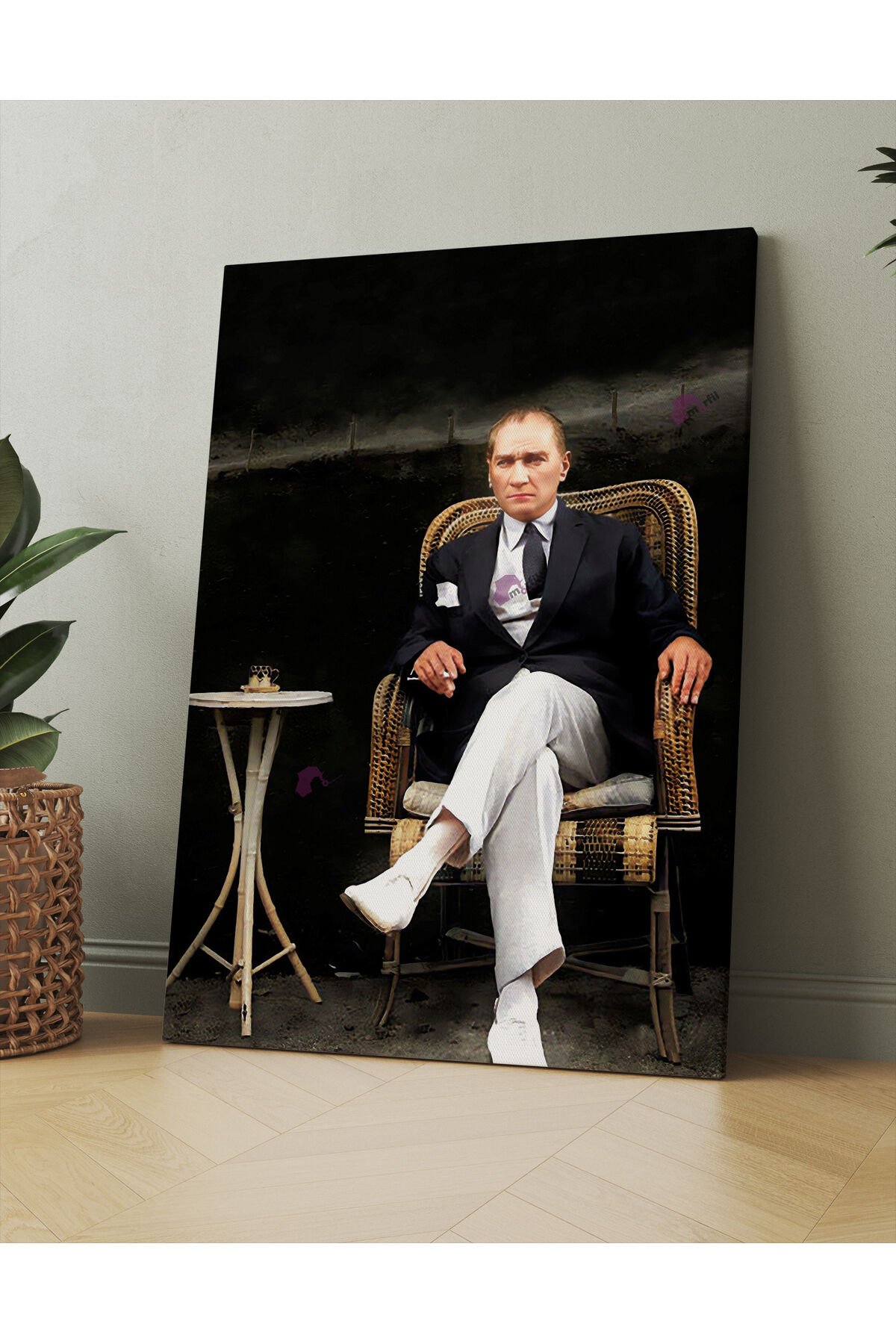Tek parça halinde sunulan bu Atatürk Mustafa Kemal portresi, evinizin veya ofisinizin dekorasyonuna kolayca uyum sağlar; İnsan temalı tasarımıyla dikkat çeken bu tablo, Mustafa Kemal Atatürk'ün özgün bir portresini sunar; Çerçeveli yapısı sayesinde, duvarınıza asıldığında şık bir görünüm kazandırır ve estetik bir dokunuş ekler; Yüksek kaliteli kanvas materyali ile uzun ömürlü kullanım ve canlı renkler sunar;