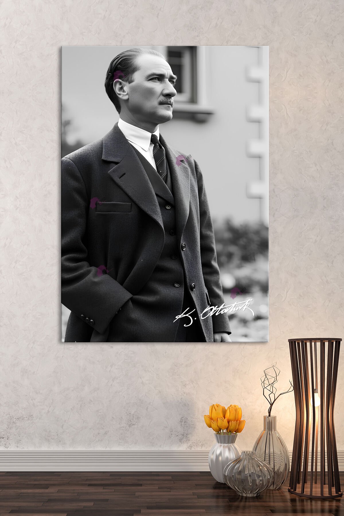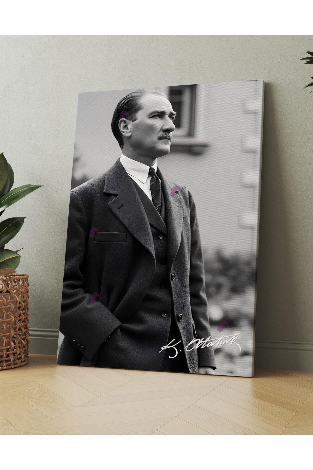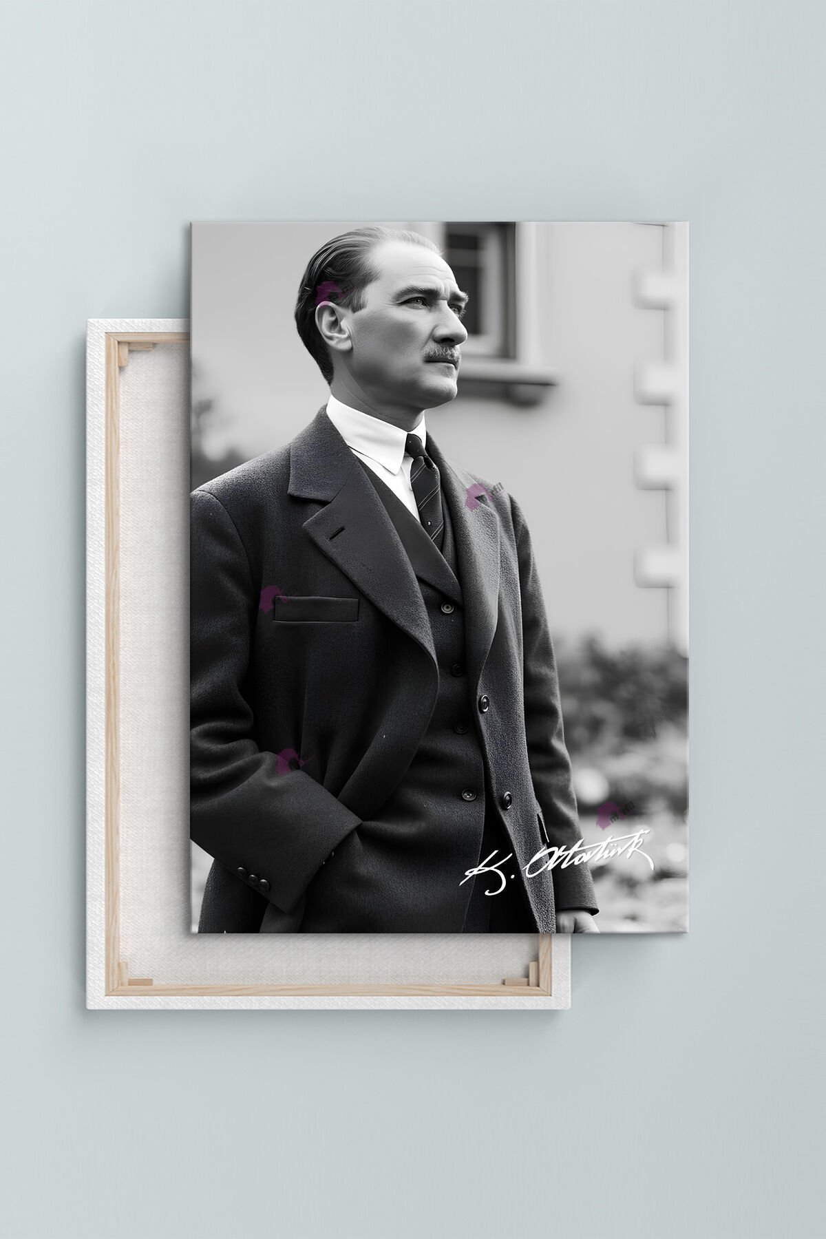 Atatürk Mustafa Kemal Siyah Beyaz Kanvas Tablo (8 Farklı Ölçü)