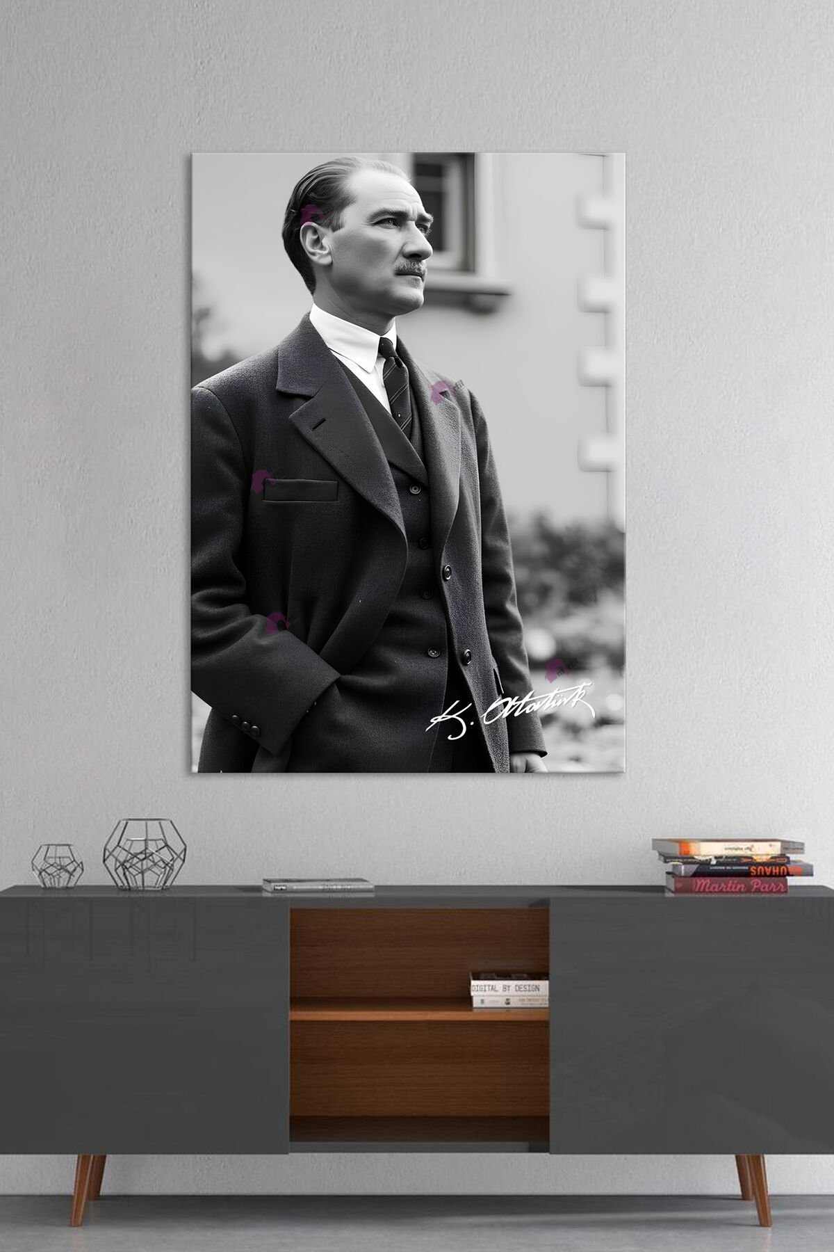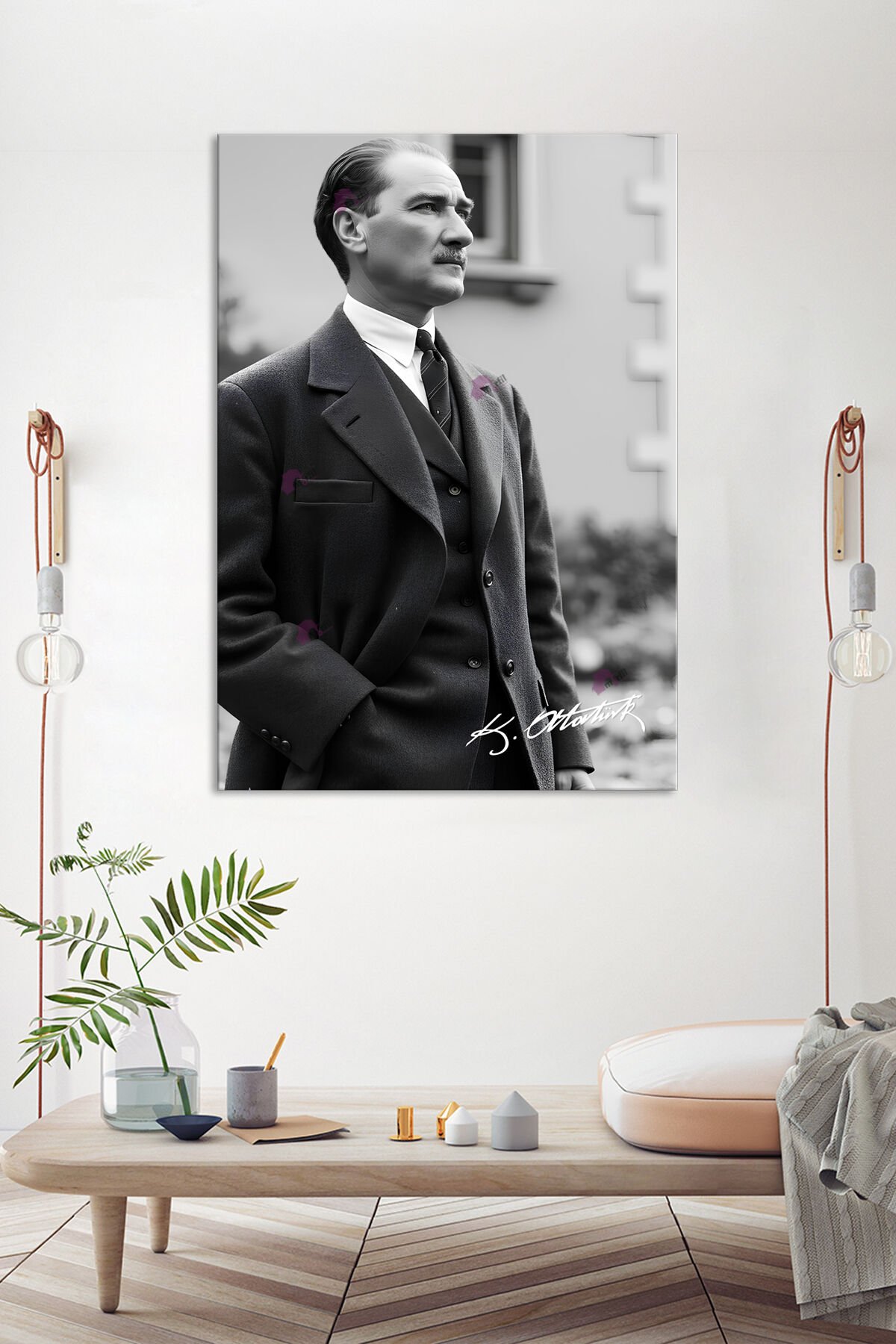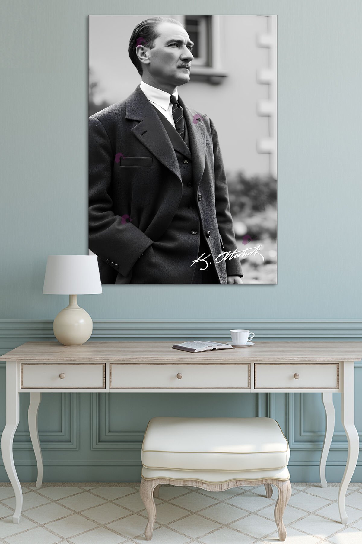 Atatürk Mustafa Kemal Siyah Beyaz Kanvas Tablo (8 Farklı Ölçü)
