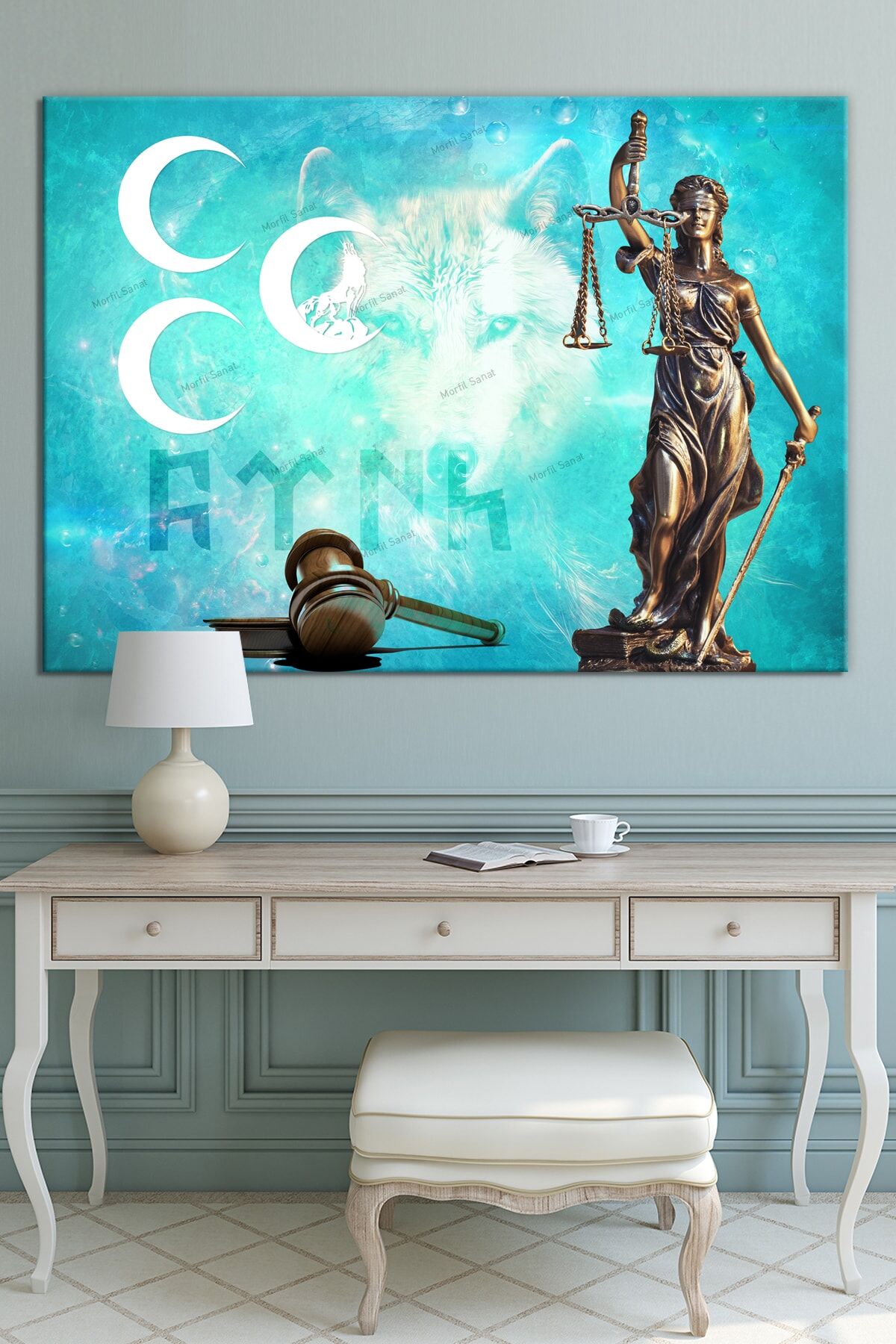 Avukatlara Özel Hukuk Adalet Temalı Makam Kanvas Tablo