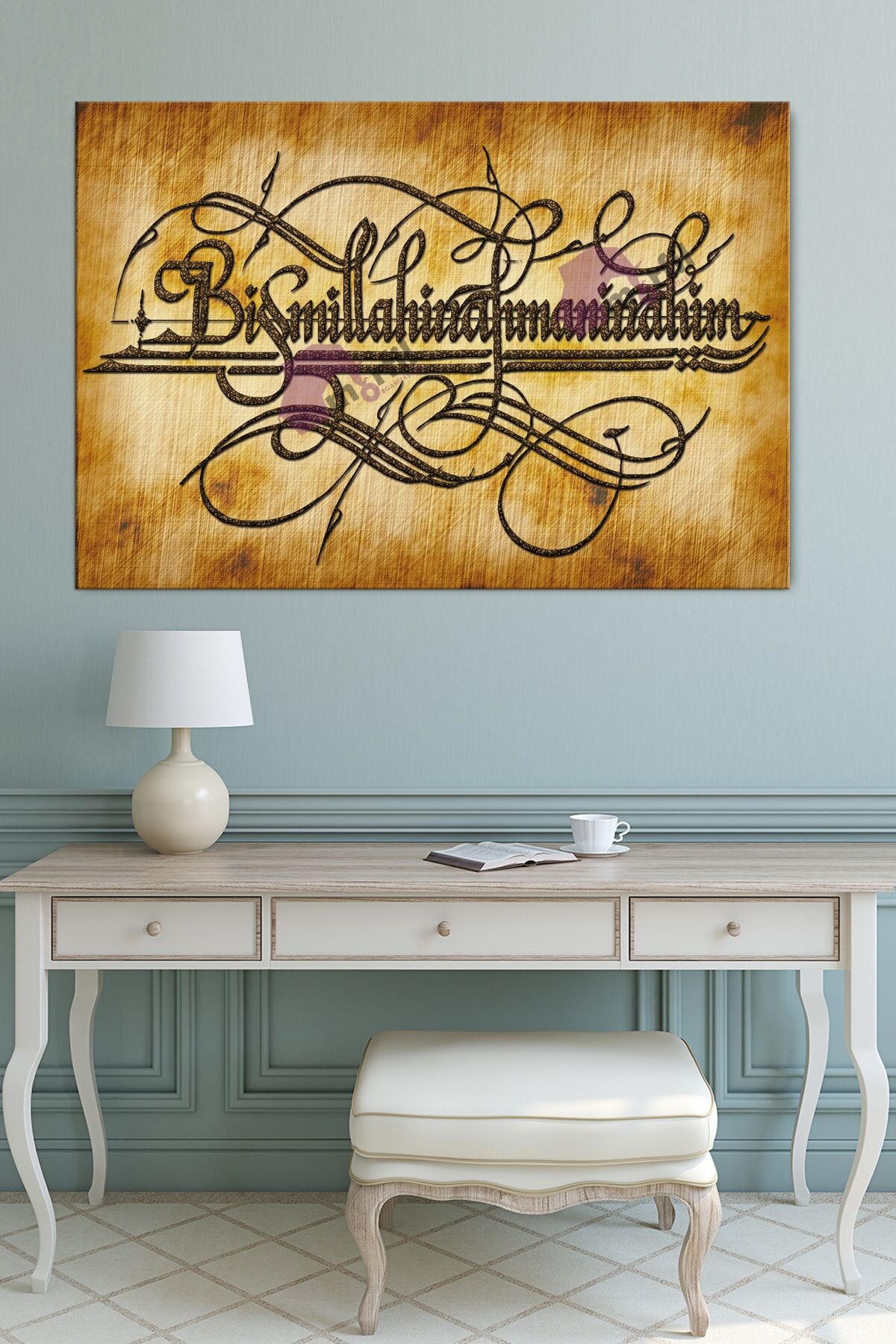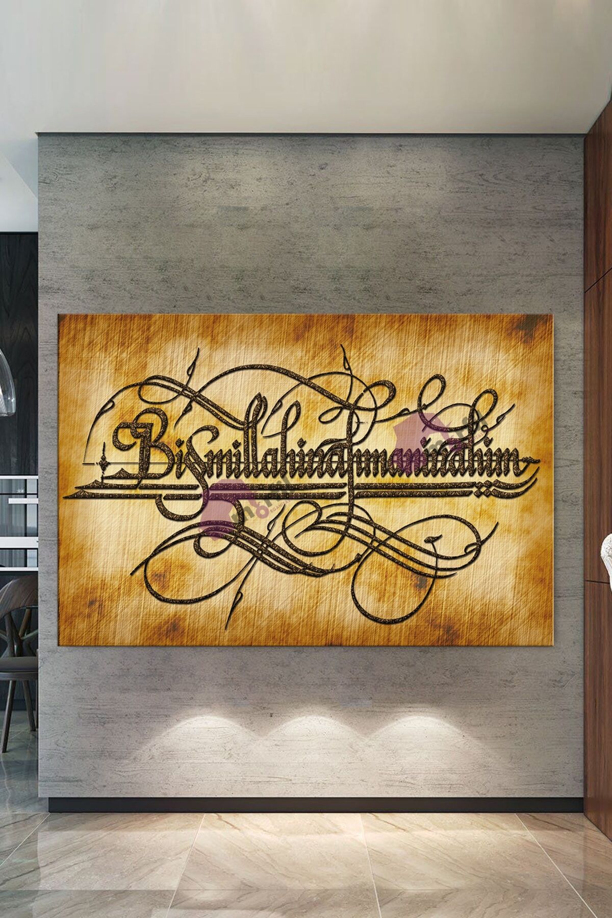 (Aparat Dübel Vida Mevcuttur) Direk çivi veya vida üzerine asılabilmektedir.- Çerçeveli tasarımı ile manevi ve dini temalı Besmele dini ıslami hat kanvas tablo, evinizin veya ofisinizin dekorasyonuna derinlik katar; - Tek parça halinde gelen bu eser, kolay montaj avantajı sunar ve duvarınızda şık bir görünüm oluşturur; - Kanvas materyali sayesinde uzun ömürlü kullanım ve renklerin canlılığını koruma özelliği ile dikkat çeker; - 7 farklı ölçüsüyle her mekâna uyum sağlayacak şekilde tasarlanmıştır; böylece kişisel zevkinize göre seçiminizi yapabilirsiniz;