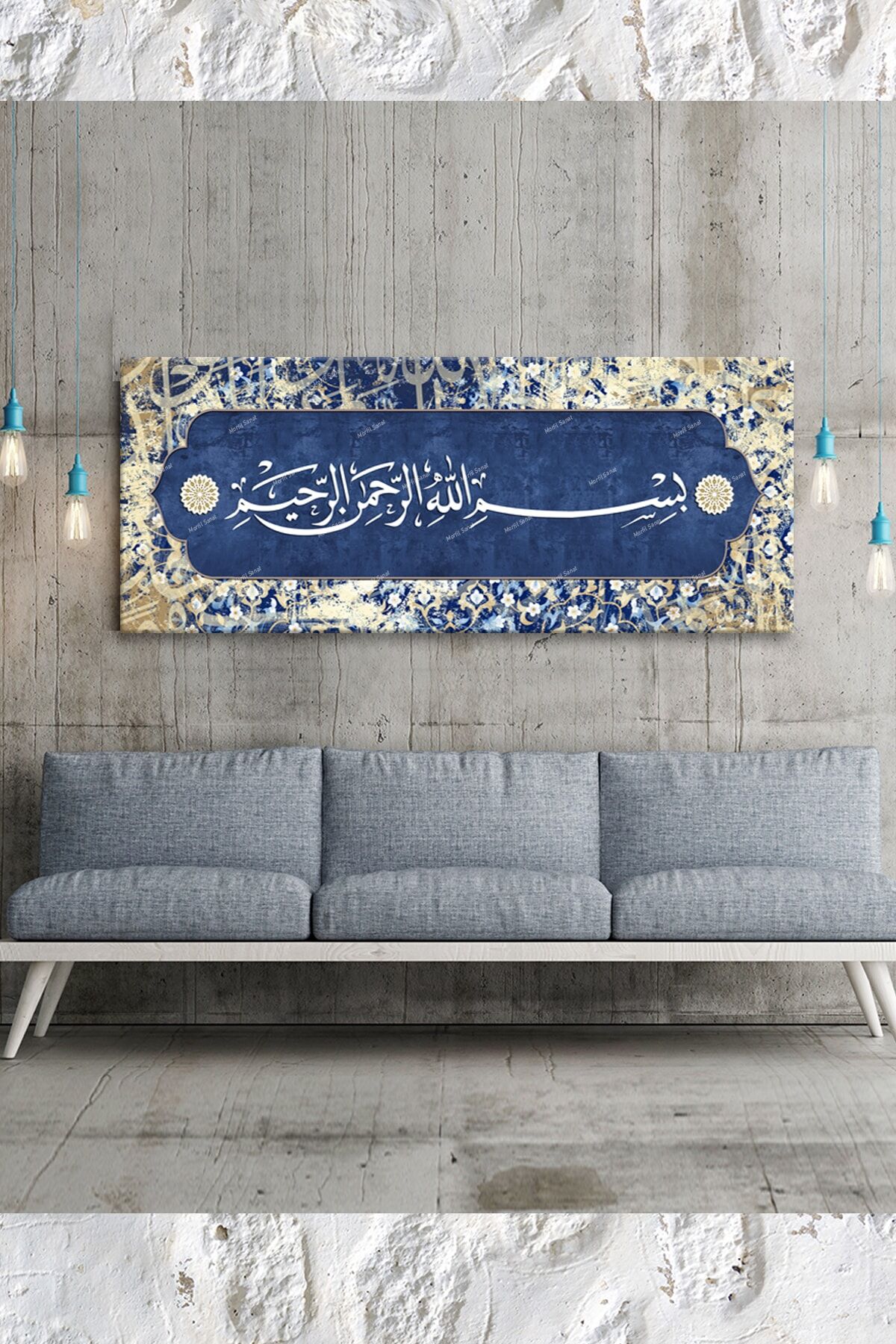 Besmele Dini Islami Hat Kanvas Tablo Bismillahirrahmanirrahim ( 7 Farklı Ölçü )