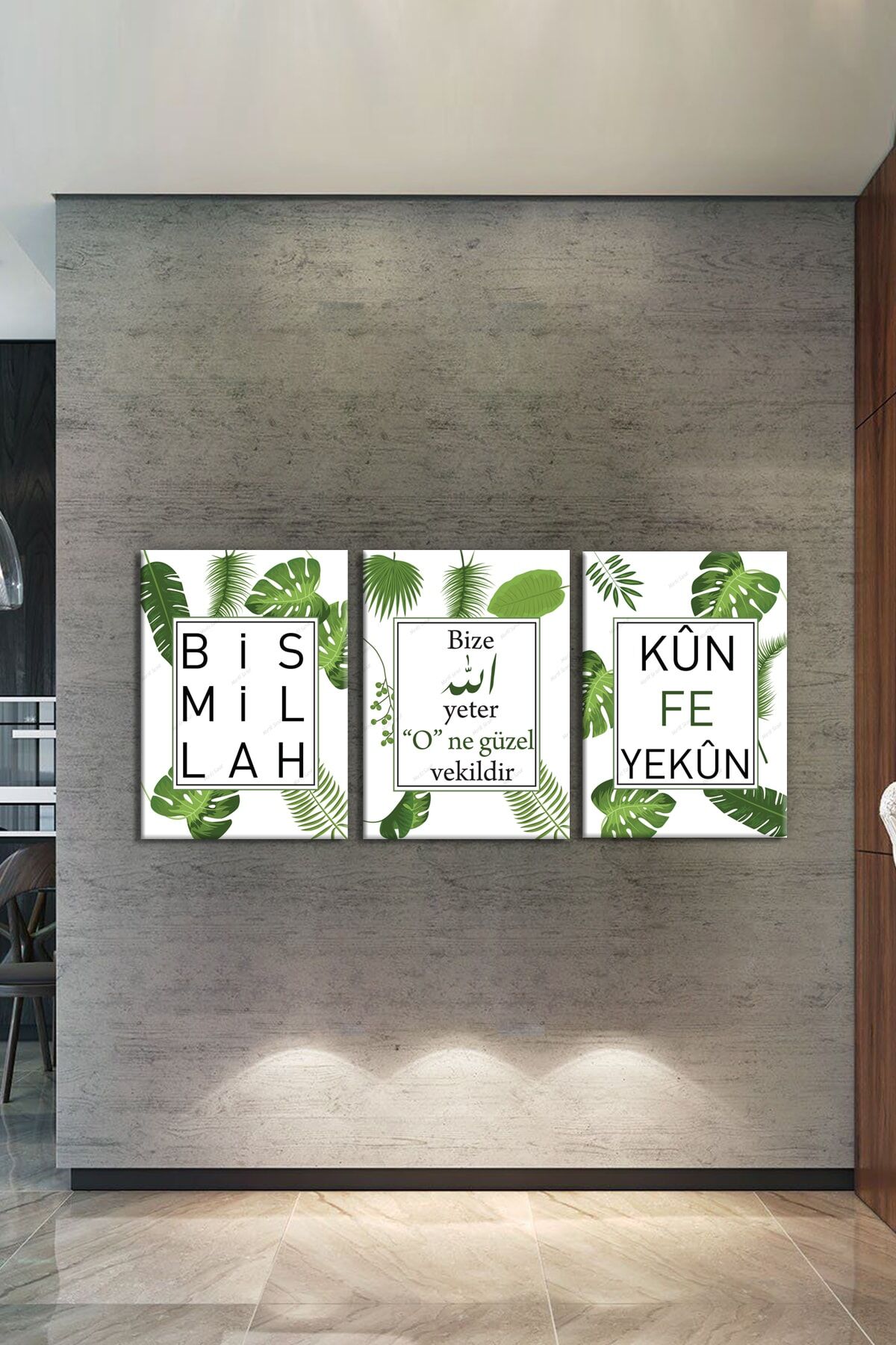Besmele Kunfeyekun Bize Allah Yeter O Ne Güzel Vekildir Üçlü Dini Islami Kanvas Tablo