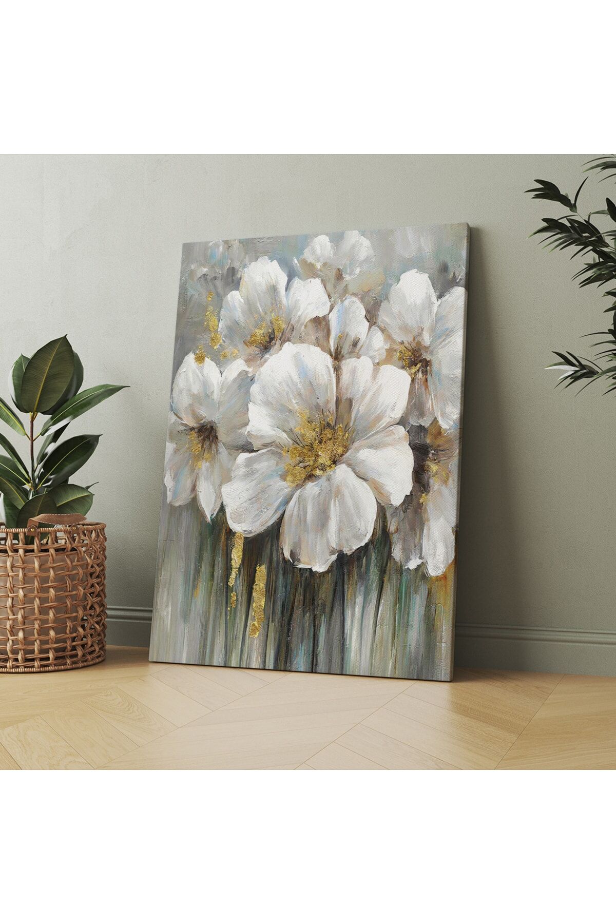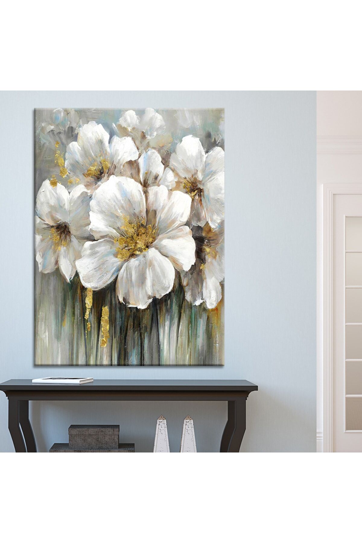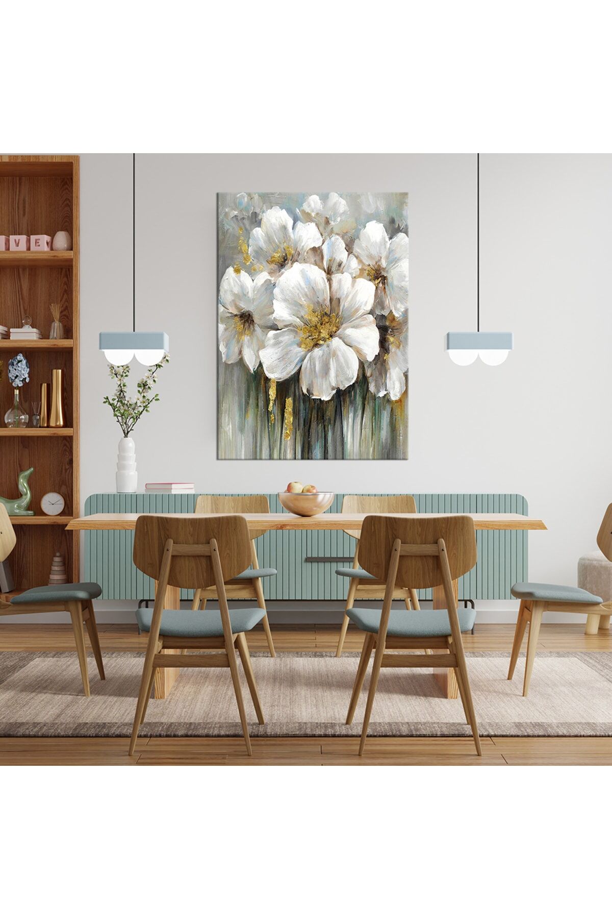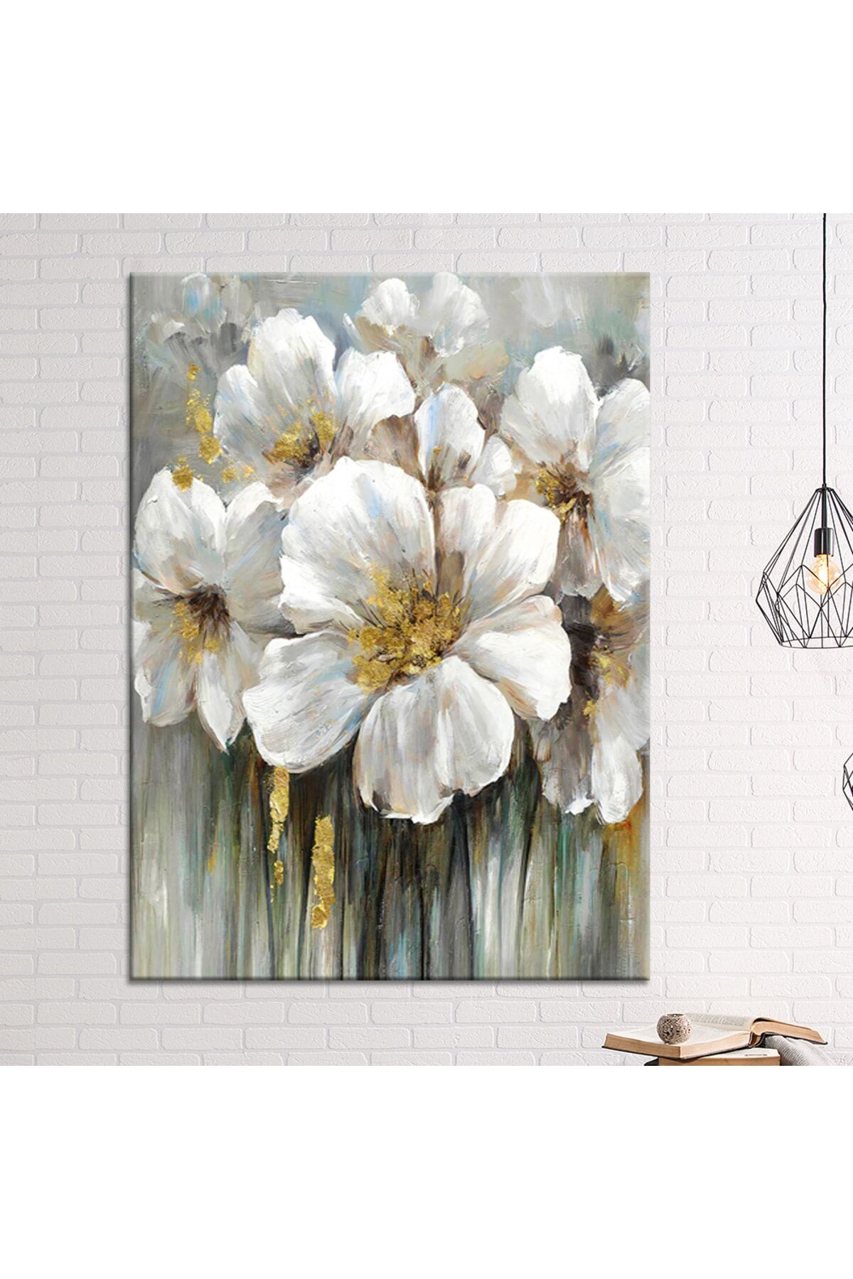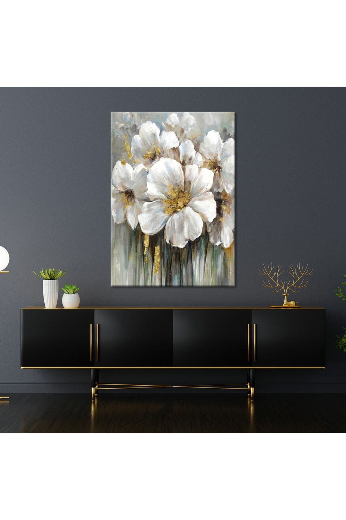 Beyaz Çiçekler Yağlıboya Görünümlü Dekoratif Kanvas Tablo (8 Farklı Ölçü)