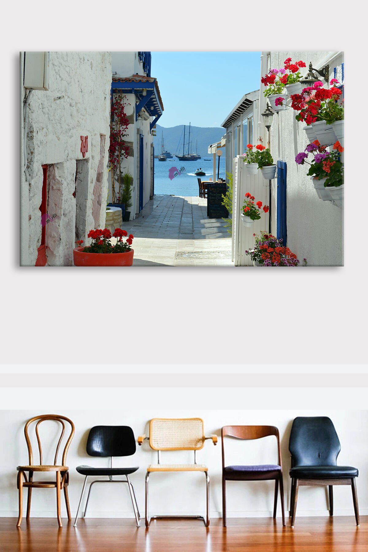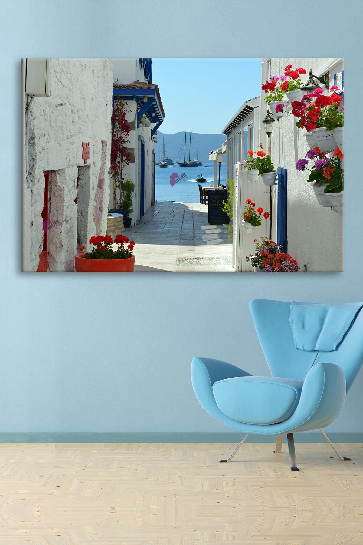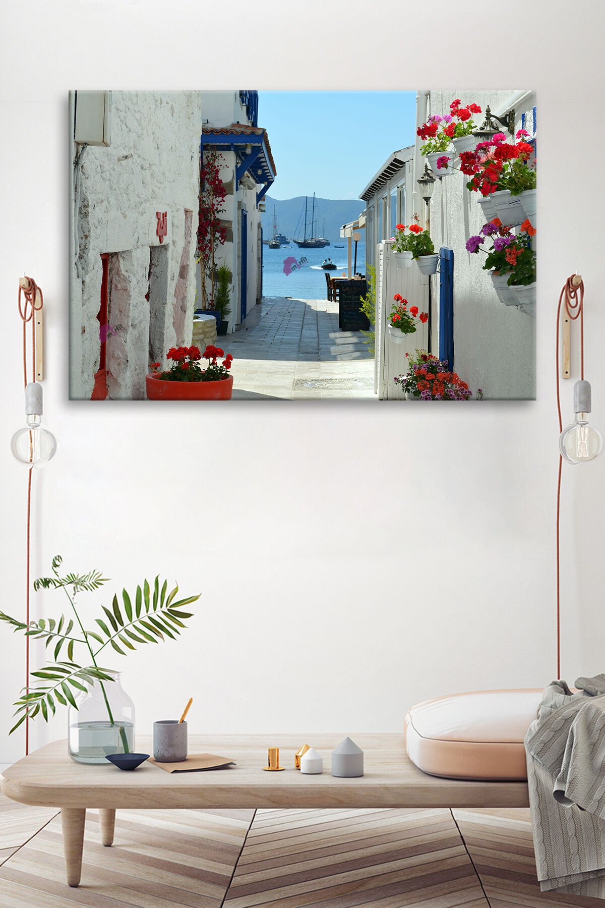 Bodrum Taşevler Deniz Manzara Doğa Kanvas Tablo (6 FARKLI ÖLÇÜ)