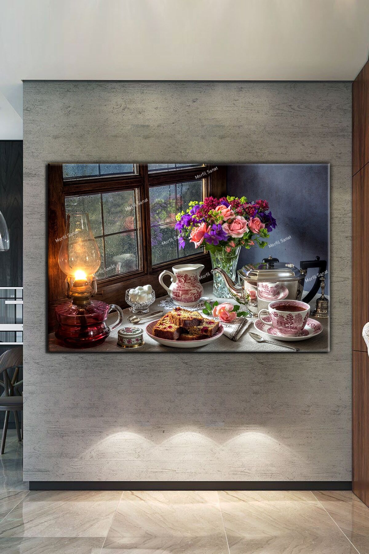 Çay Keyfi Mutluluk Çayı Dekoratif Cafelere Kafelere Özel Dekoratif Kanvas Tablo