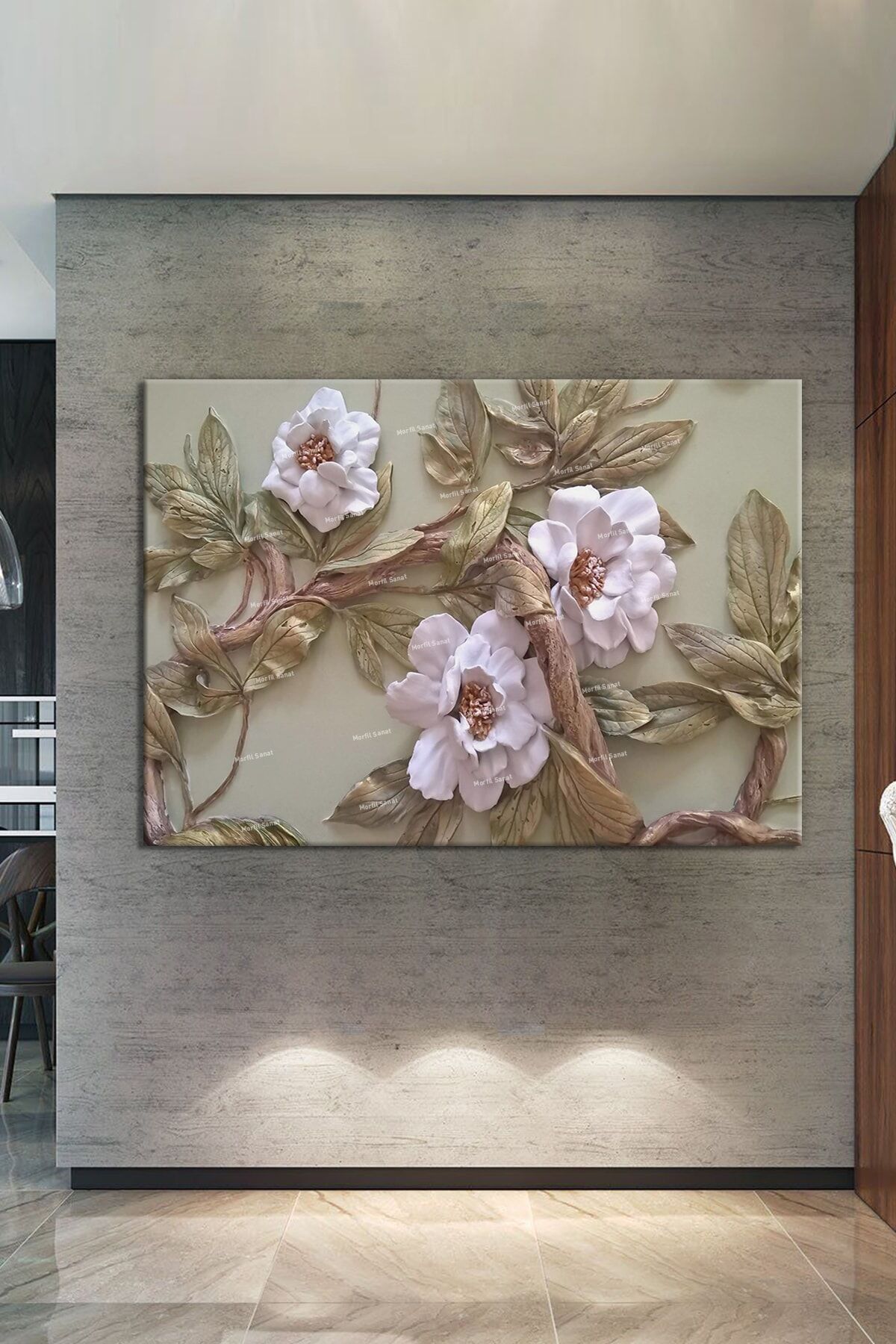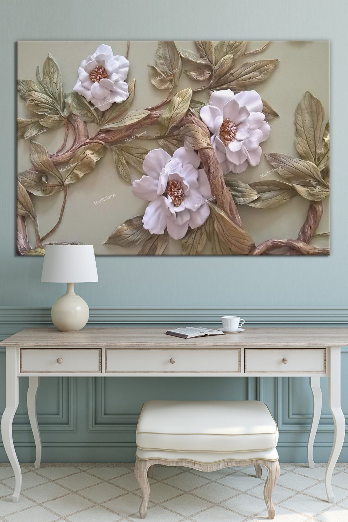 Çiçekler Üç Boyut Görünümlü Dekoratif Kanvas Tablo 8 Farklı Ölçü
