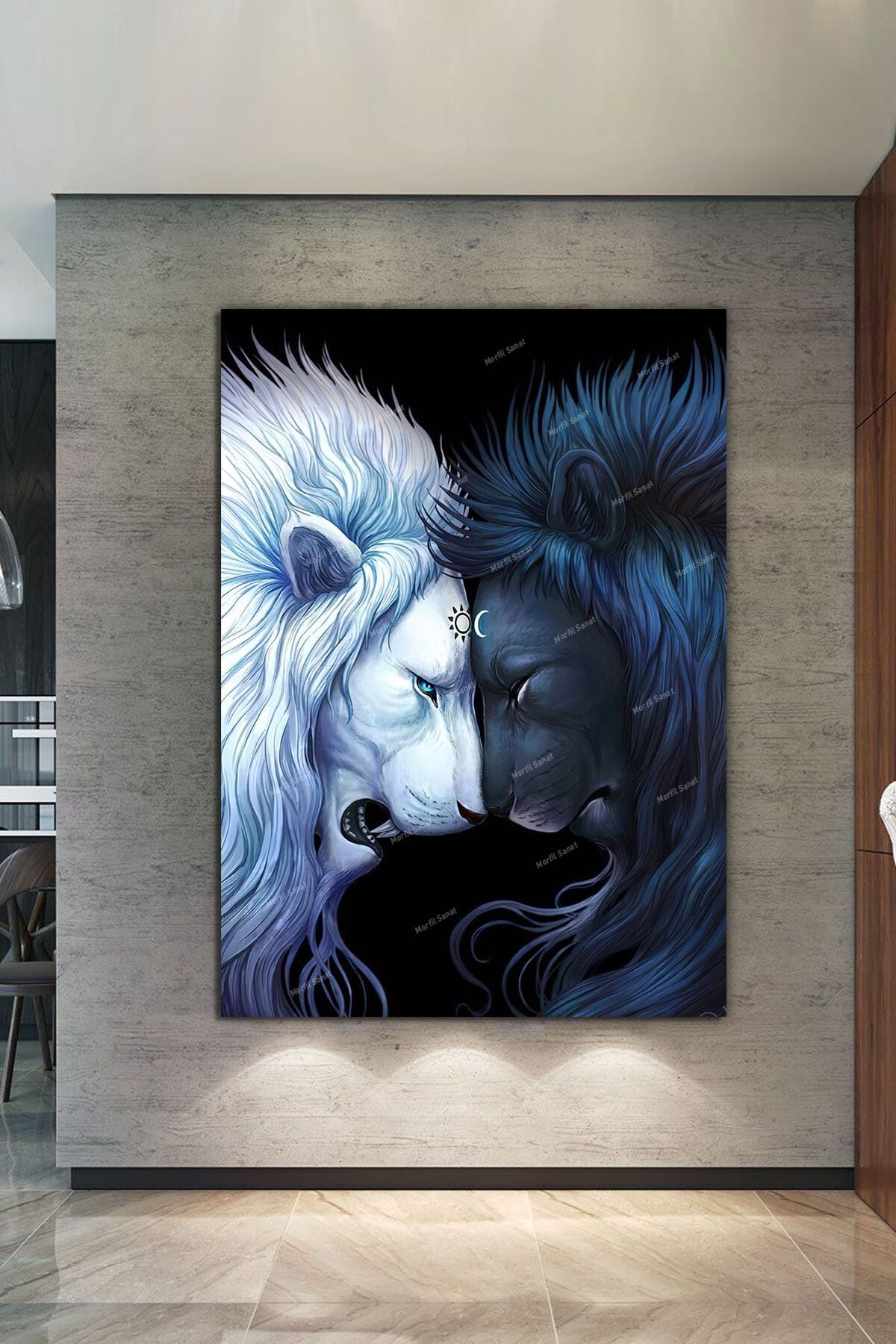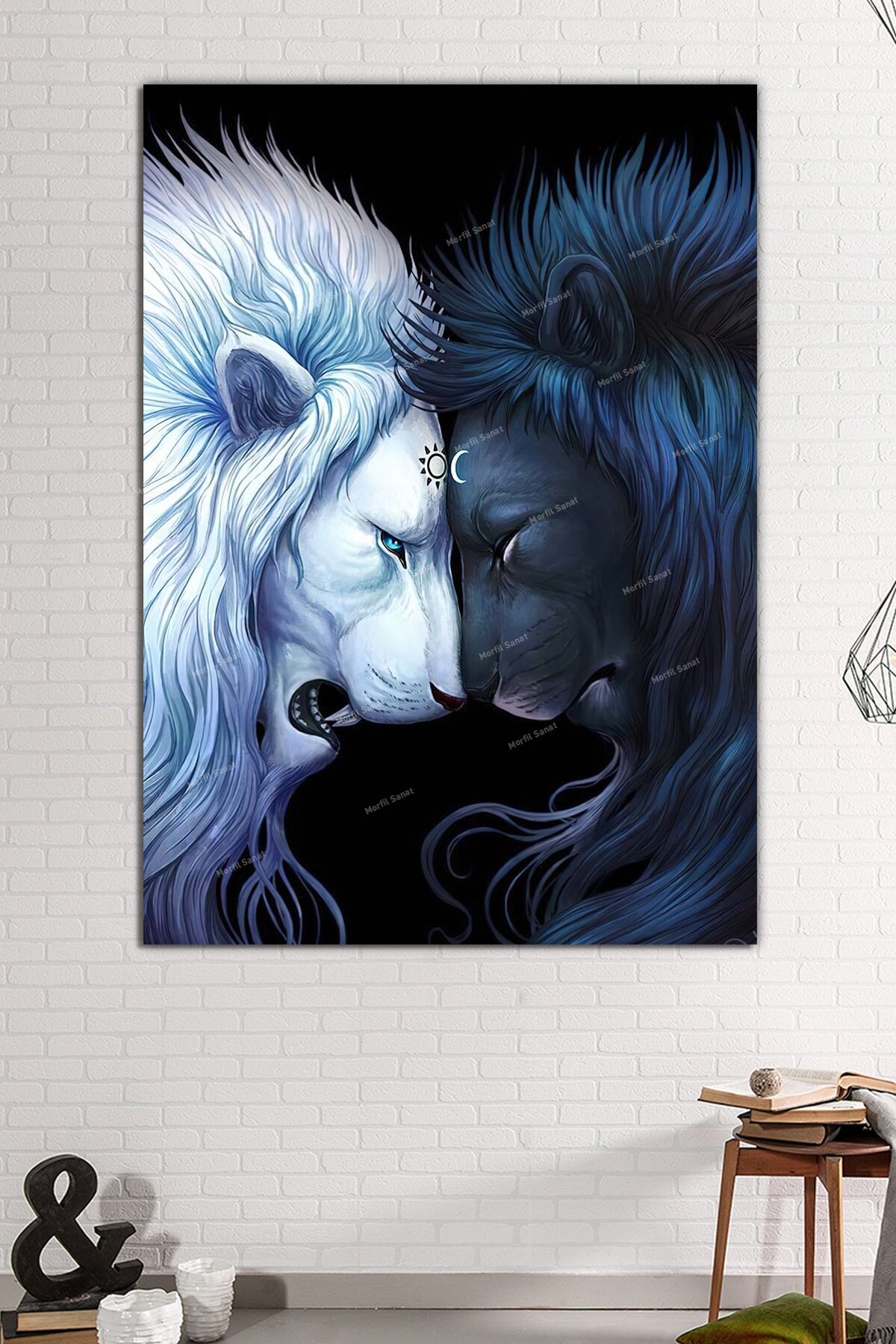 Çift Aslan Yin Yang Dekoratif Kanvas Tablo