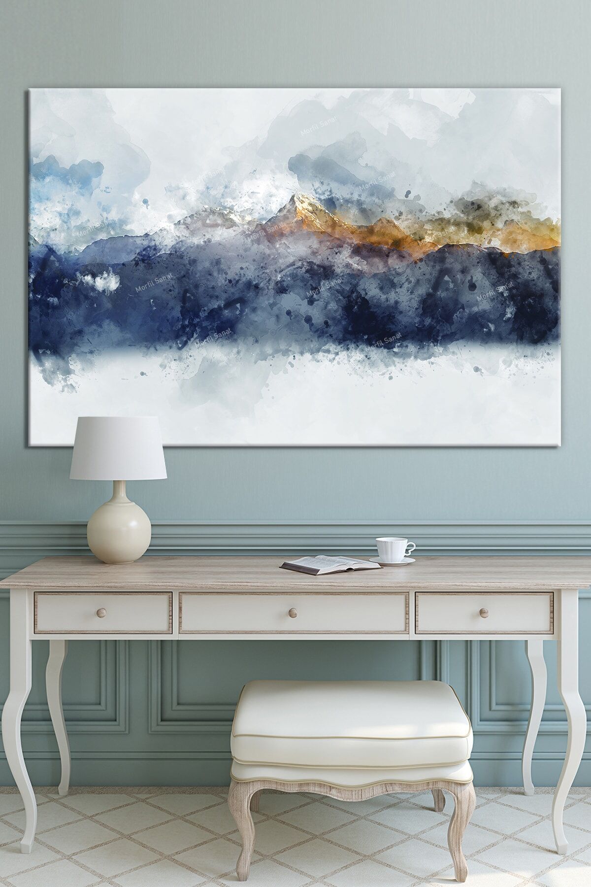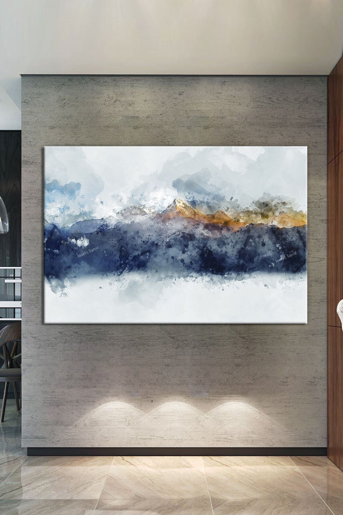 Dağlar Ve Hayaller Suluboya Efektli Muhteşem Kanvas Tablo (8 Farklı Ölçü)