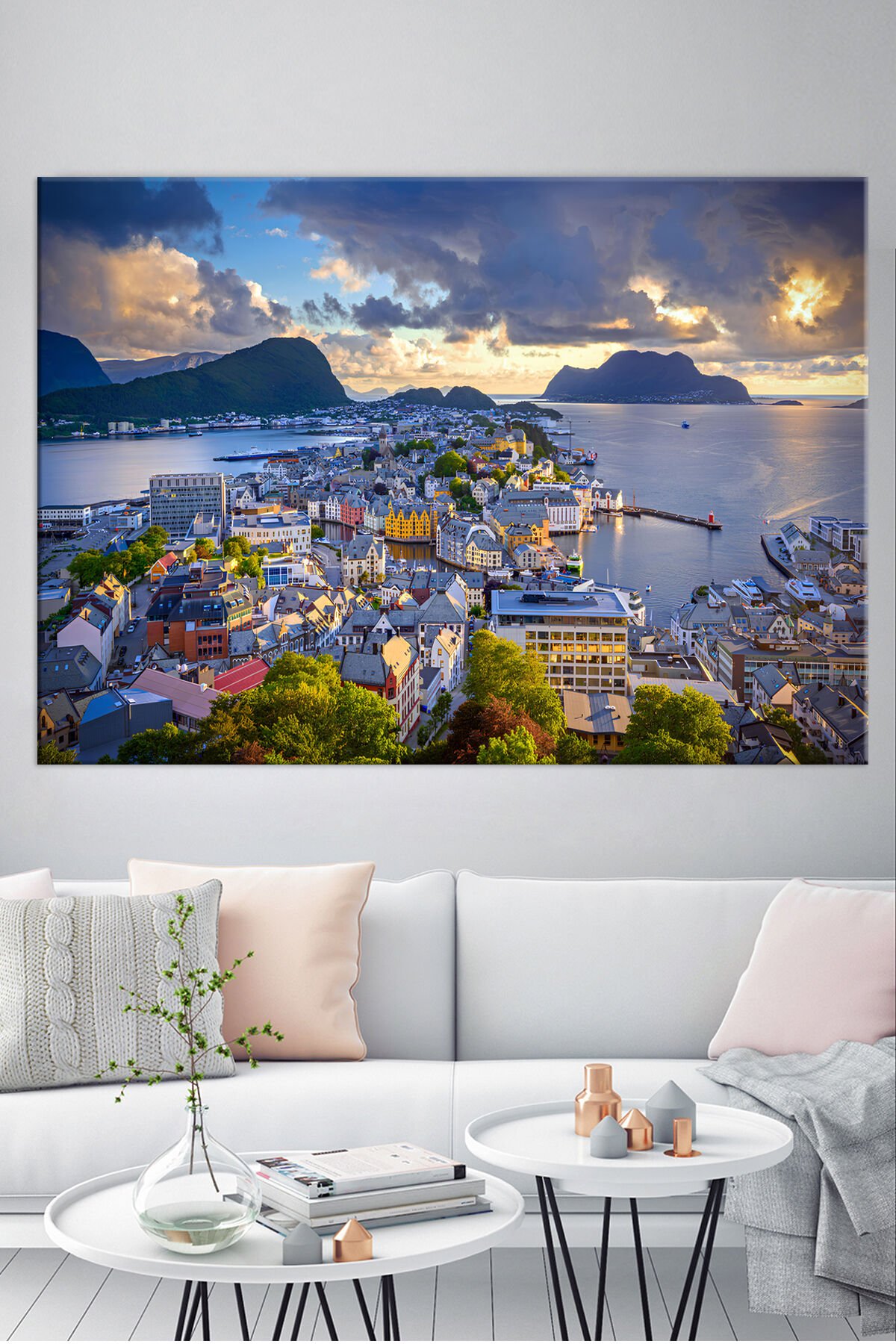 Deniz Sahil Şehir Manzara Doğa Kanvas Tablo ( 7 FARKLI ÖLÇÜ )