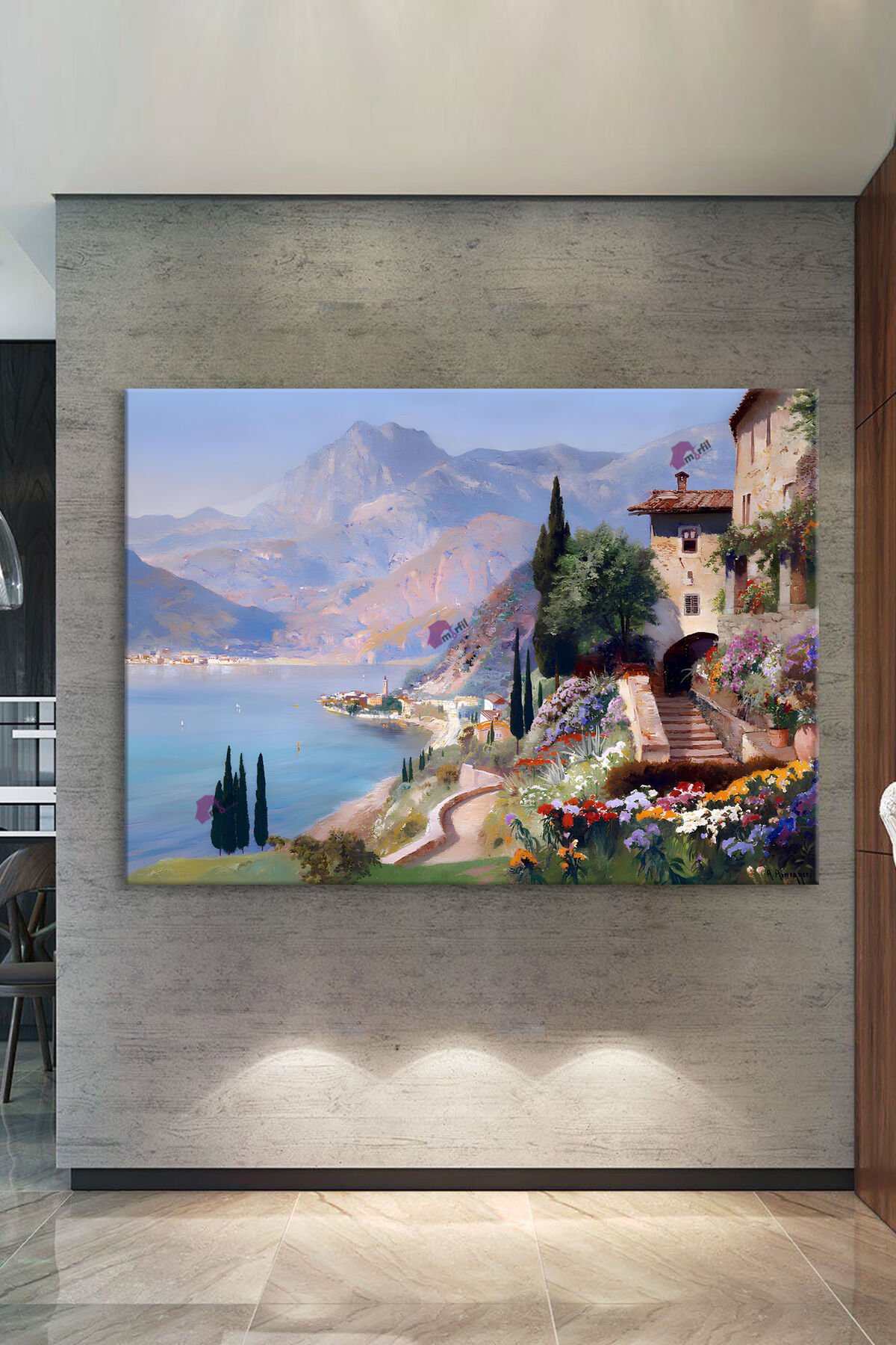 Deniz Sahil Taş Evler Romantik Doğa Manzara Sanatsal Kanvas Tablo (7 farklı ölçü)