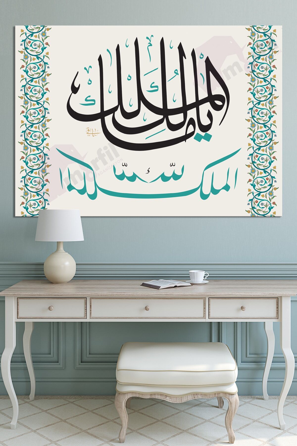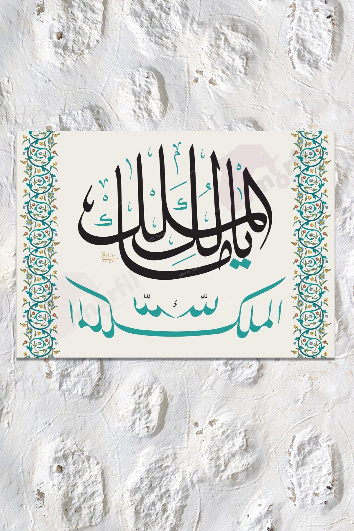 " (Ey Mülkün Sahibi! Mülk Allah’ındır) " Ya Malikel Mulk El Mülkü Lillah .; TASARIM MORFİL SANAT ATÖLYESİNE AİTTİR.; Ürünlerimizi Taklit Eden Ekran Görüntüsü İle Kalitesiz Basan Firmalardan Değil "MORFİL SANAT" tan Satınalınız.; SAĞLIĞA ZARARI OLMAYAN ÇEVRE DOSTU BOYA KULLANILMAKTADIR.; YÜKSEK ÇÖZNÜRLÜKLÜ BASKI yapılmaktadır.; Kanvas tablolar için özel üretilen baskı makinaları kullanılarak kanvas tablonuzun yüksek canlı renkler ve gerçek renk baskısı ile size ulaşması sağlanmaktadır; Özel KANVAS KUMAŞ kullanılmaktadır.
