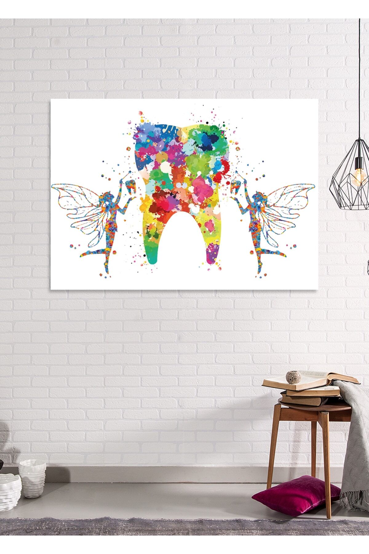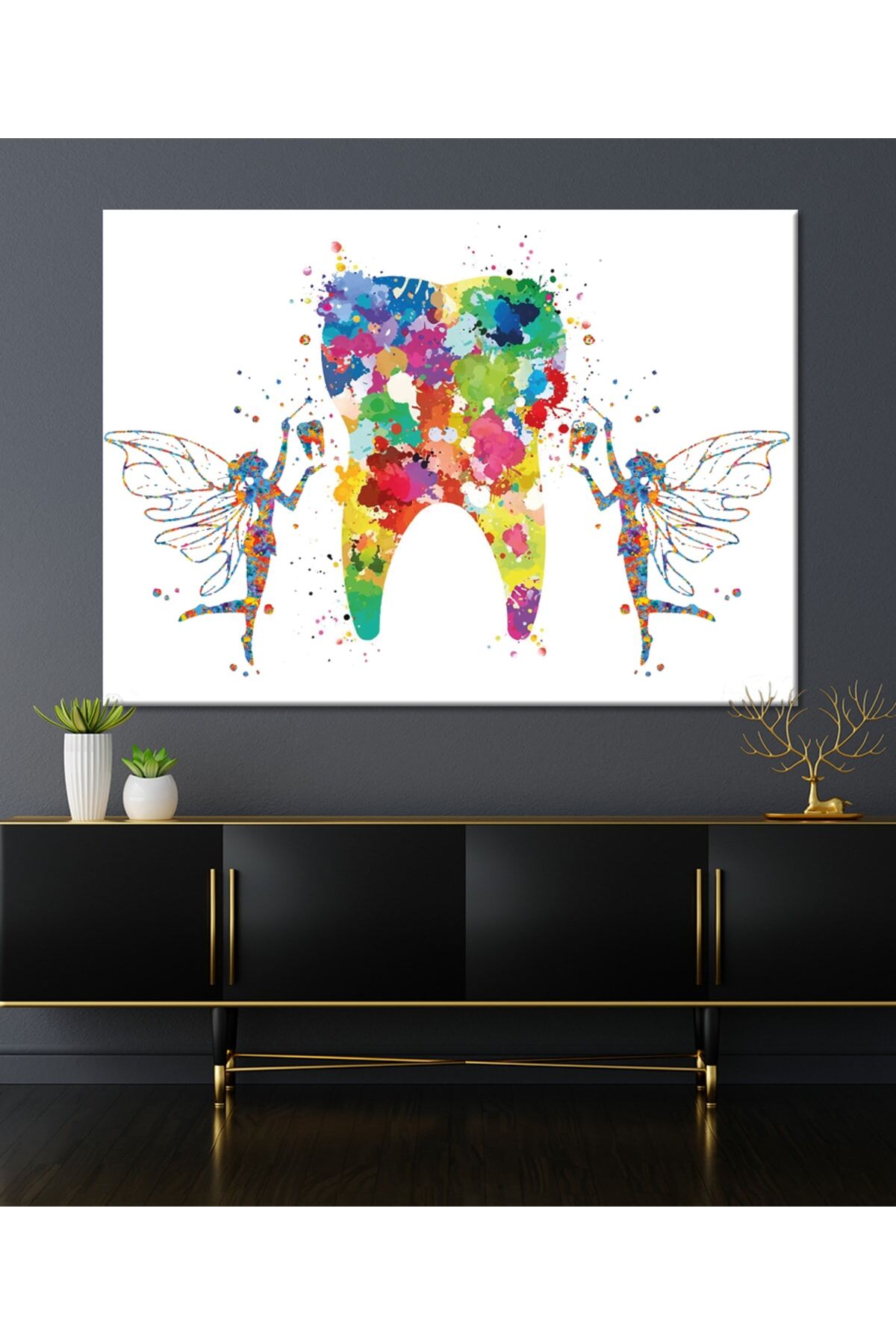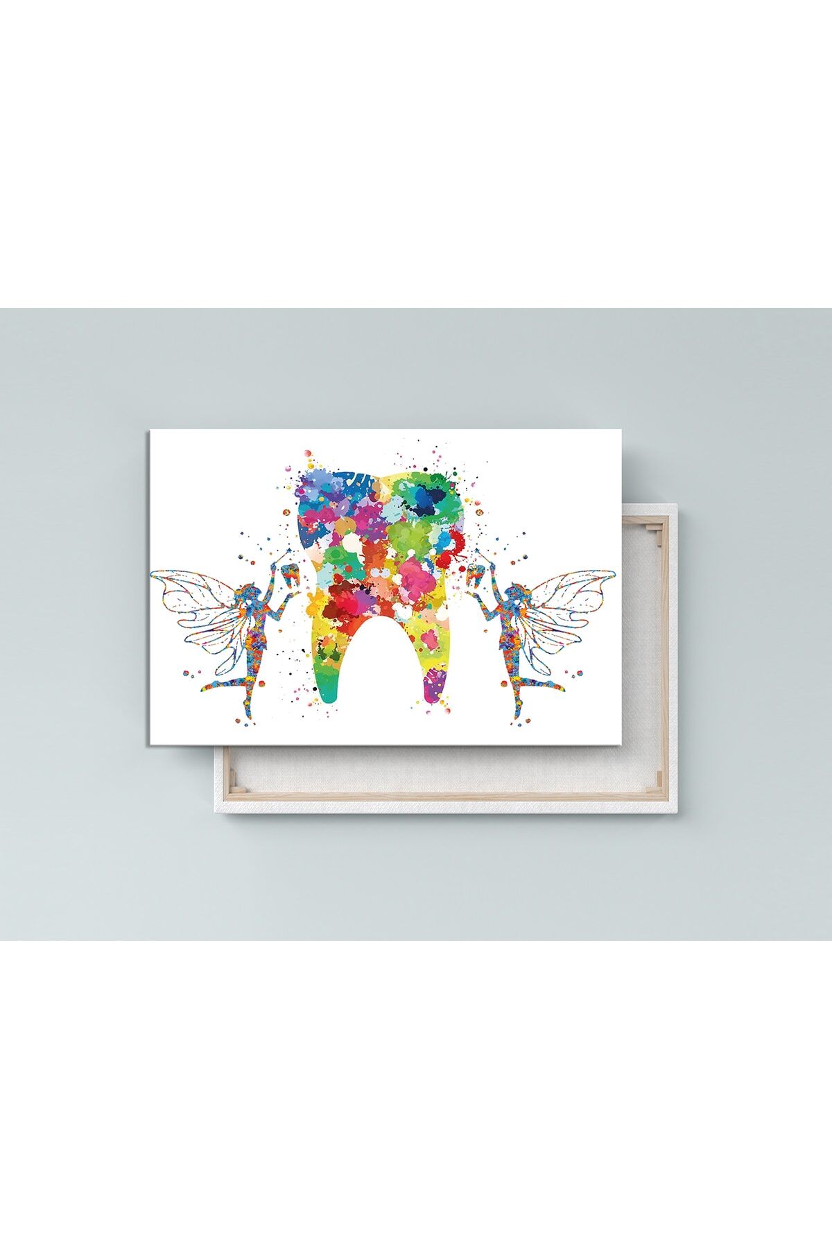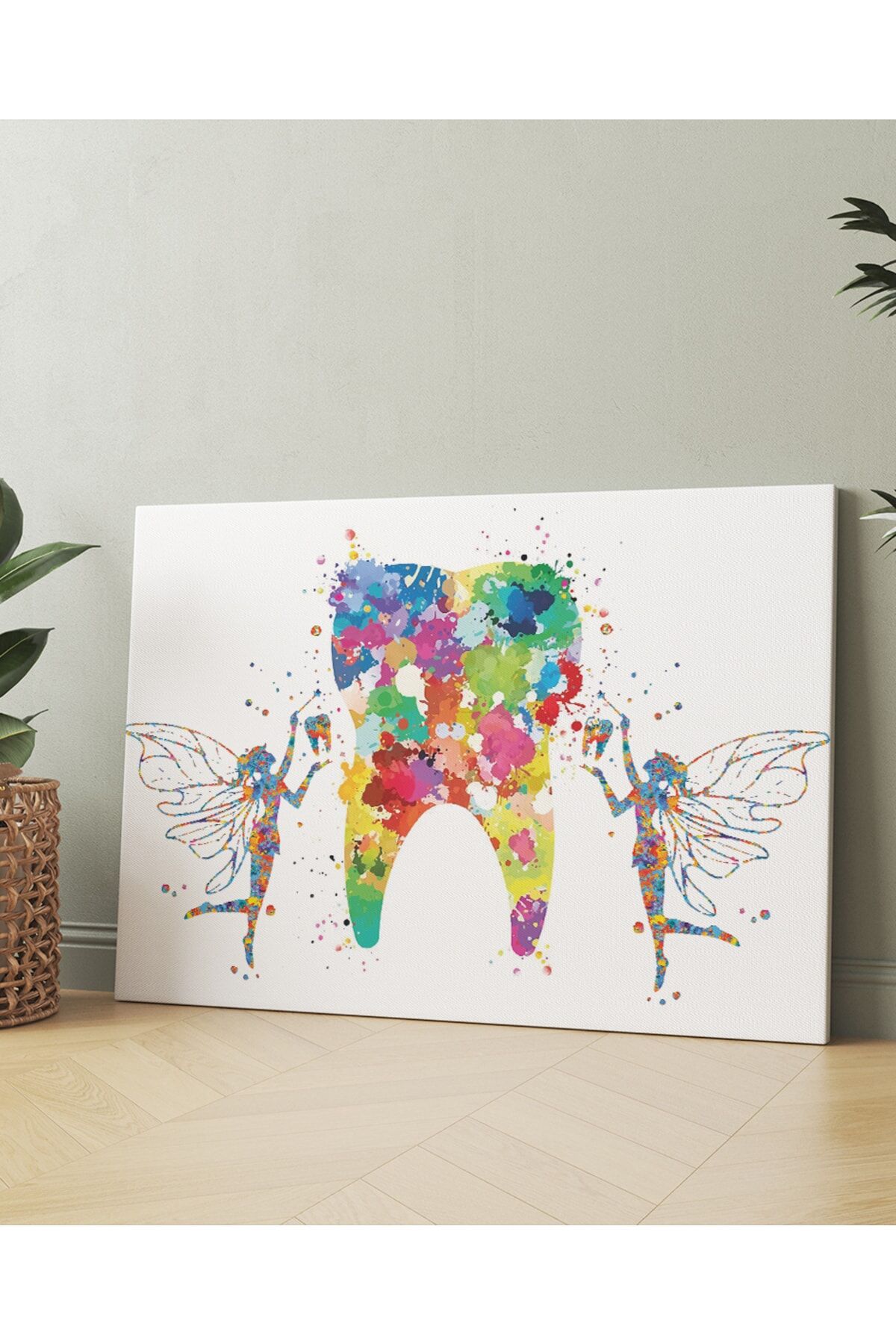 Diş Hekimlerine Doktorlara Hastanelere Özel Suluboya Efektli Diş Perisi Dekoratif Kanvas Tablo