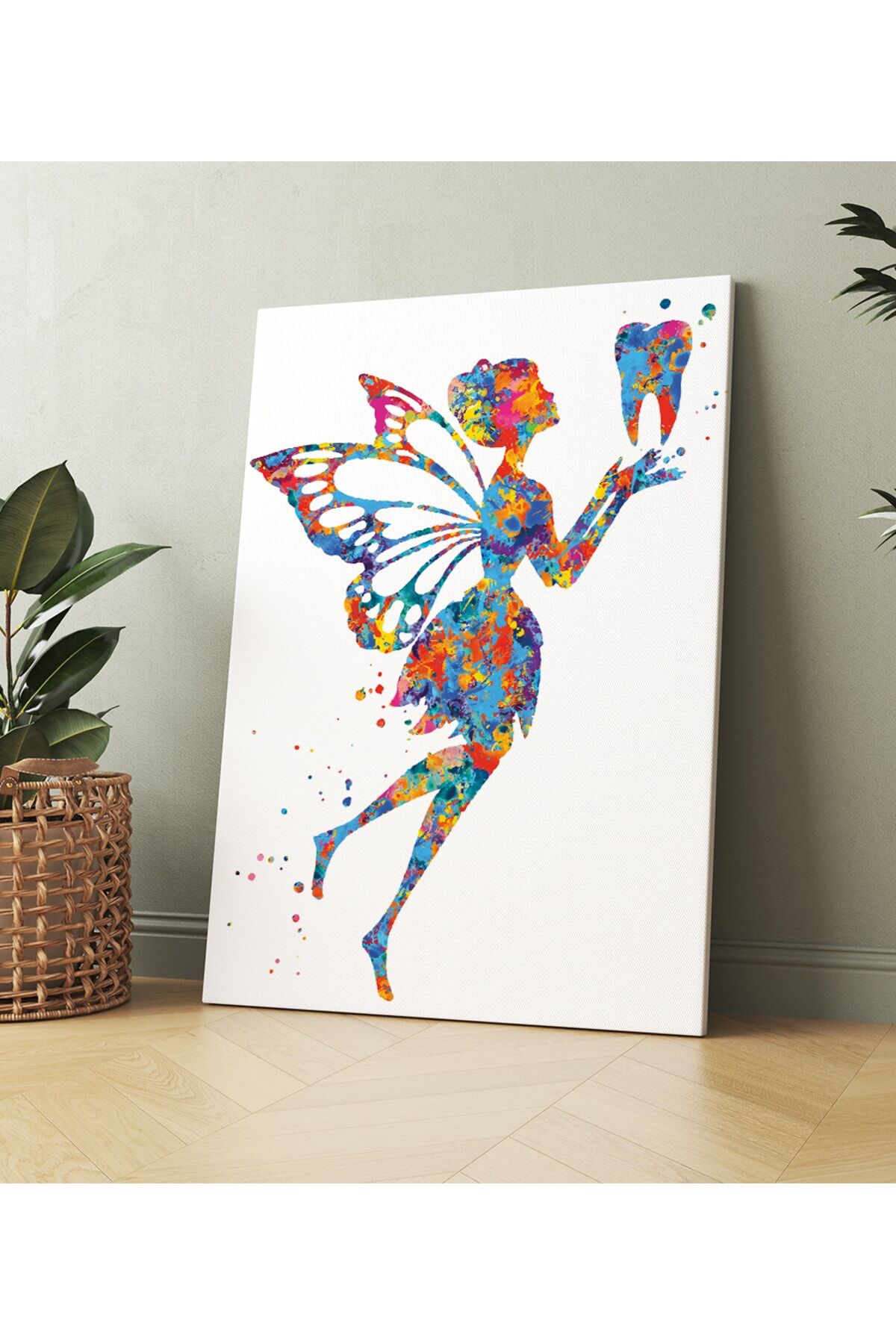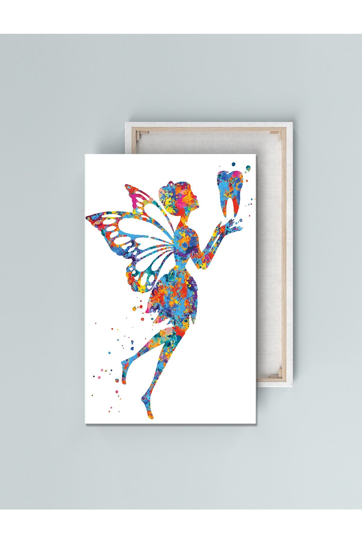 Diş Hekimlerine Hastanelere Özel Suluboya Efektli Diş Perisi Kanvas Tablo (8 Farklı Ölçü)