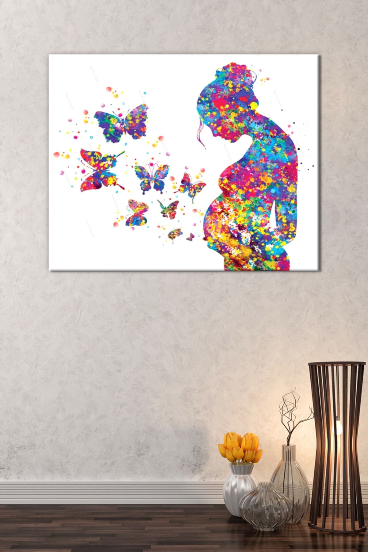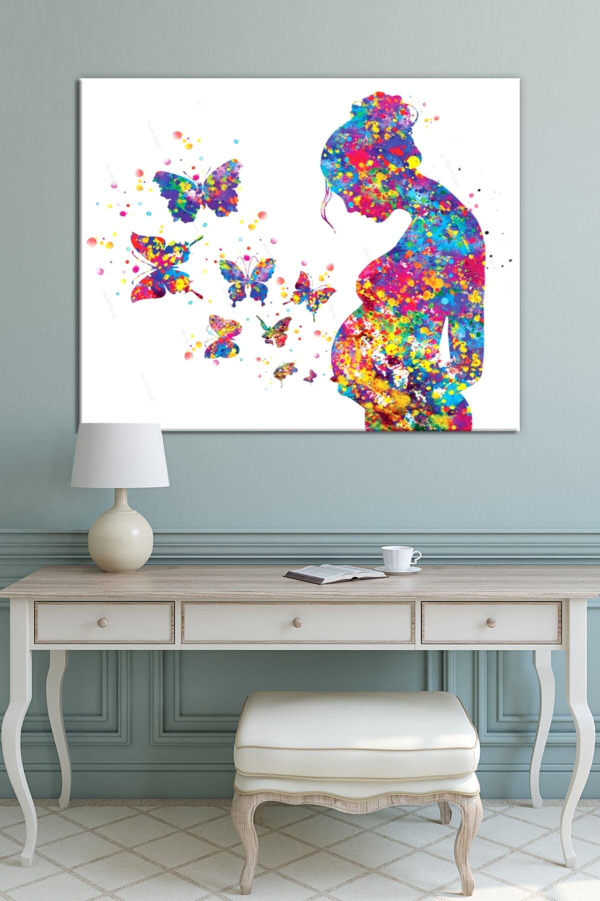 Doktorlara Doğumhanelere Hastanelere Özel Hamile Kadın Suluboya Efektli Kanvas Tablo (8 Farklı Ölçü)