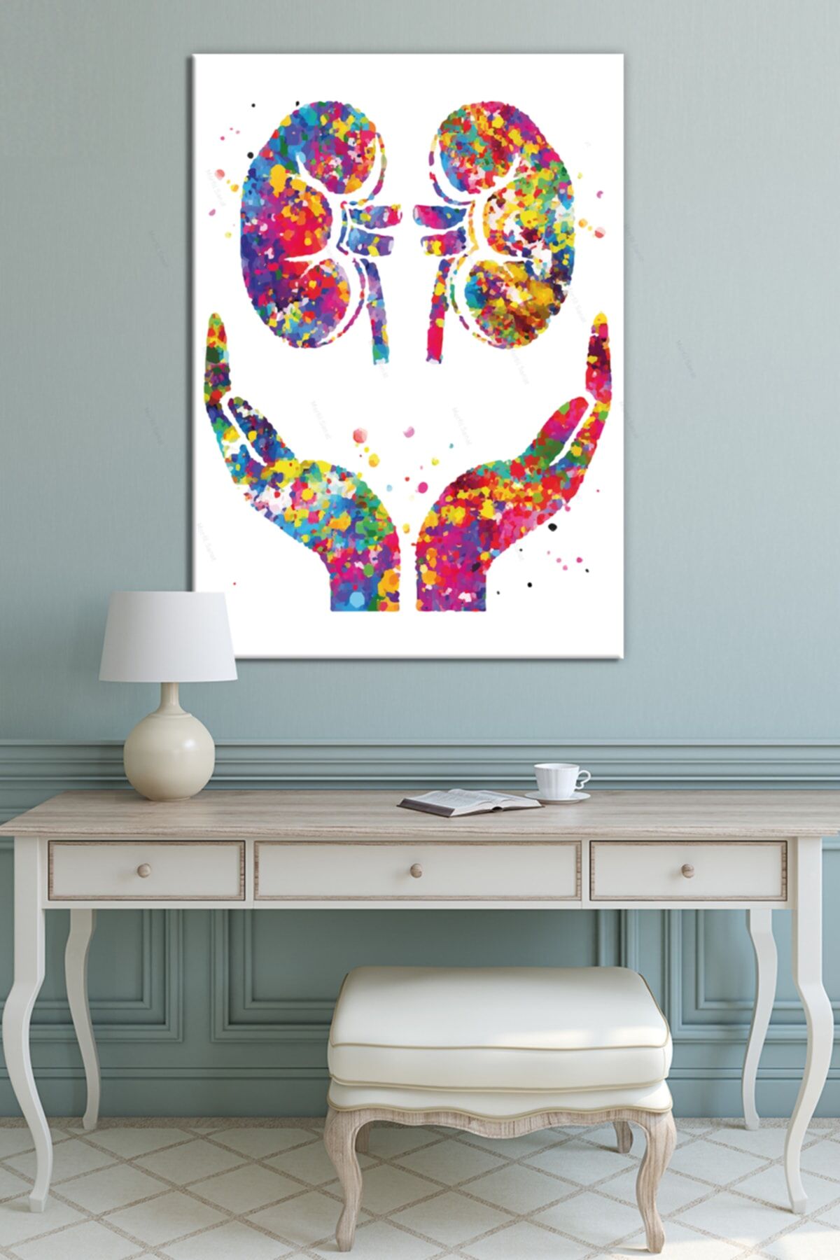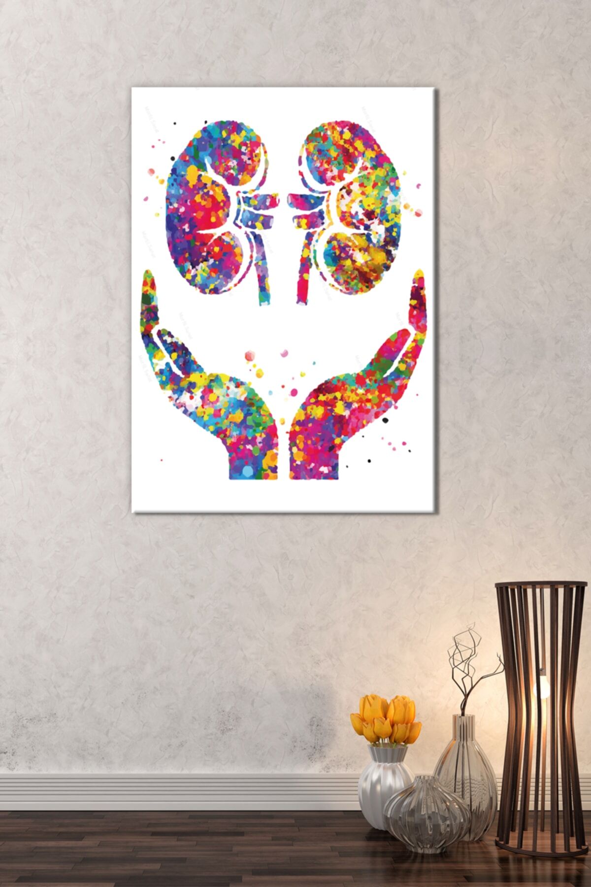 Doktorlara Hastanelere Özel Böbrek Sağlık Suluboya Efektli Dekoratif Kanvas Tablo (8 Farklı Ölçü)