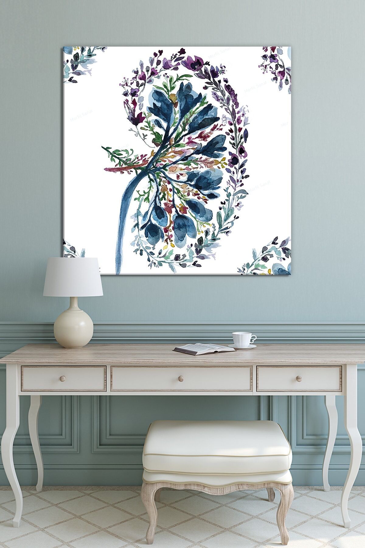 Doktorlara Hastanelere Özel Suluboya Efektli Dalak Ve Çiçekler Kanvas Tablo (9 Farklı Ölçü)