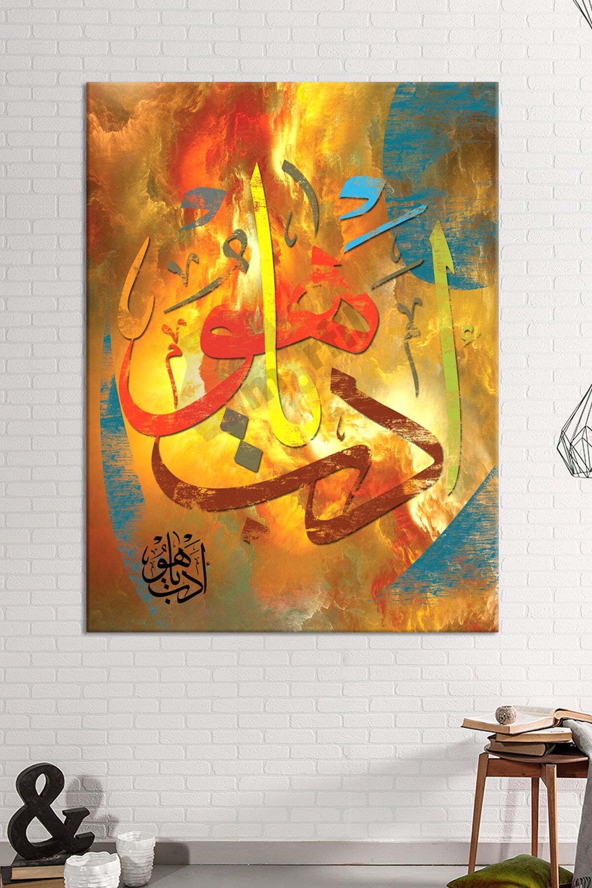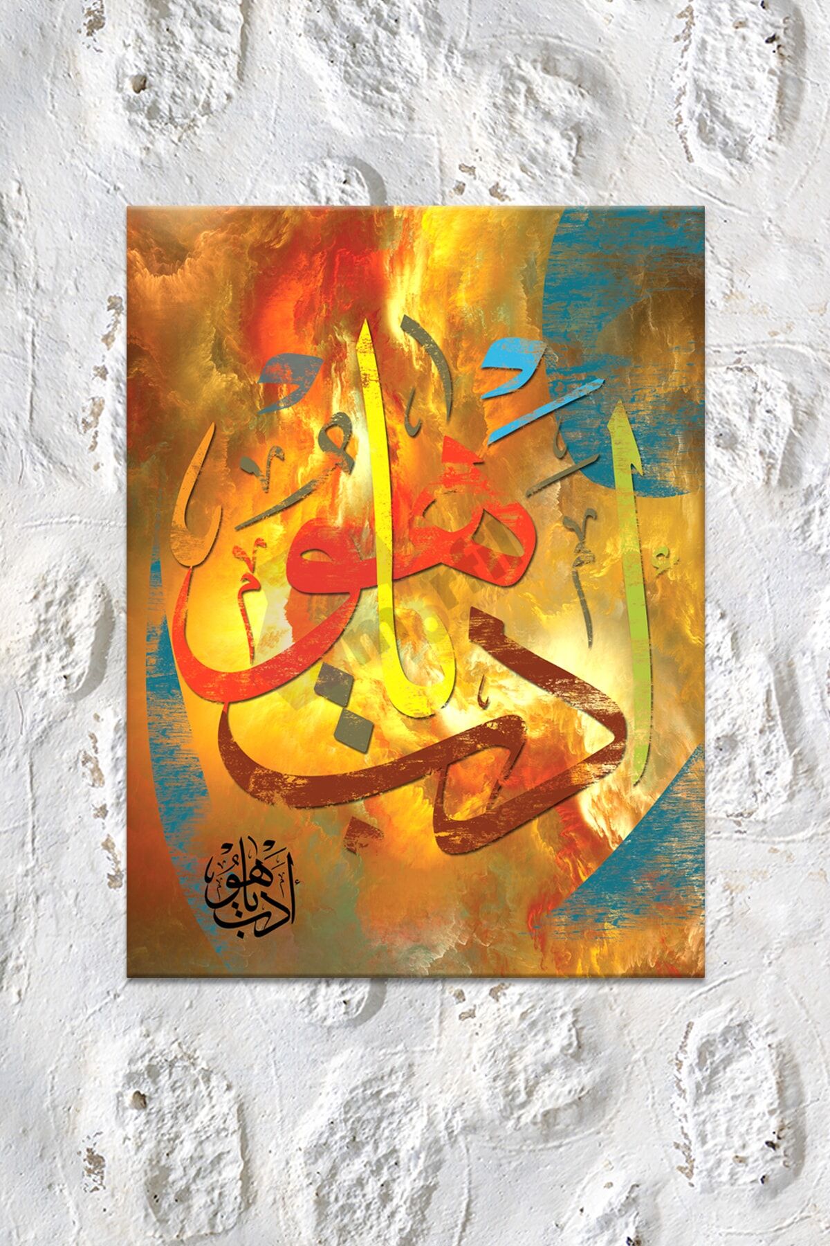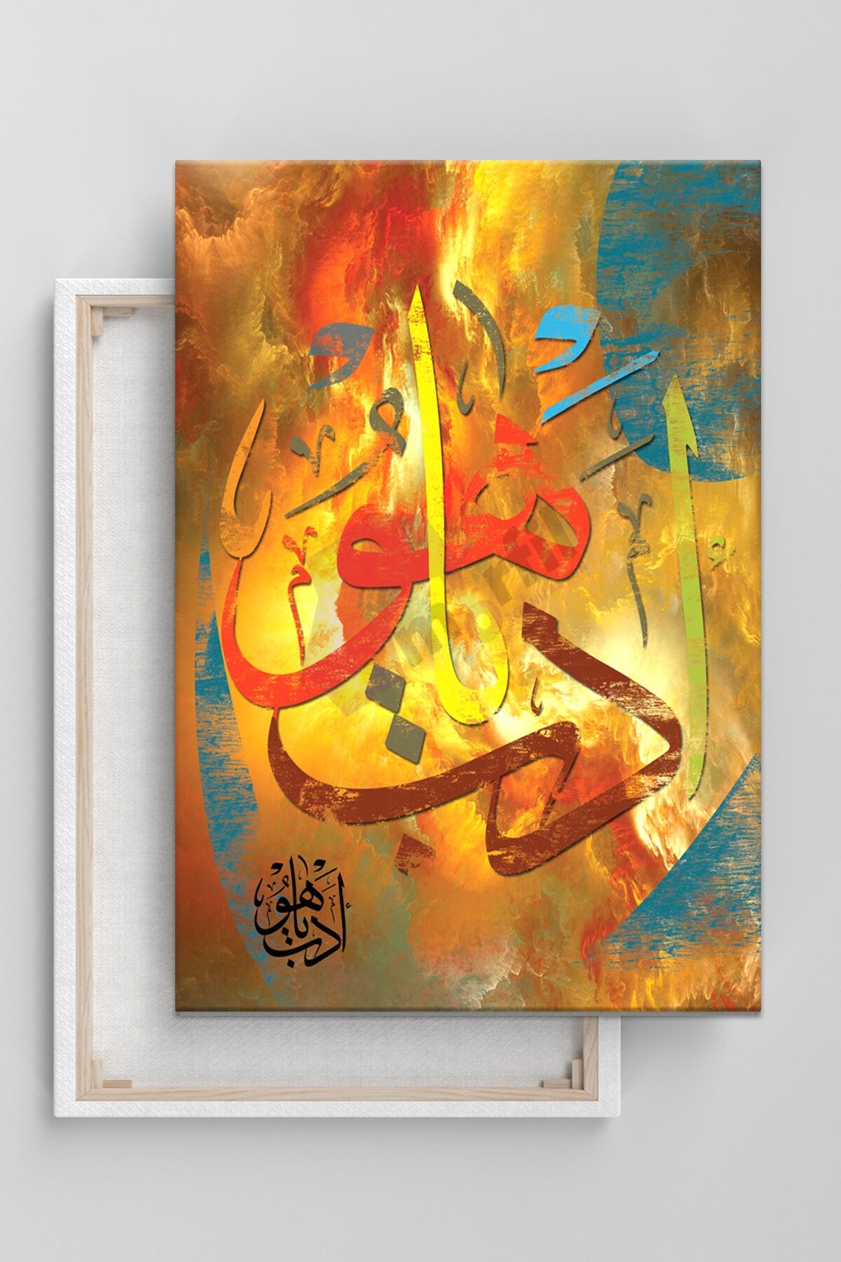 Edeb Ya Hu Islami Dini Hat Kanvas Tablo 7 Farklı Ölçü
