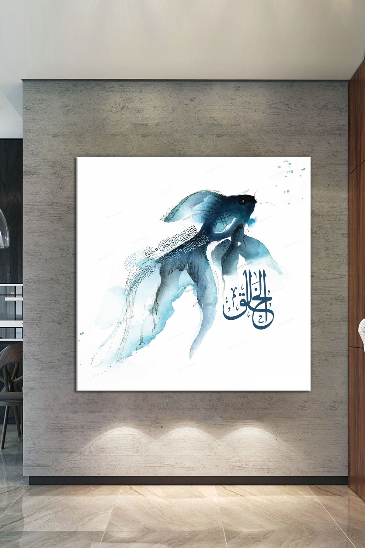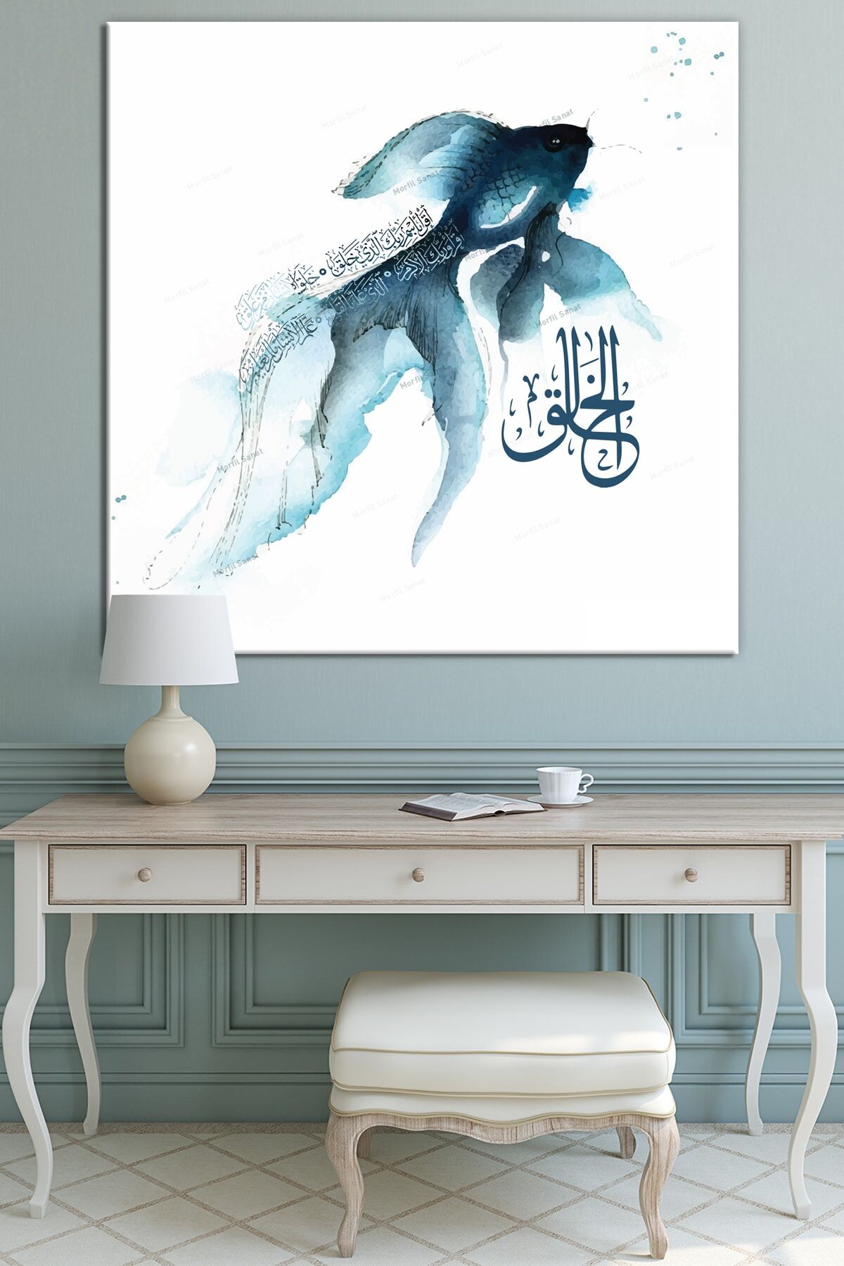 El Halık Allah (cc) Ismi Esması - Alak Sur. 1-5 Ayeti Islami Dini Hat Kanvas Tablo