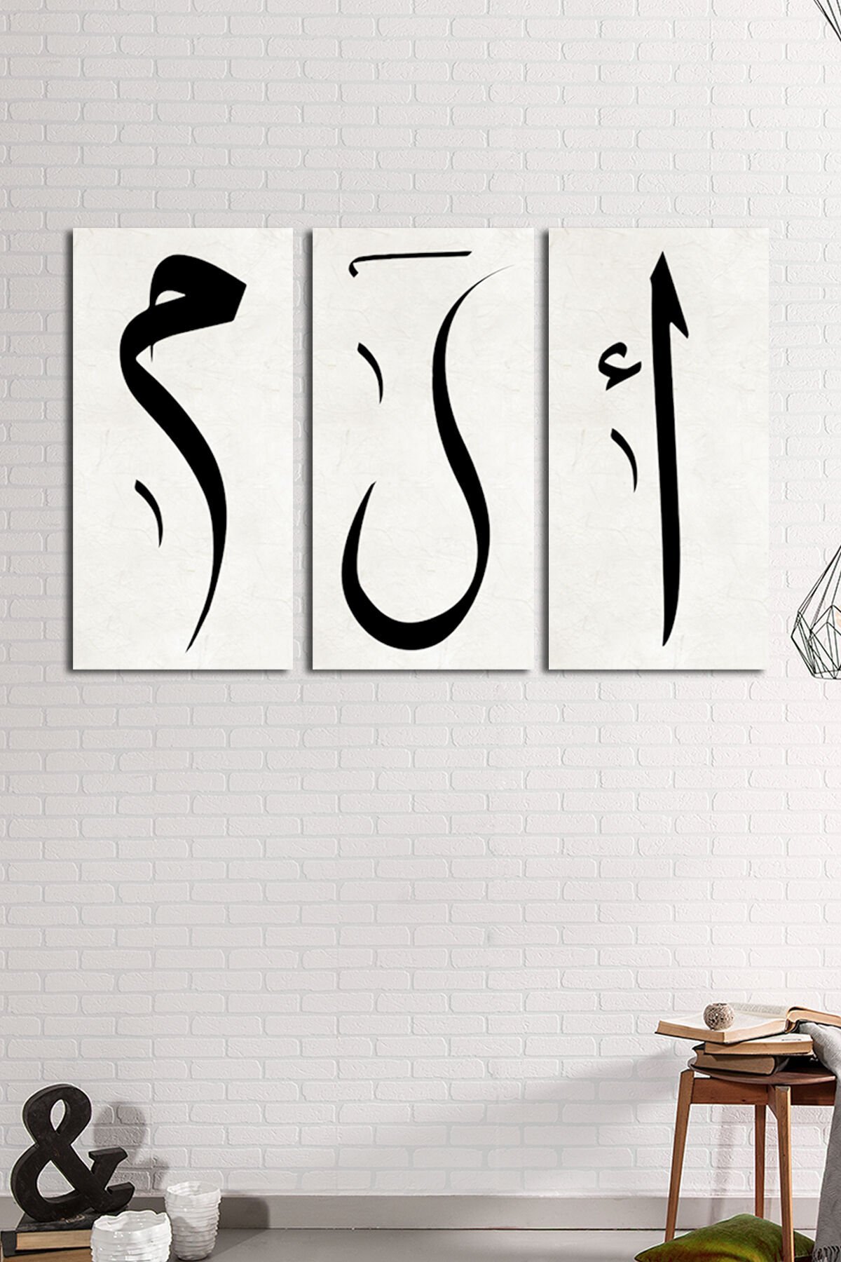Elif Lam Mim İslami Dini Hat Kanvas Tablo (ölçüler 1 Adedin Ölçüsüdür Fiyat 3 Tablo Fiyatıdır)