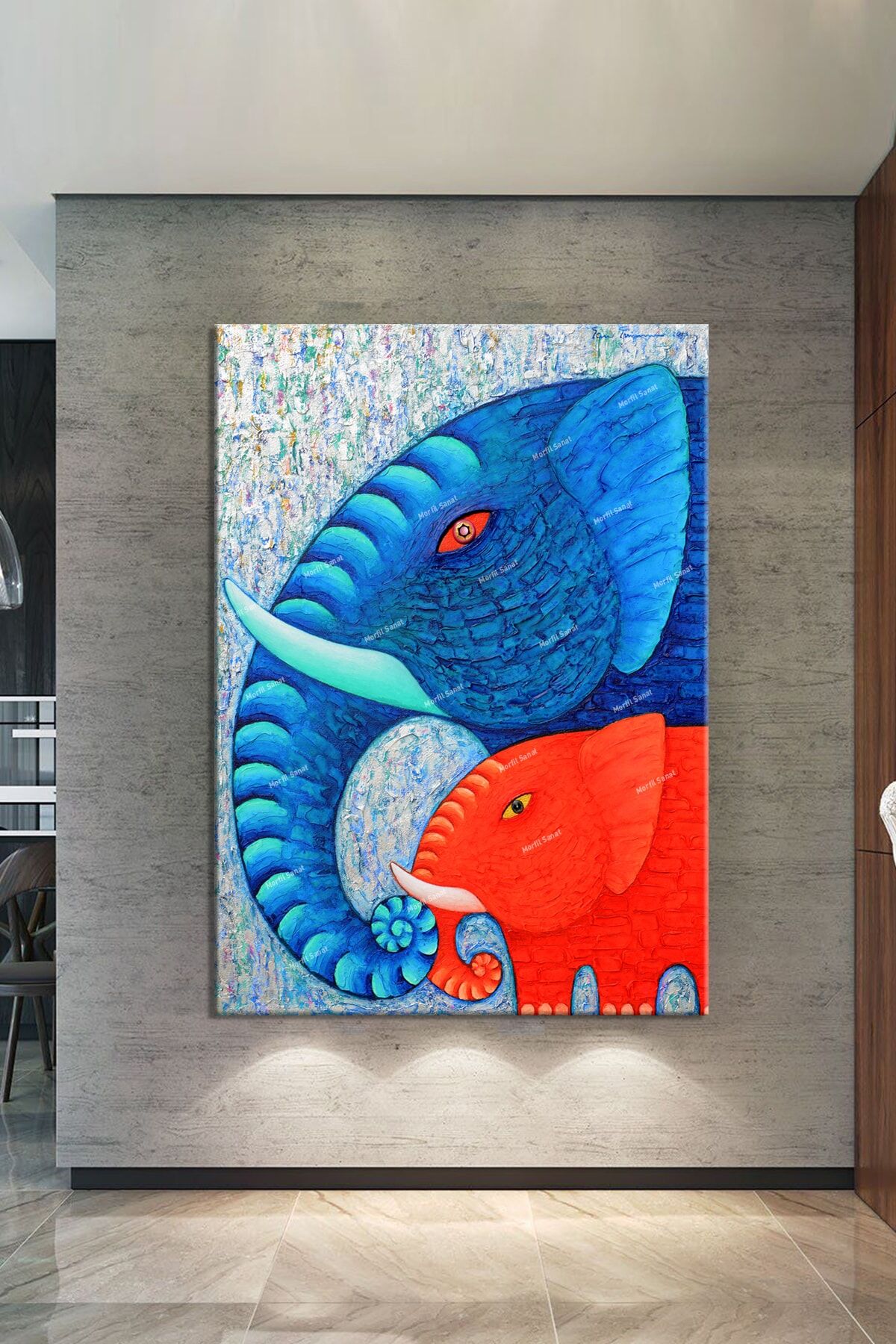 Fil Ve Yavrusu Muhteşem Kalitede Dekoratif Kanvas Tablo
