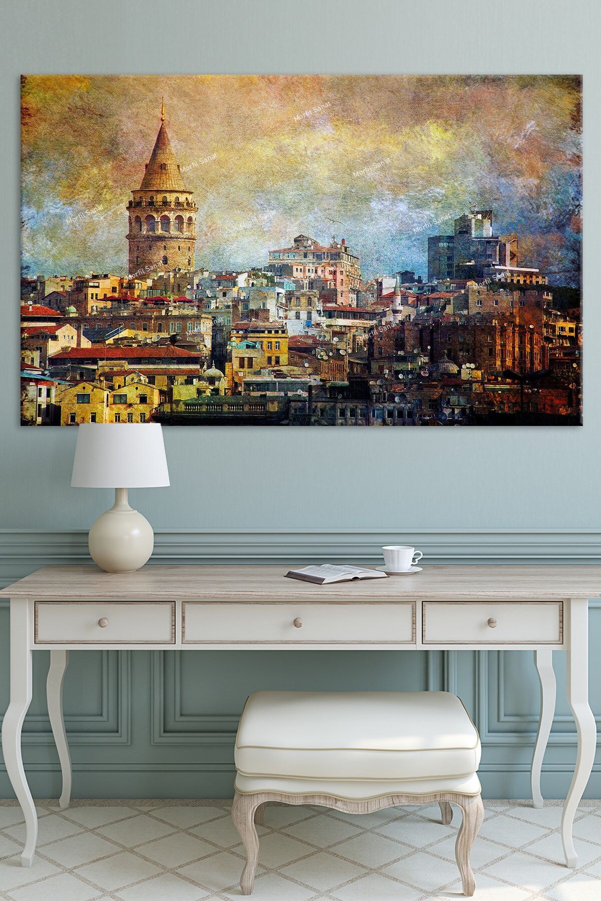 Galata Kulesi Istabnbul Eskitme Vintage Kanvas Tablo