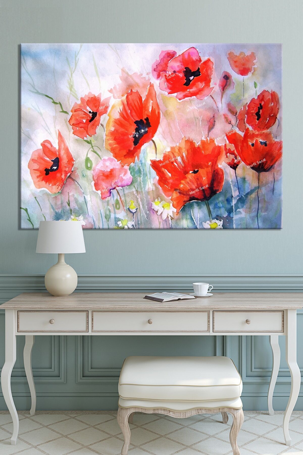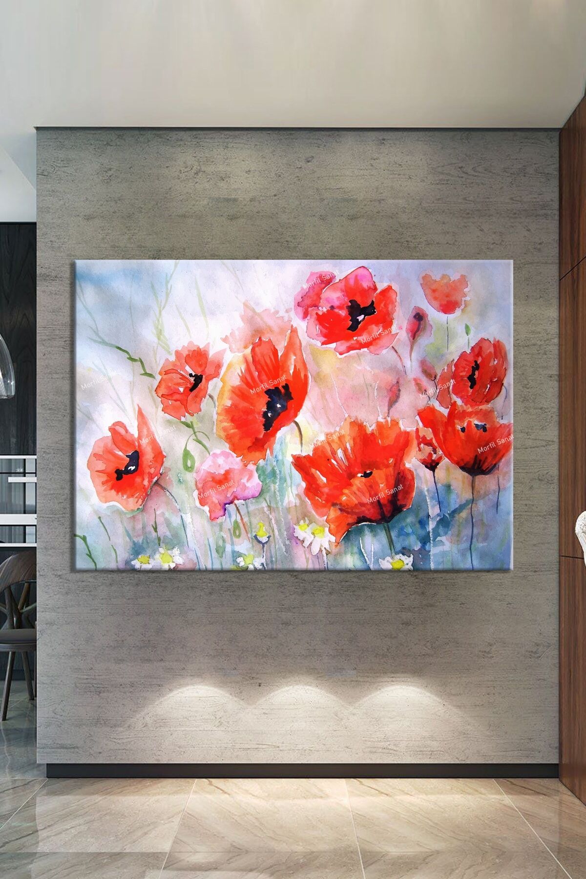 Gelincik Çiçekleri Sulu Boya Efektli Kanvas Tablo