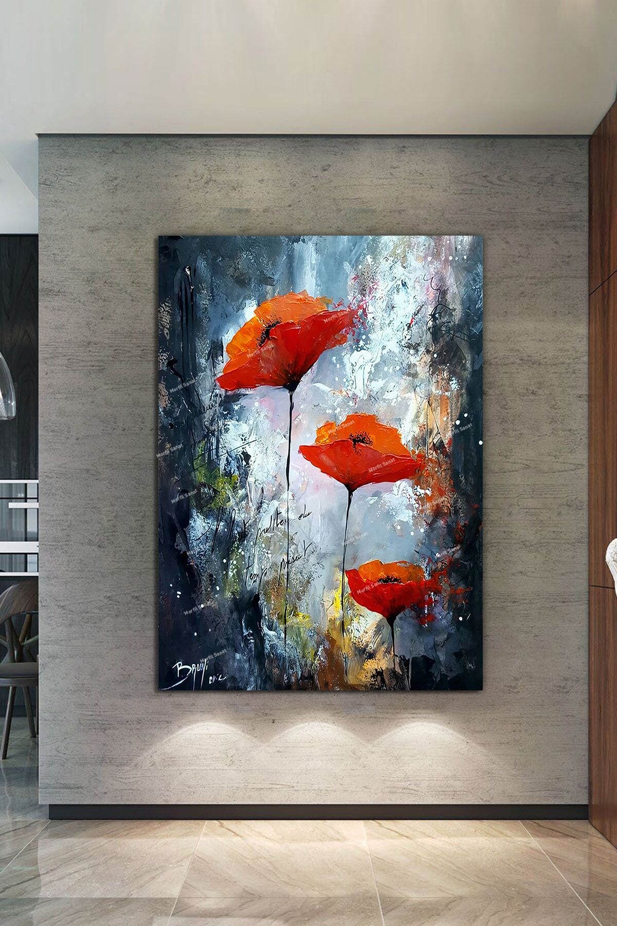 Gelincik Yağlıboya Görünümlü Dekoratif Sanatsal Kanvas Tablo
