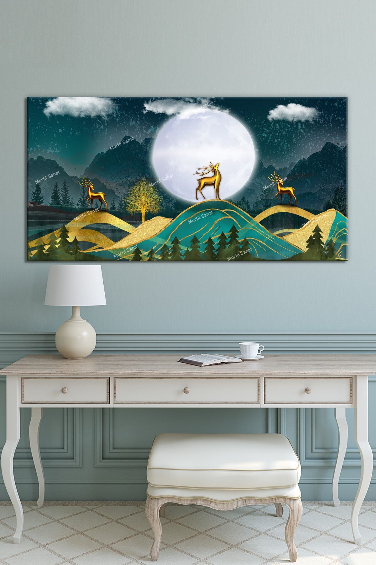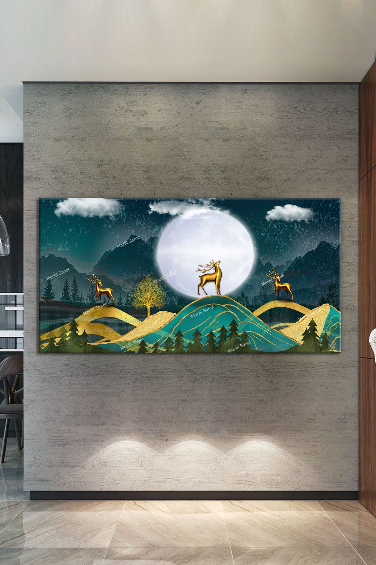Geyikli Gece Sanatsal Dekoratif Kanvas Tablo (7 Farklı Ölçü9