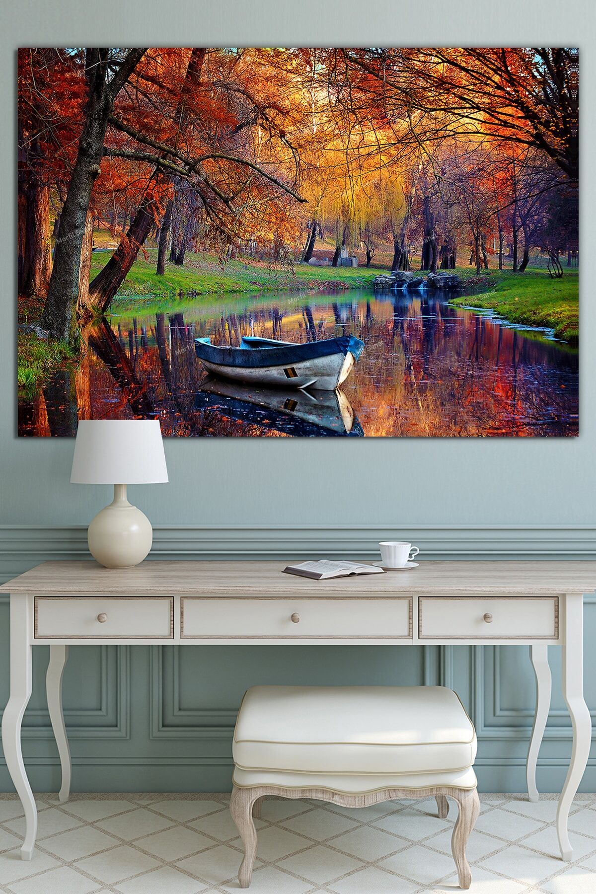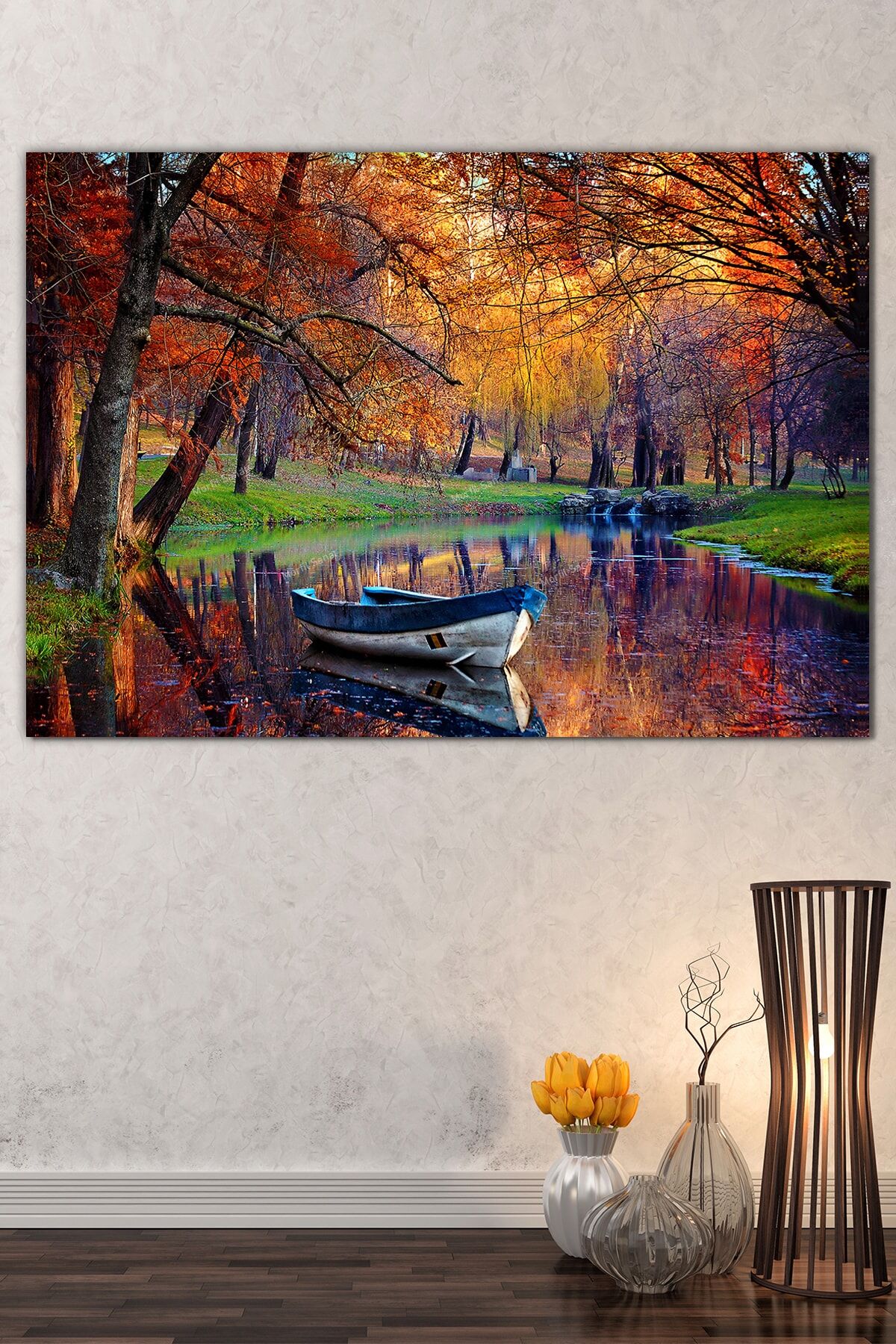 Göl Kayık Sonbahar Orman Tabiat Doğa Kanvas Tablo
