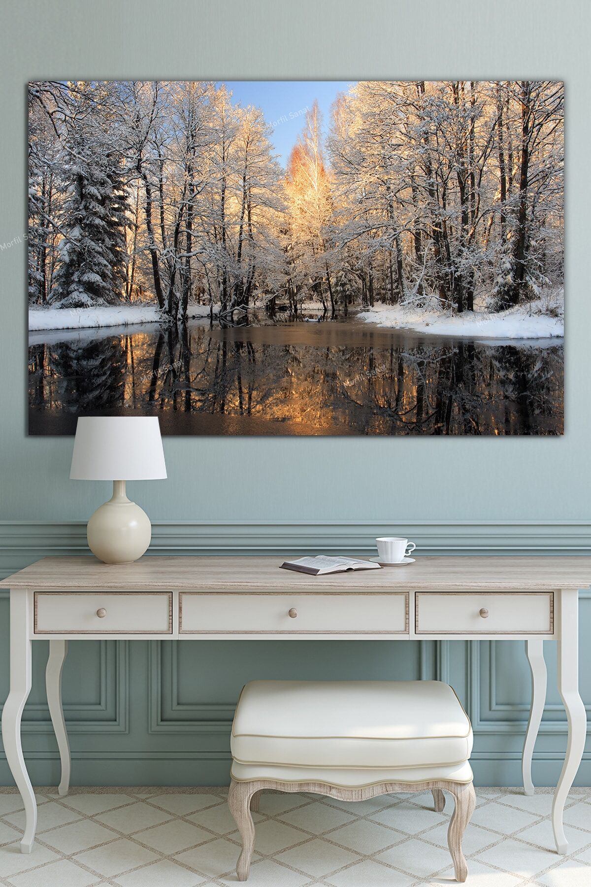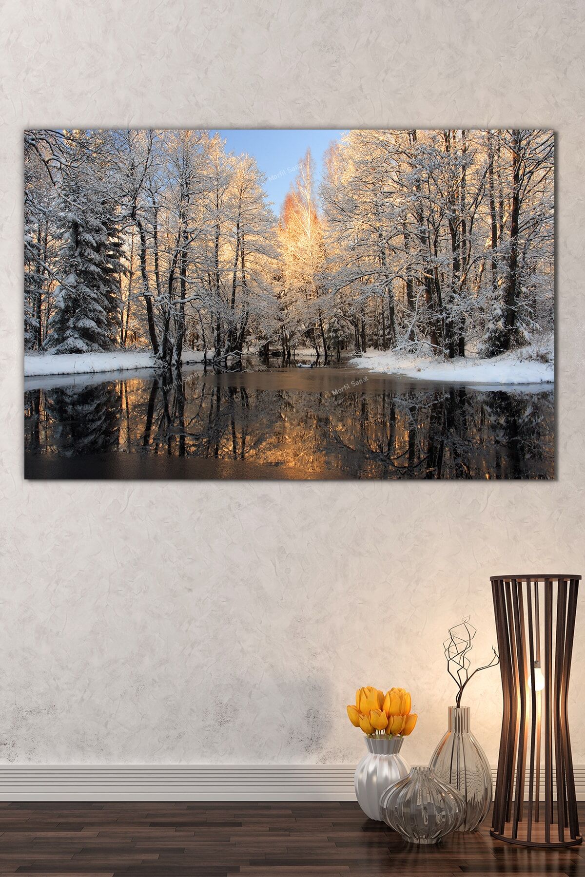 Göl Orman Kar Doğa Manzara Kanvas Tablo (8 Farklı Ölçü)