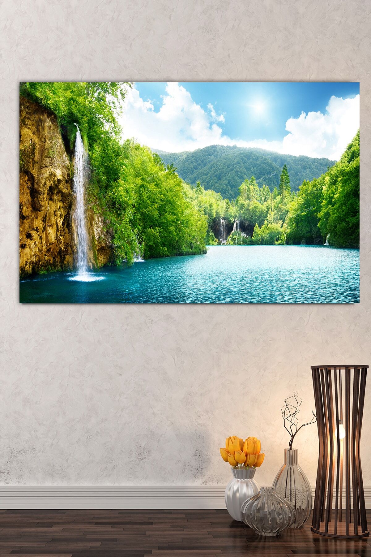 Göl Orman Şelale Doğa Tabiat Kanvas Tablo