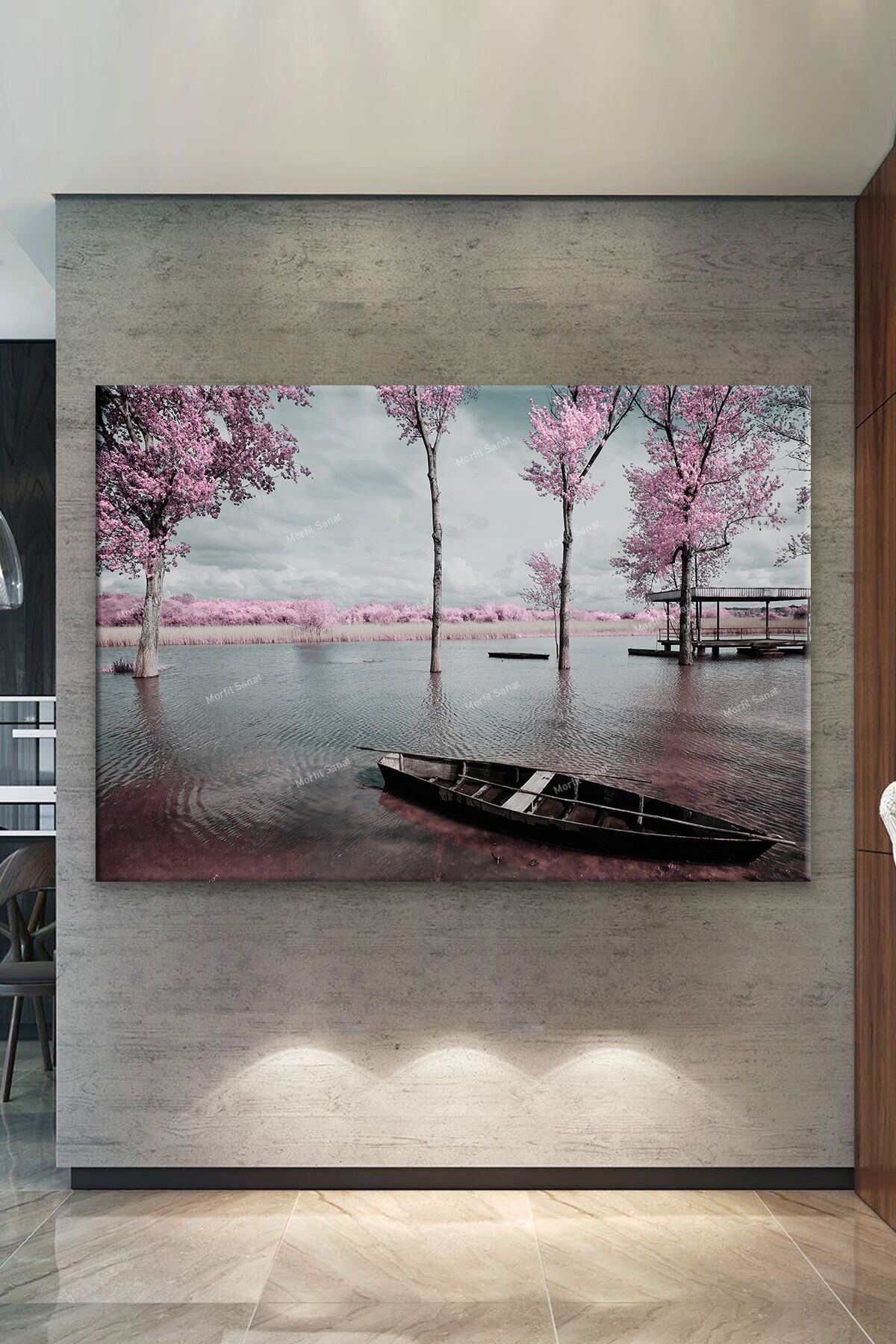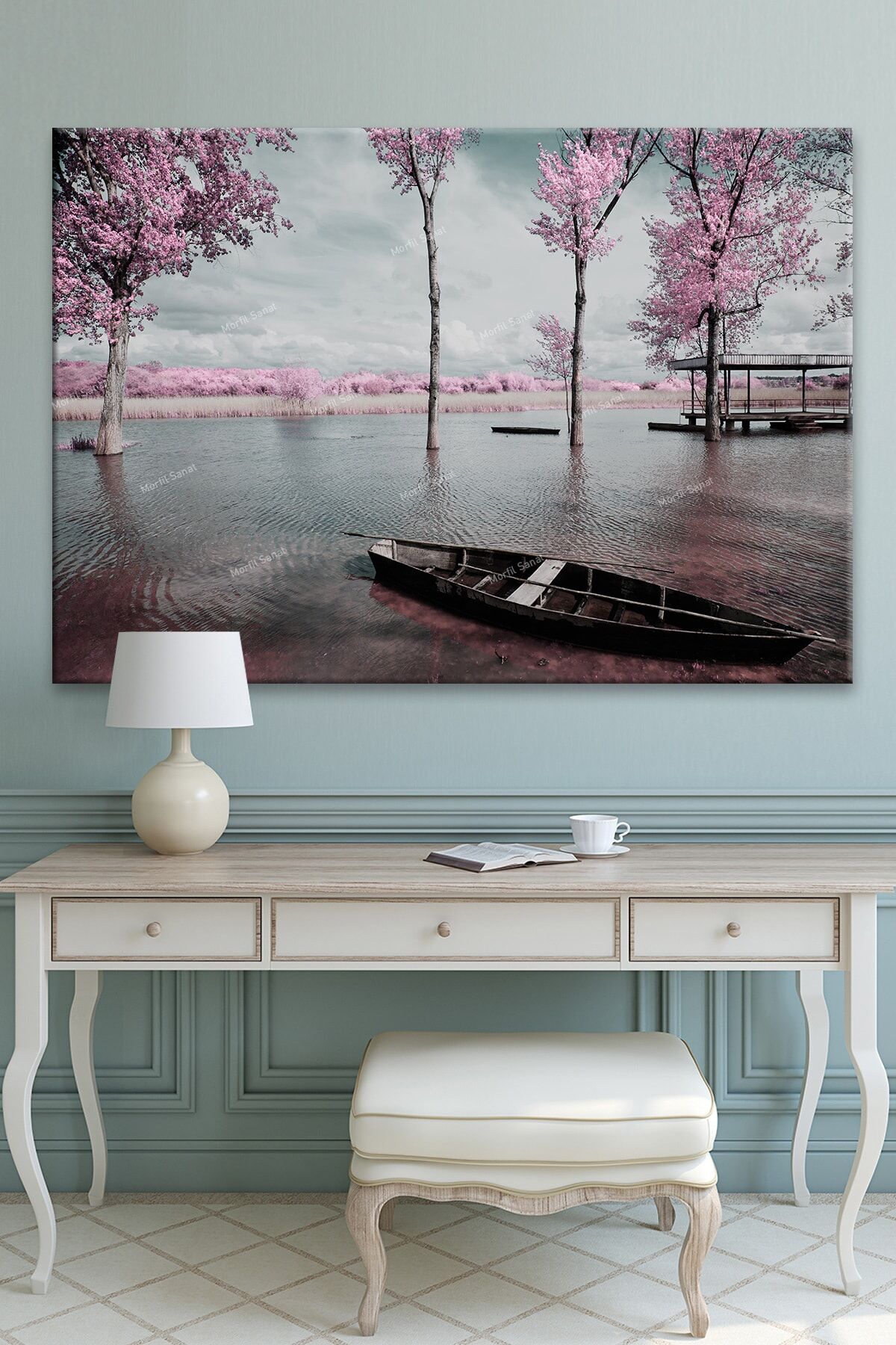 Göl Sandal Sakura Ağaçları Doğa Tabiat Manzara Kanvas Tablo