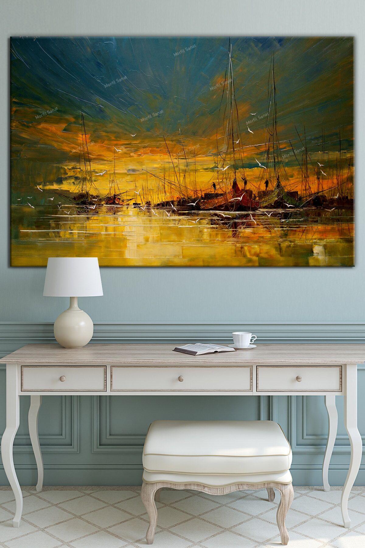 Günbatımı Ve Yelkenliler Yağlıboya Efektli Kanvas Tablo (8 Farklı Ölçü)