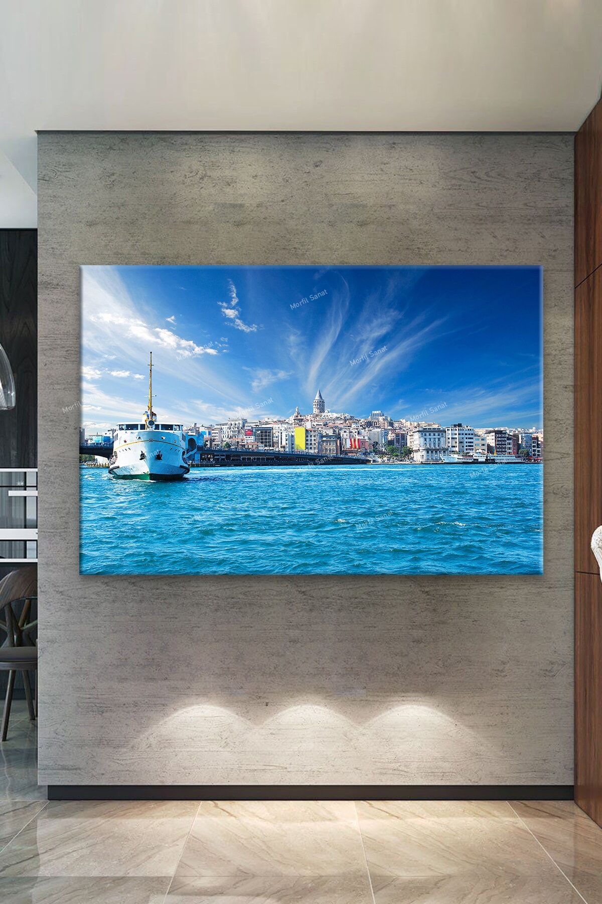 Istanbul Gemi Galata Kulesi Köprü Manzara Şehir Kanvas Tablo