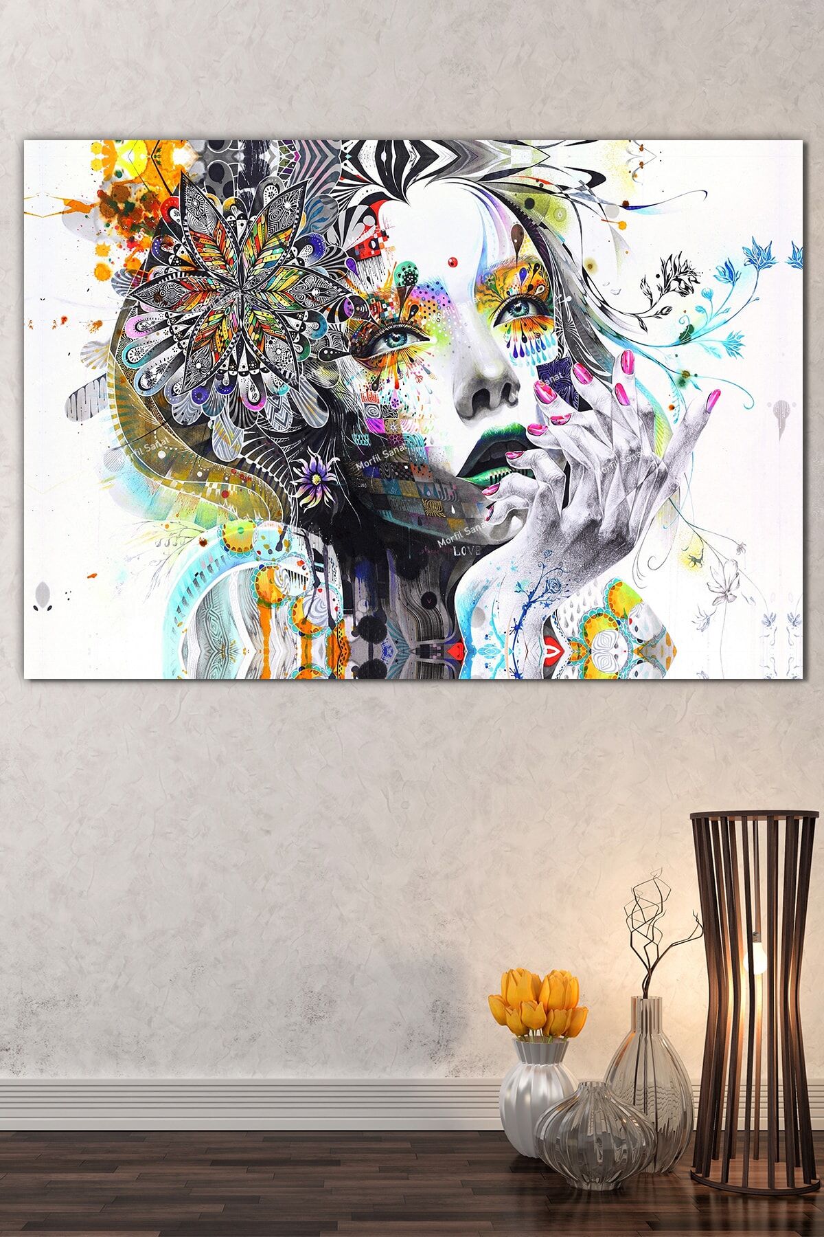Kadın Çiçek Sevgi Egzotik Kanvas Tablo