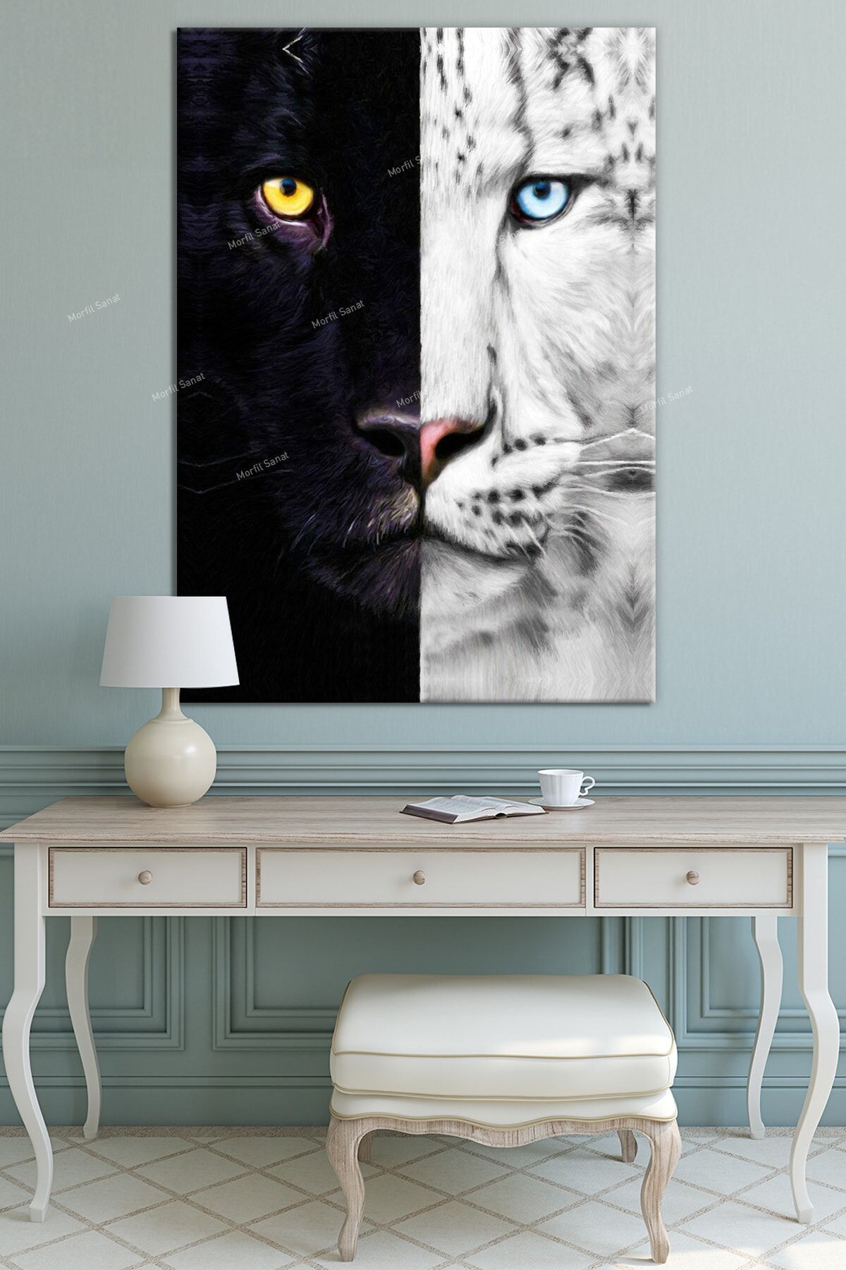 Kaplan Siyah Beyaz Kaplan Dekoratif Kanvas Tablo