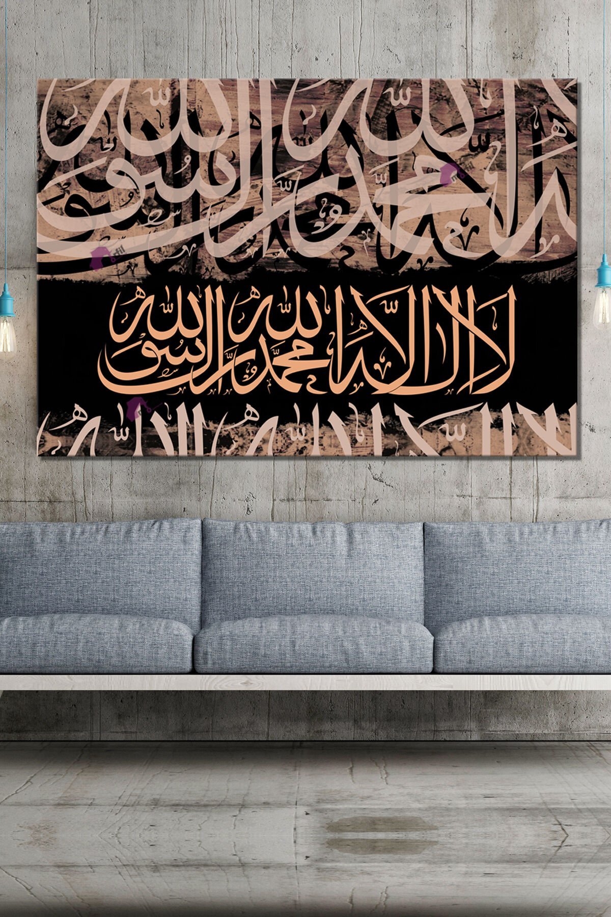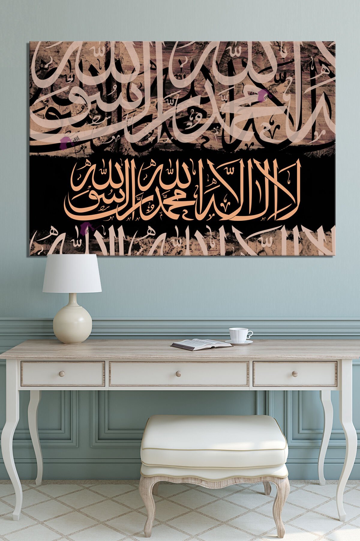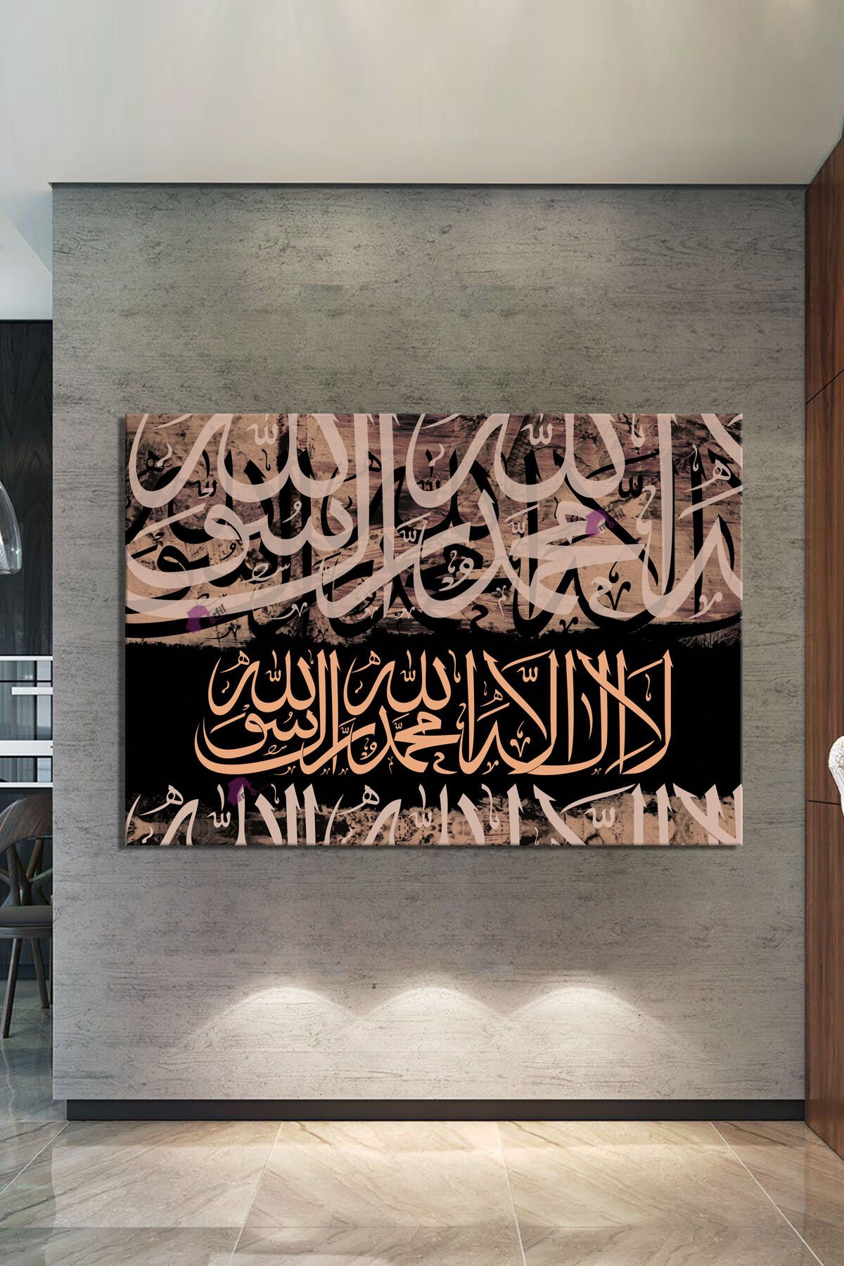 Kelimei Tevhid İslami Dini Hat Sanatsal Kanvas Tablo (8 Farklı Ölçü)