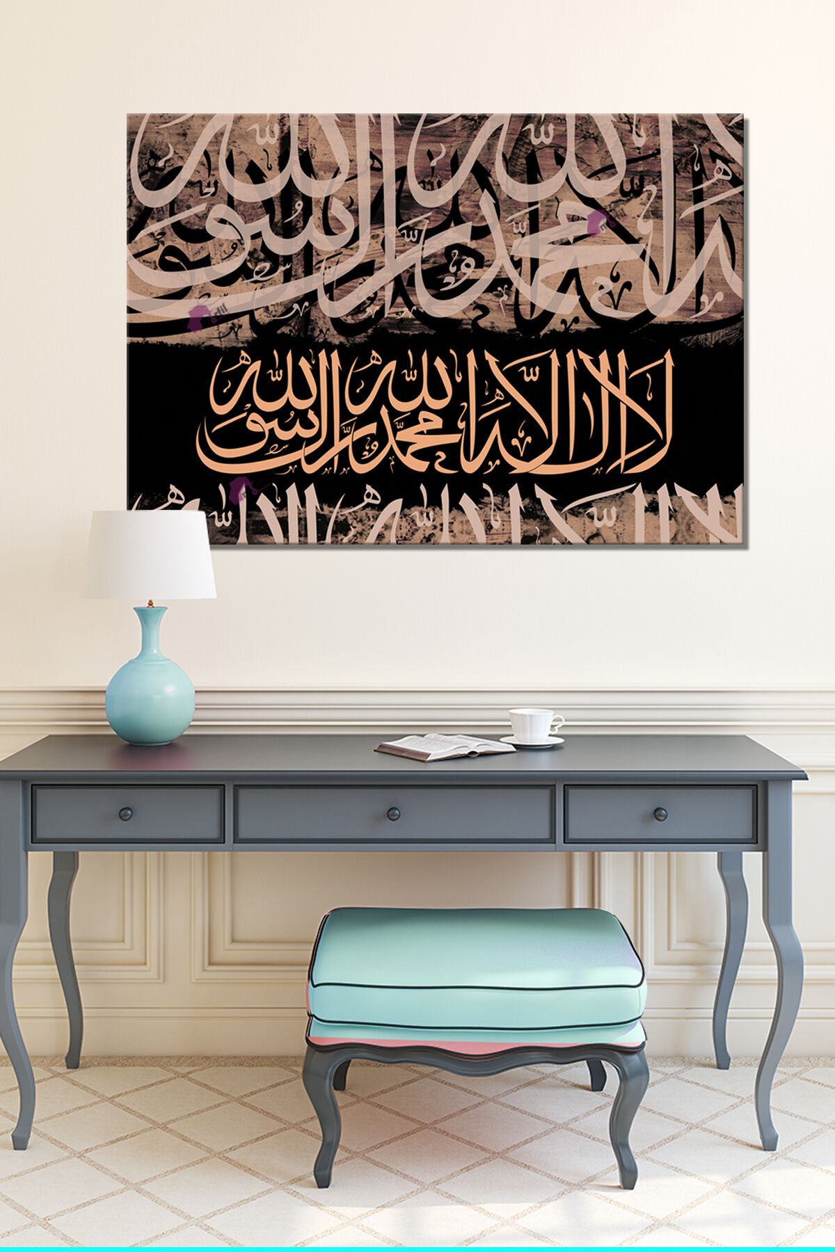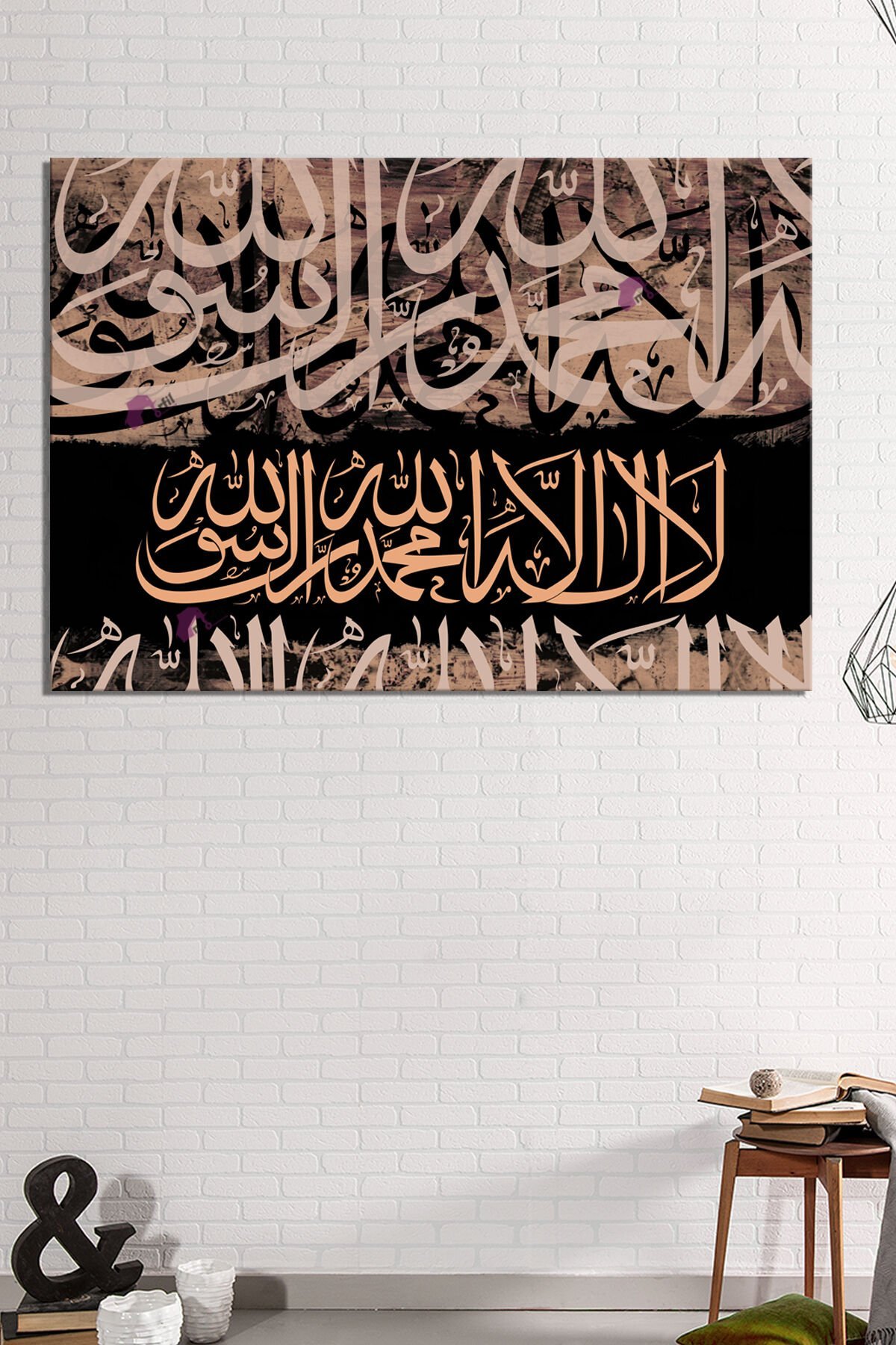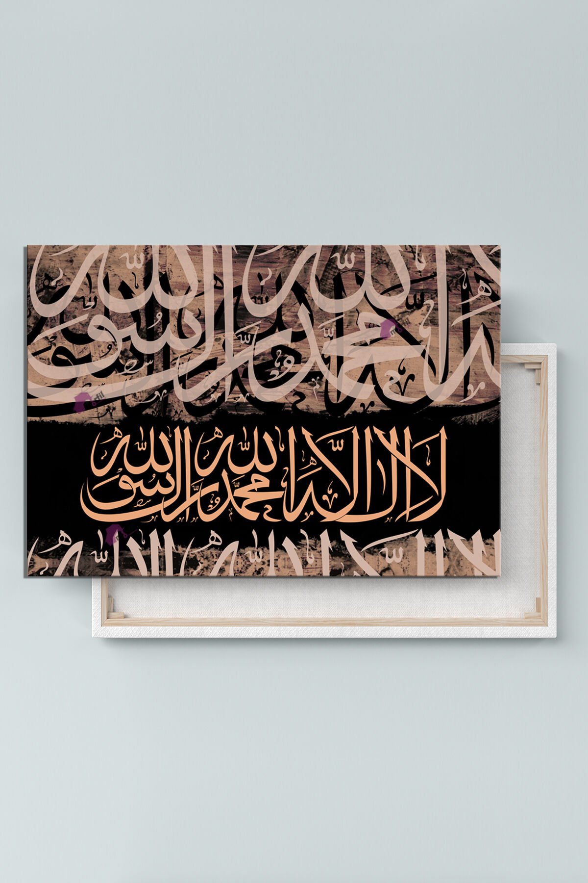Kelimei Tevhid İslami Dini Hat Sanatsal Kanvas Tablo (8 Farklı Ölçü)
