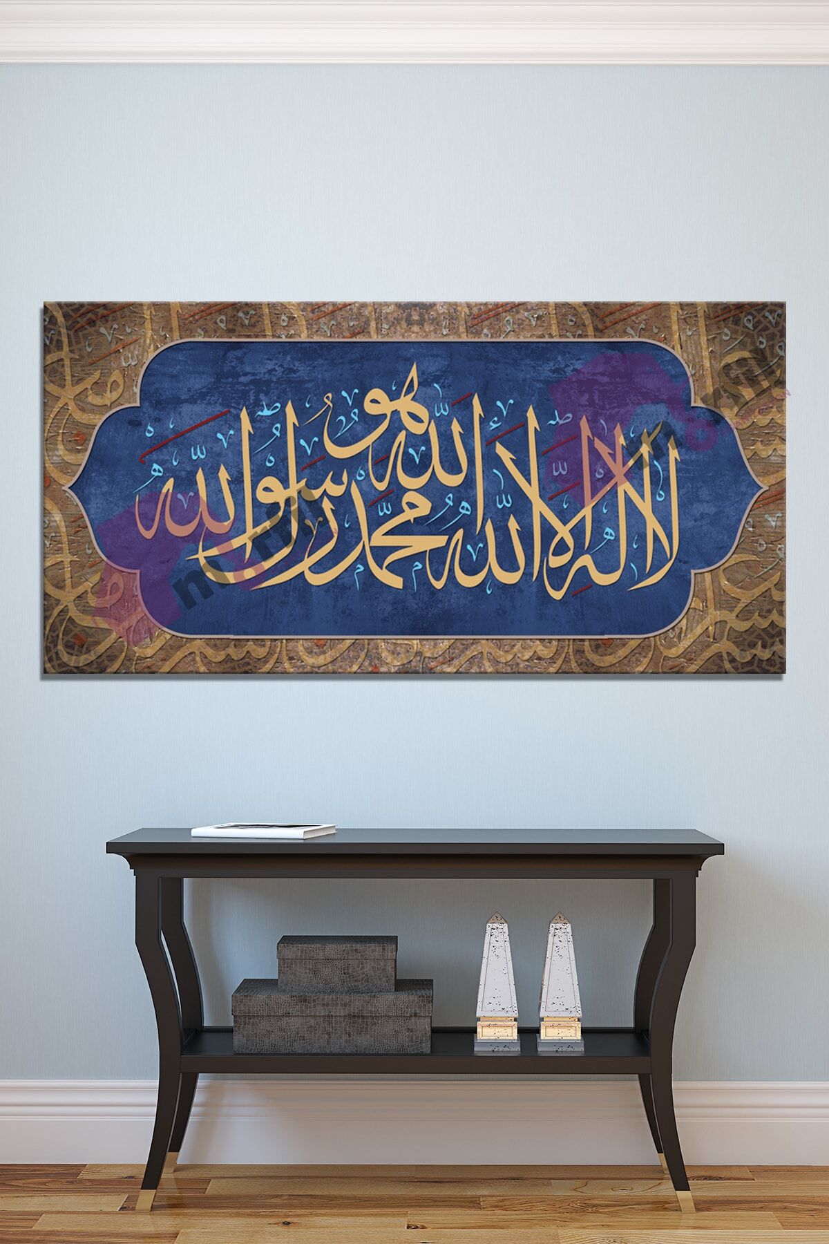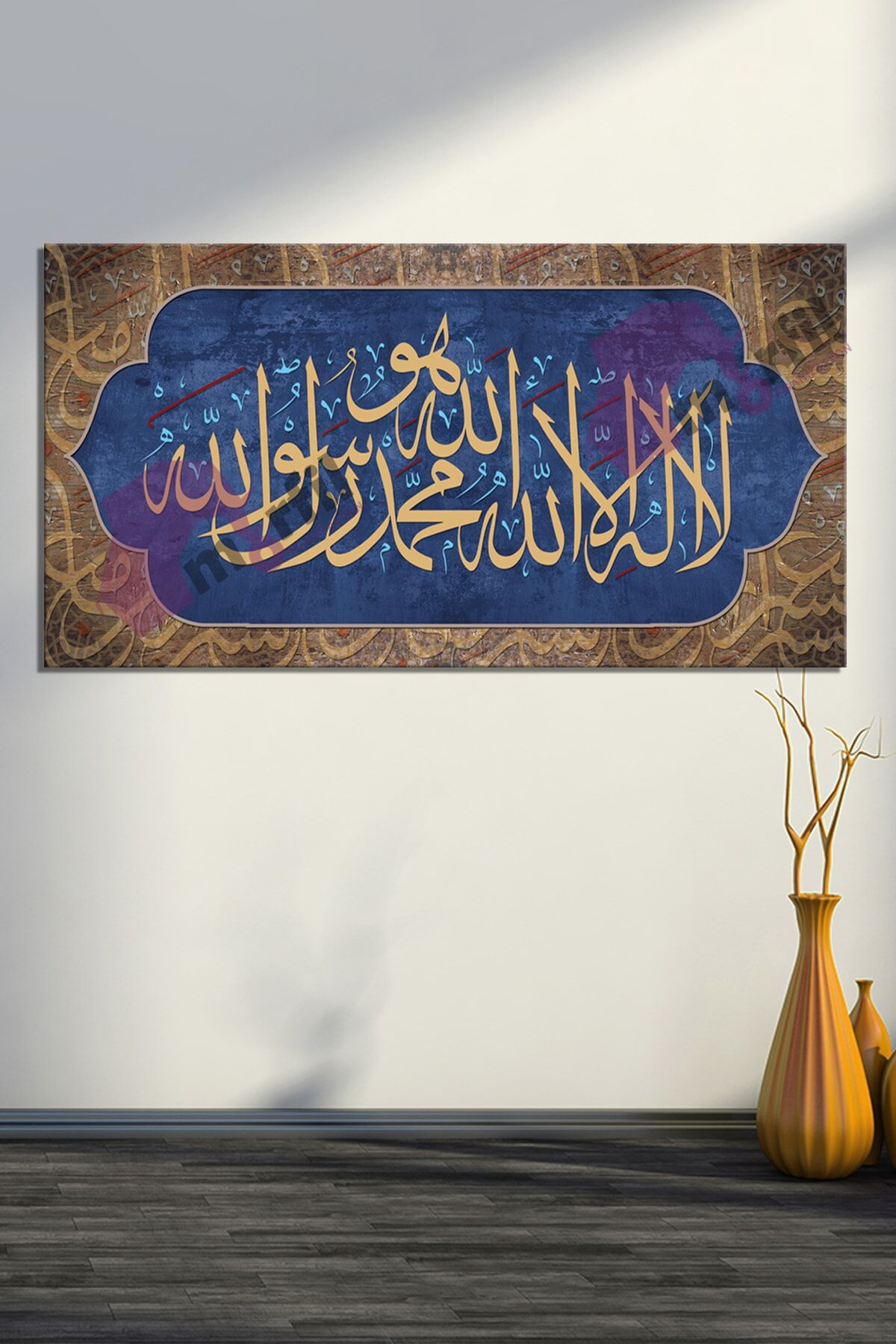 Kelimei Tevhid La Ilahe Illallah Muhammeden Resulullah Dini Hat Kanvas Tablo ( 7 Farklı Ölçü )