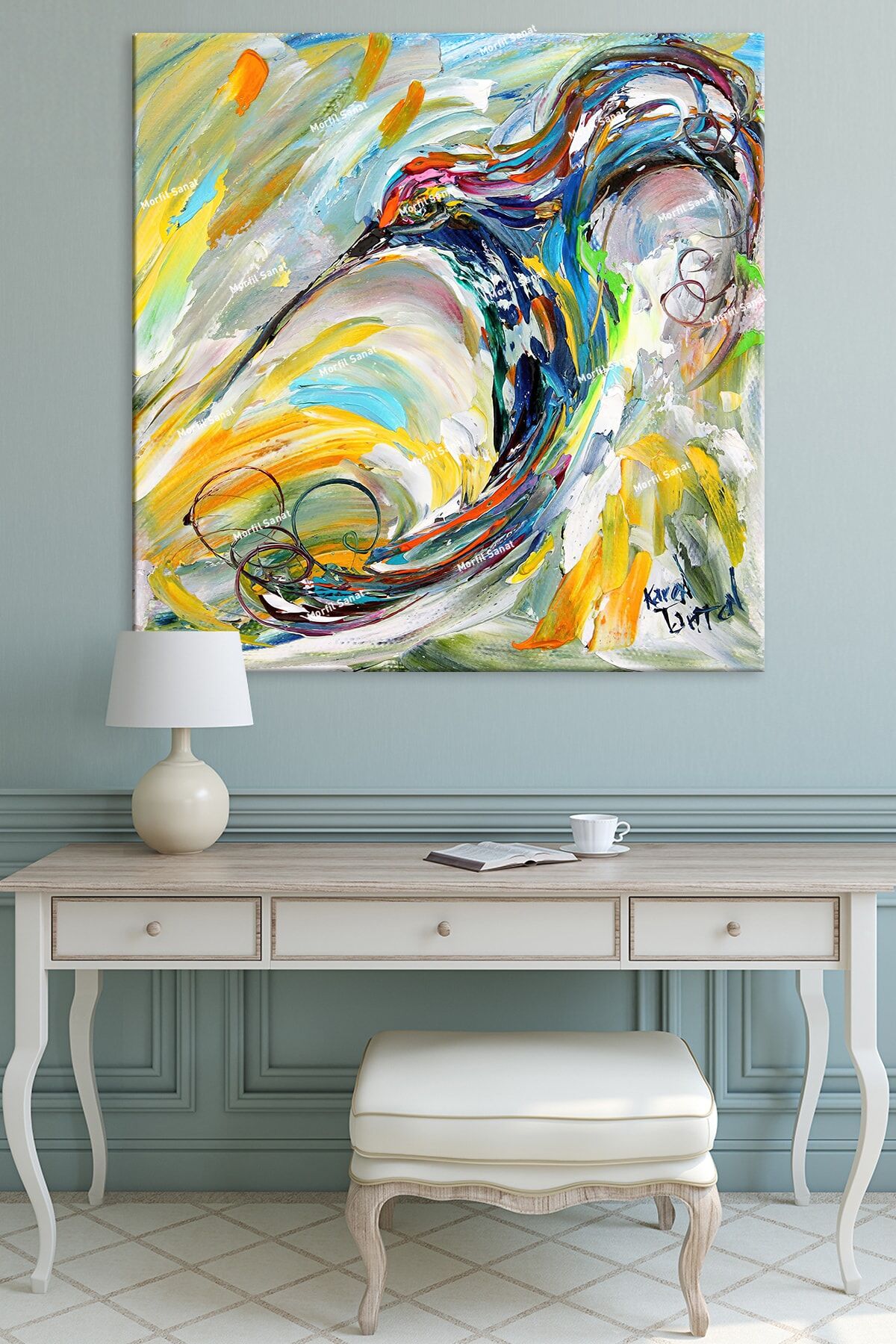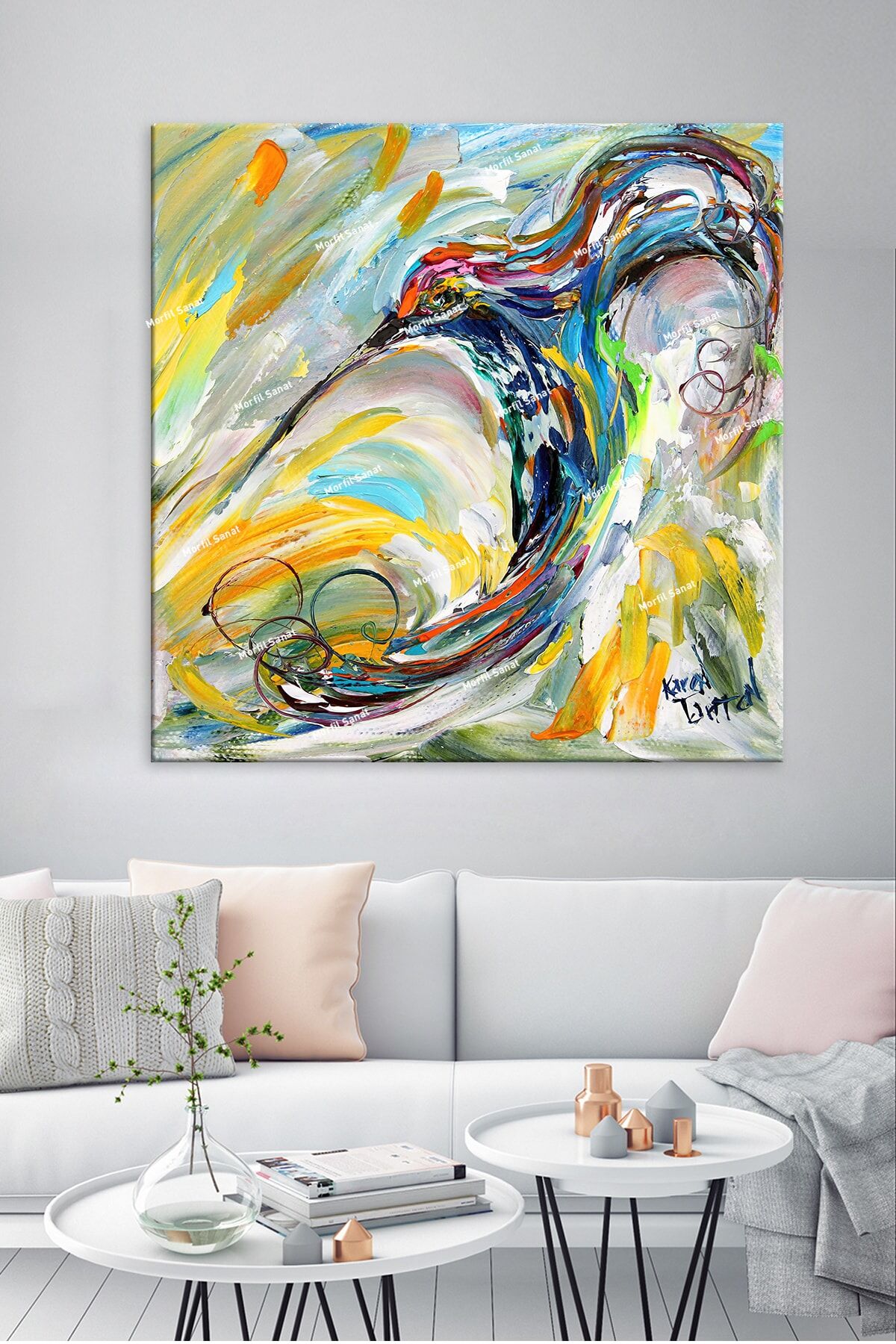 Yüksek kaliteli kanvas materyal kullanılarak üretilmiş, uzun ömürlü ve dayanıklı bir yapıya sahiptir; Tek parça halinde sunulan bu tablo, kolay montaj imkanı sağlar ve duvarınızda şık bir görünüm oluşturur; Soyut sanatın özgün ve çağdaş çizgilerini yansıtan tema ve stil, mekanınıza modern bir dokunuş katar;