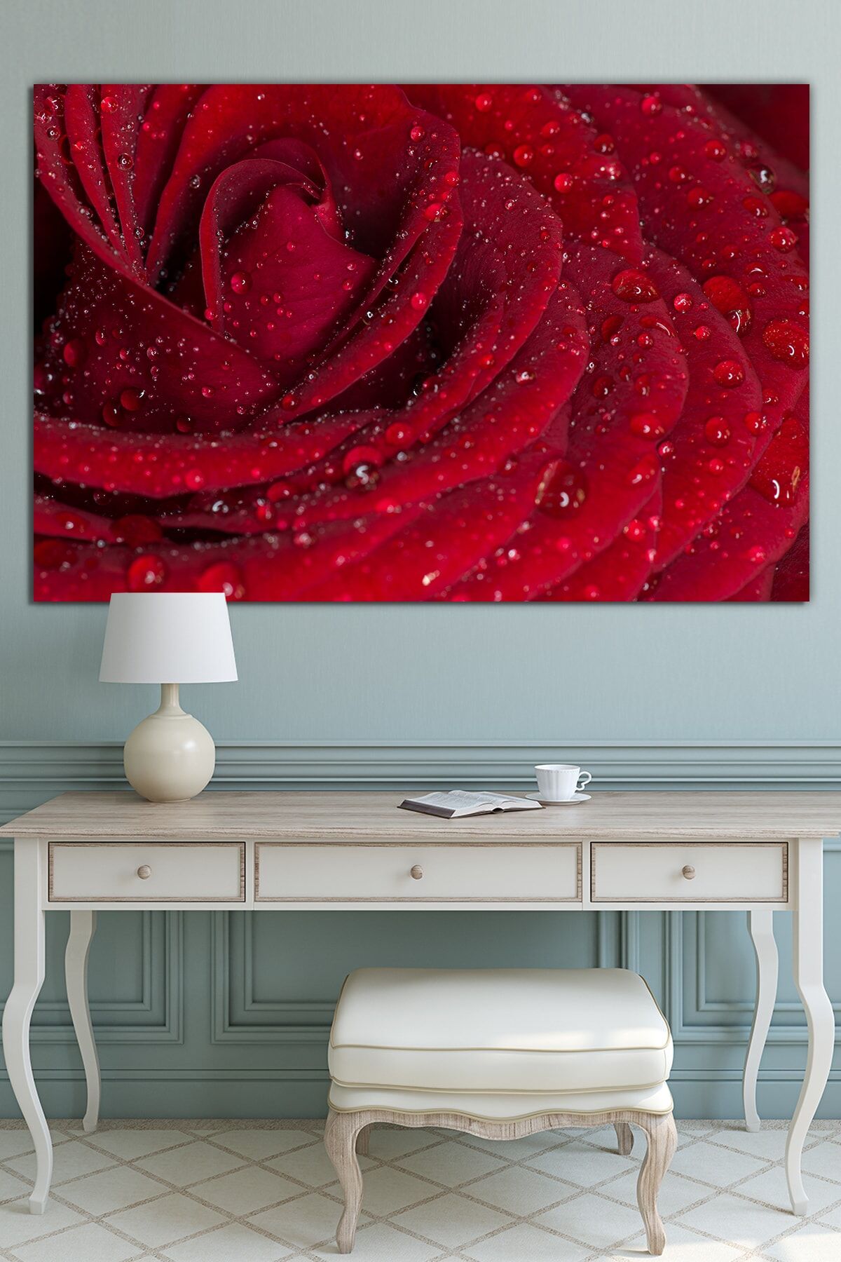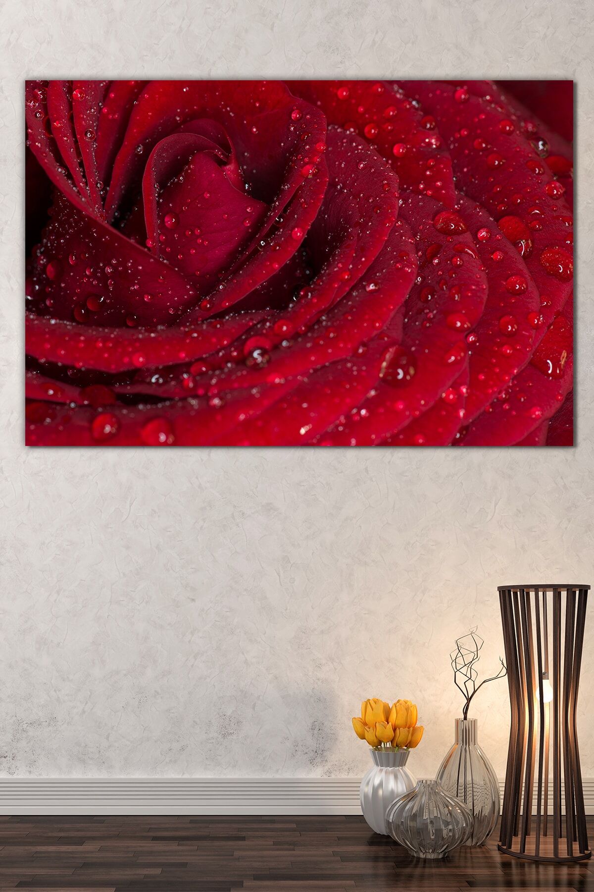 Kırmızı Gül Su Damlacığı Çiçek Dekoratif Kanvas Tablo